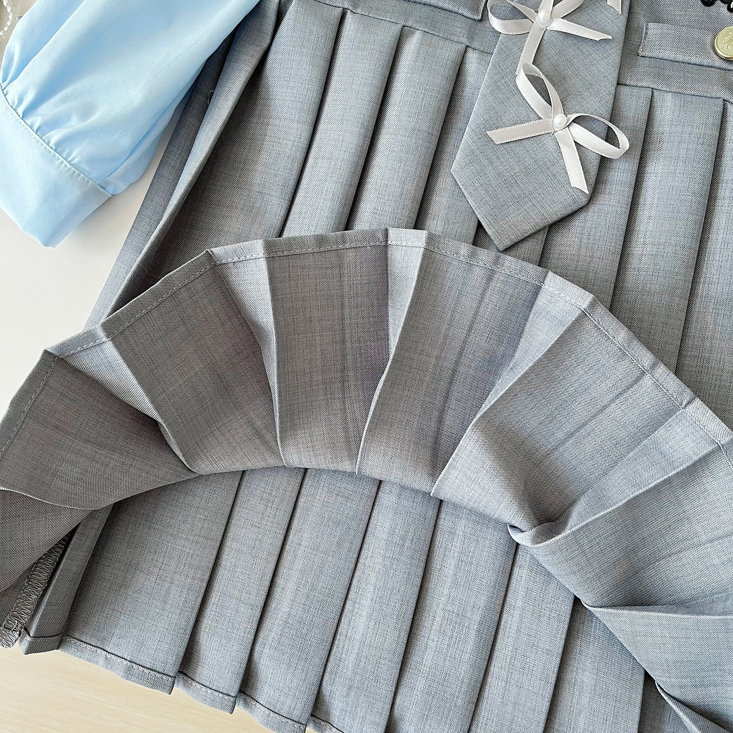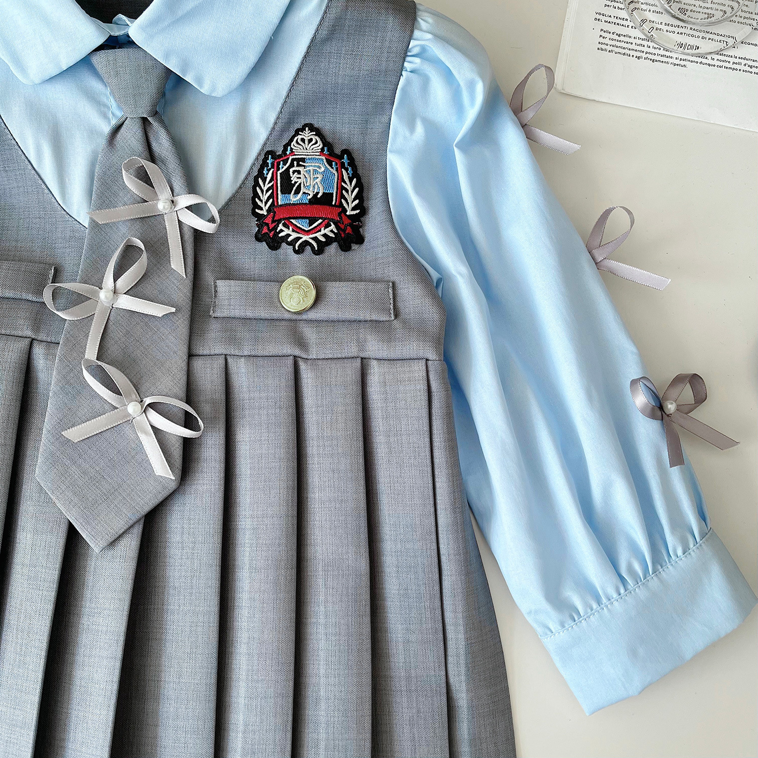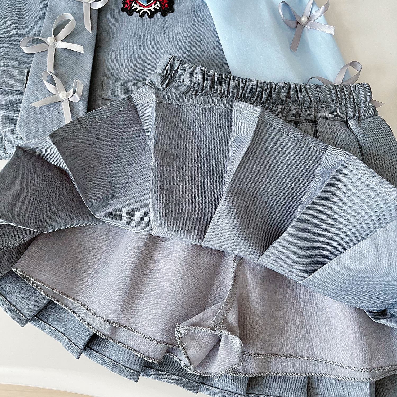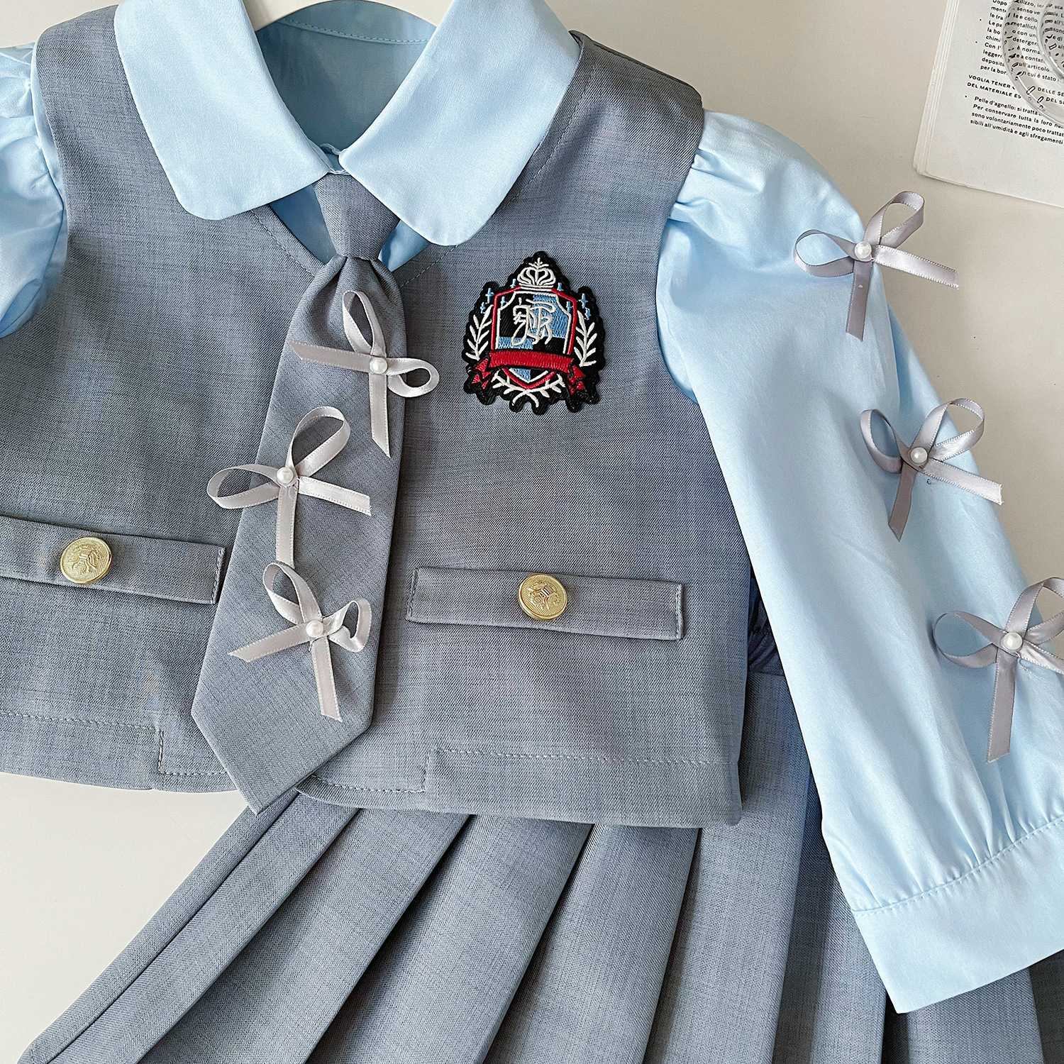 여아용 컬리지 스타일 셔츠 세트 2025 봄 가을 신상 아동 가을 상의 조끼 플리츠 스커트 3종 세트