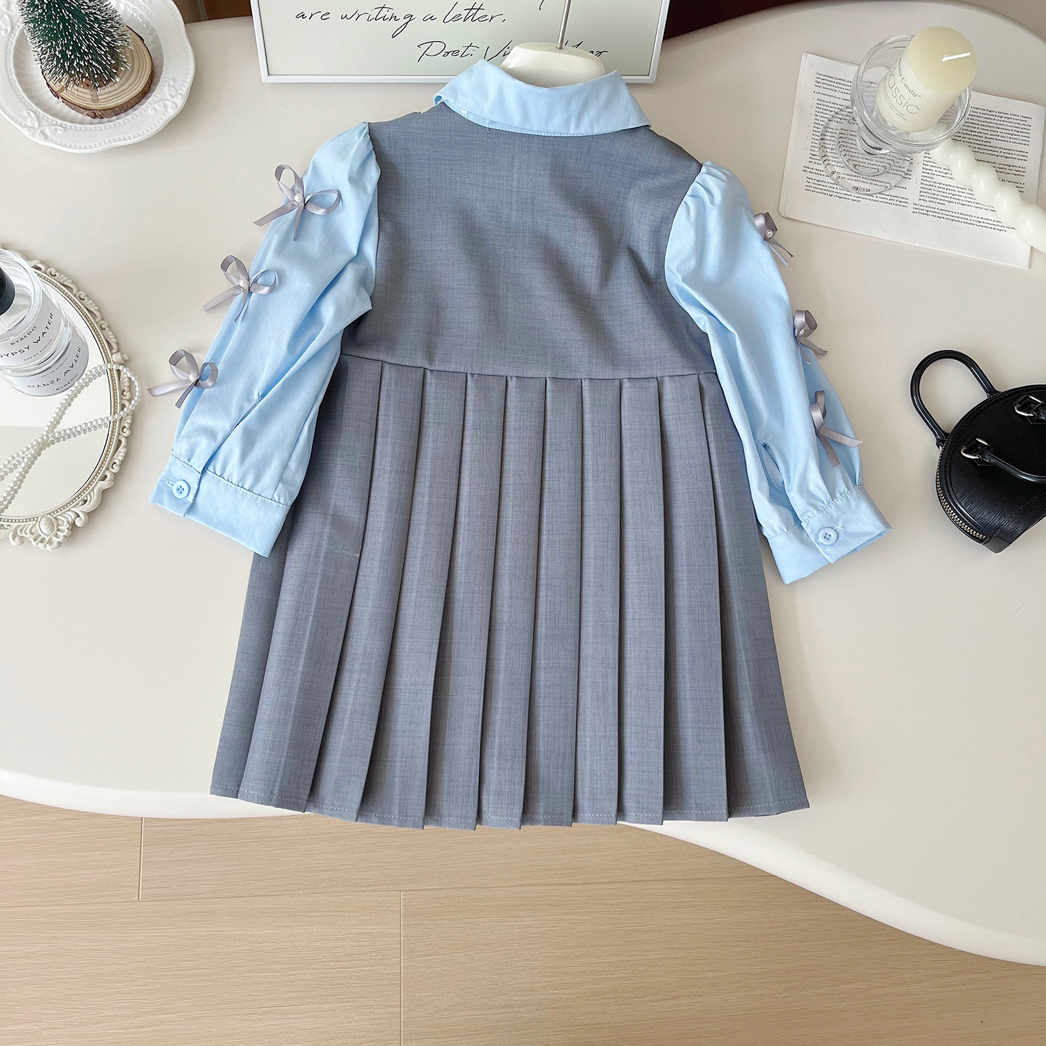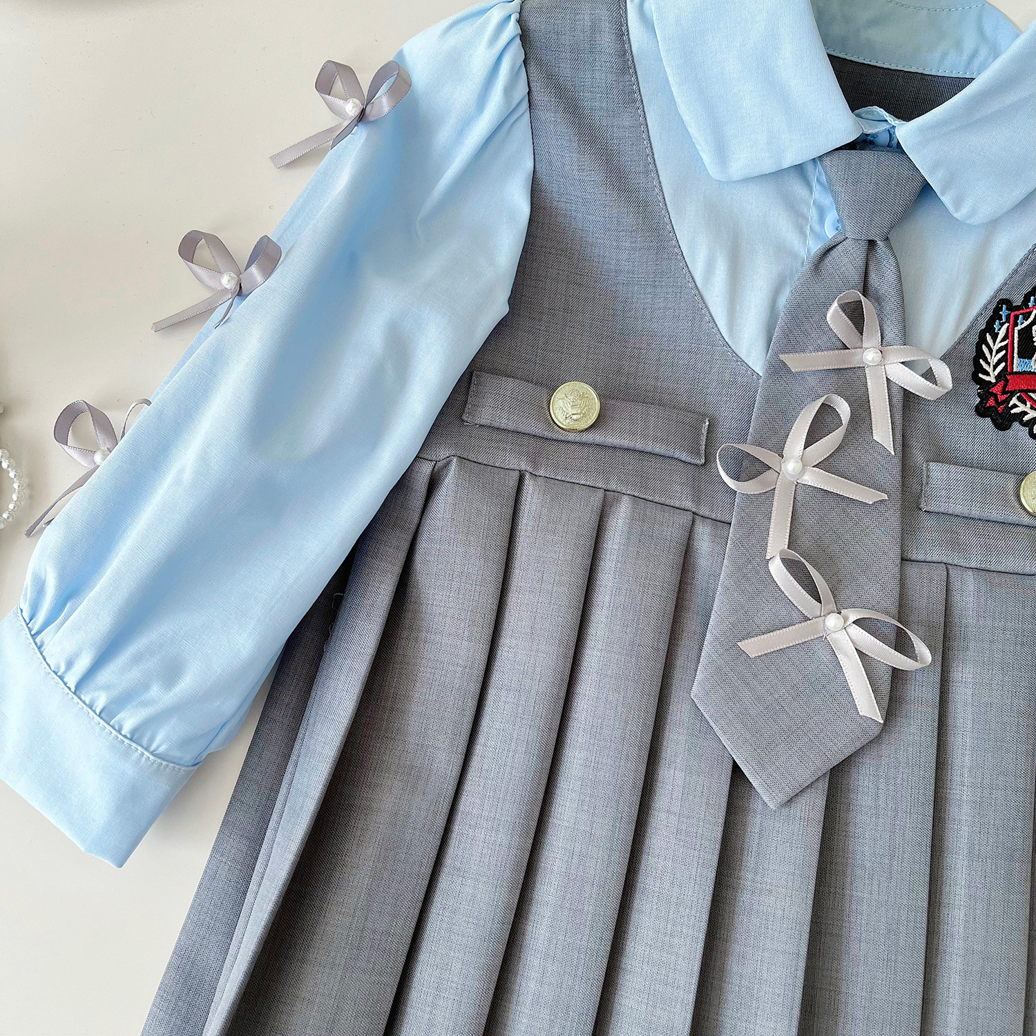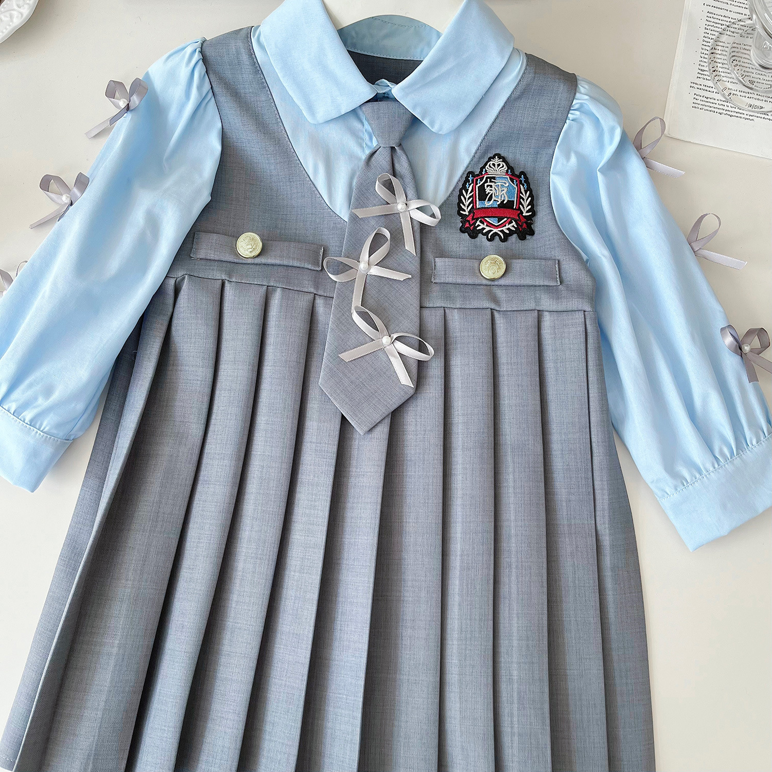여아용 컬리지 스타일 셔츠 세트 2025 봄 가을 신상 아동 가을 상의 조끼 플리츠 스커트 3종 세트스토어 가기