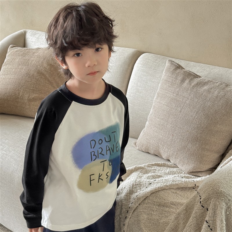 소년 기본 셔츠 가을, 겨울 어린이 긴팔 티셔츠 2024 새로운 아동 의류 소년 겨울 탑 기본 셔츠스토어 가기
