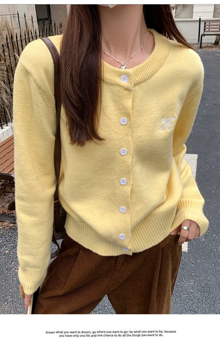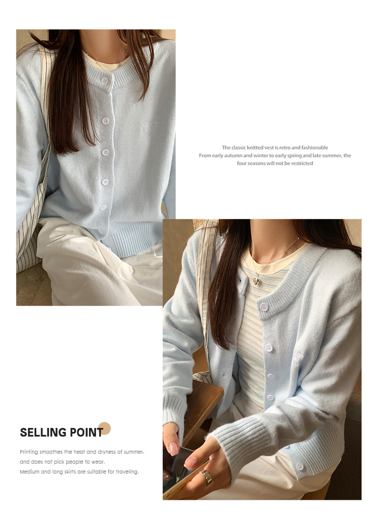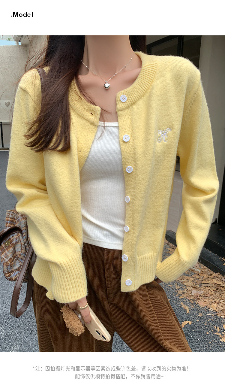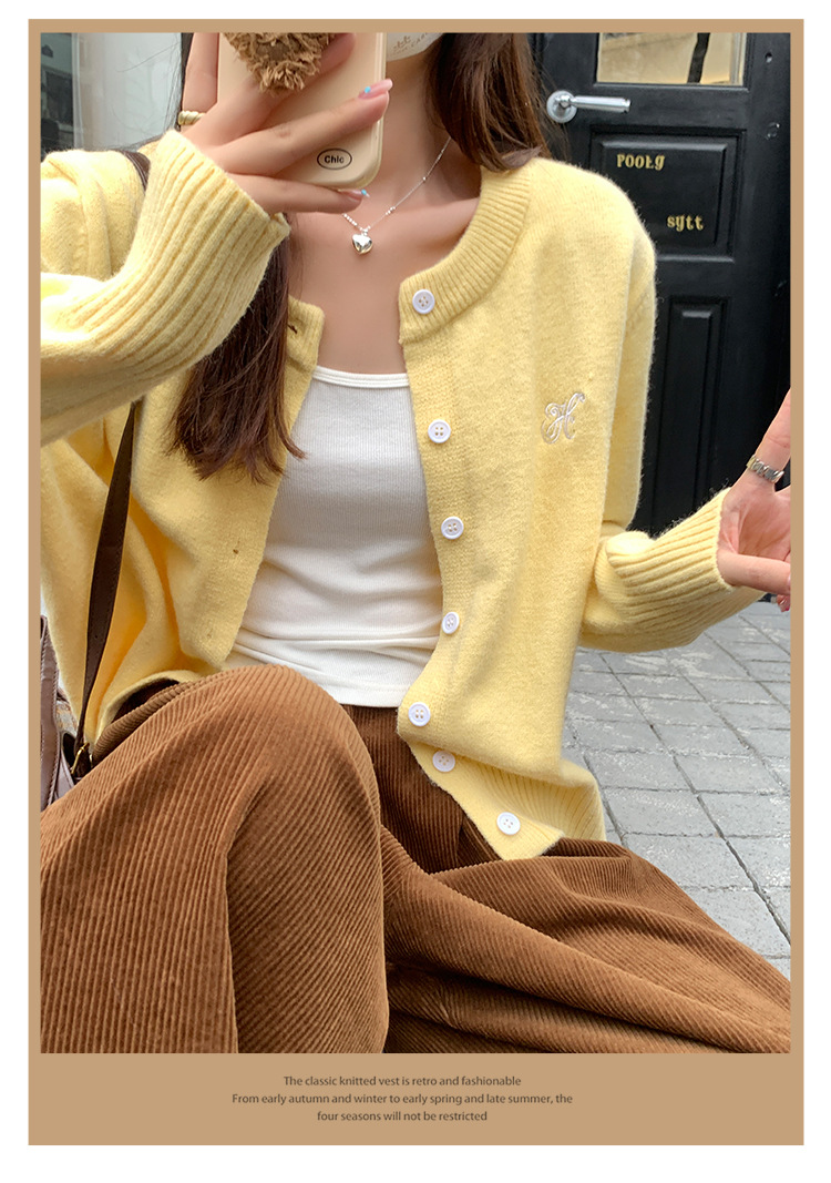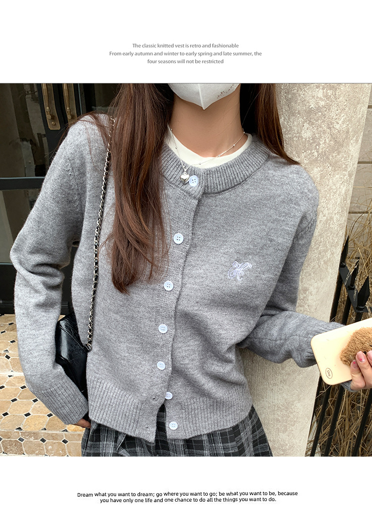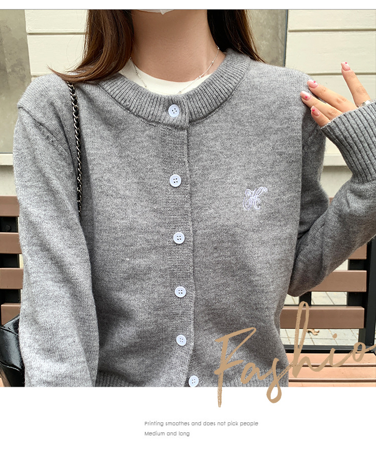 레드 라운드넥 긴팔 니트 가디건 여성용 2026 가을 자수 앙코라 레드 슬림핏 슬리밍 탑스토어 가기