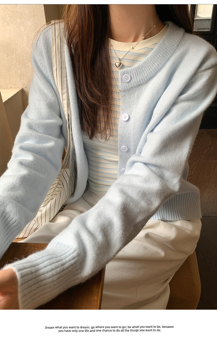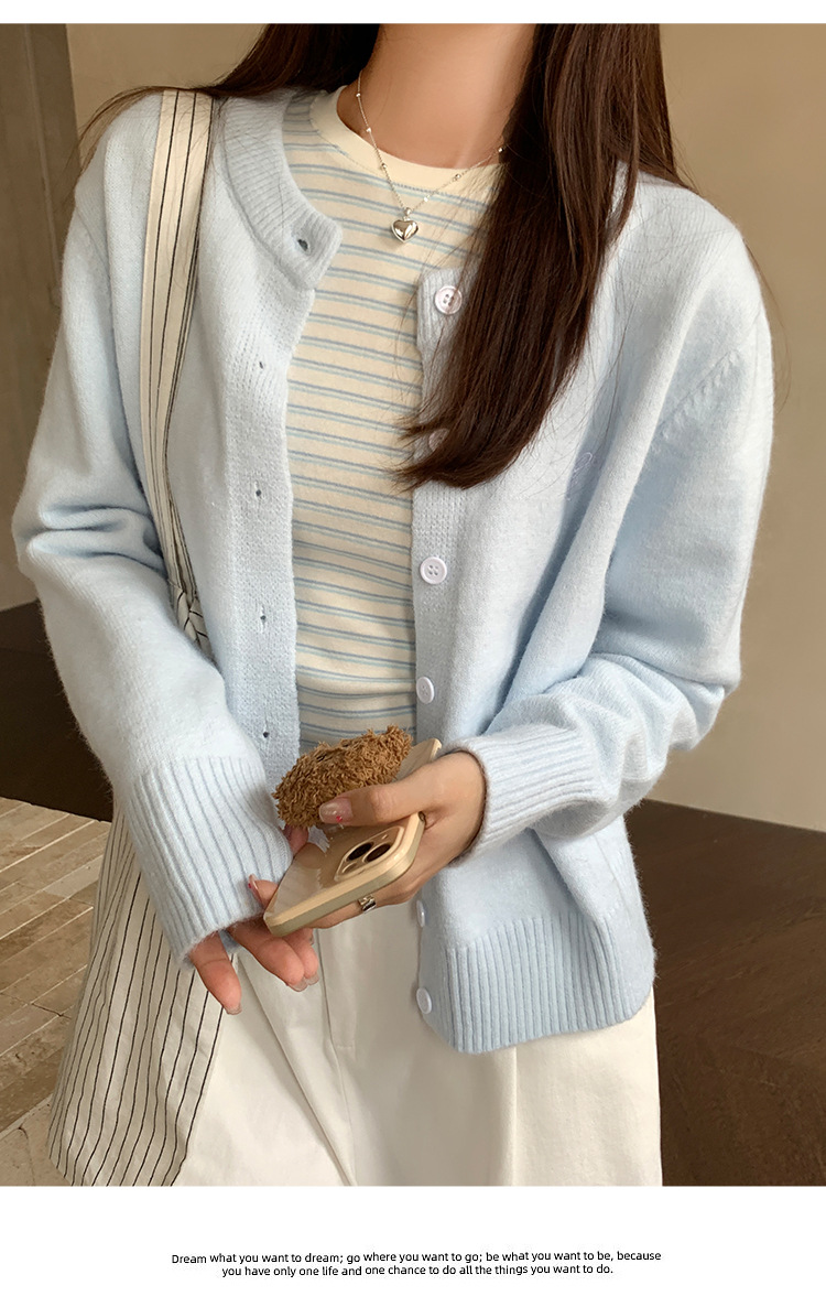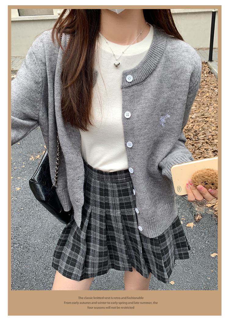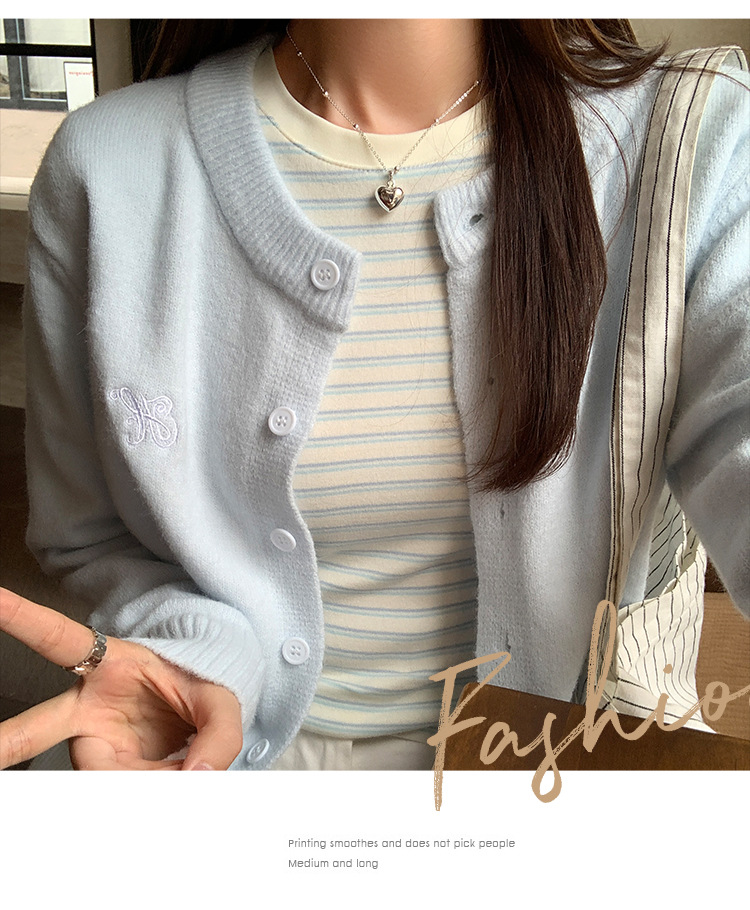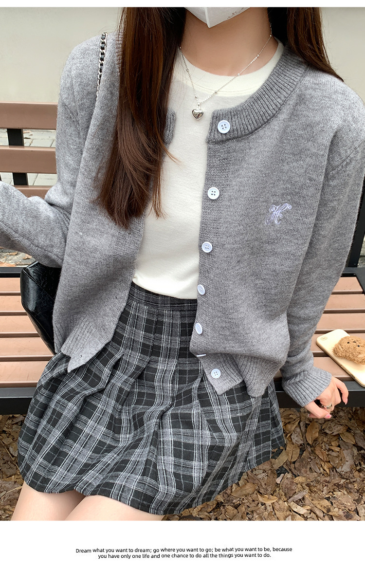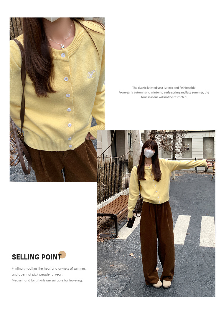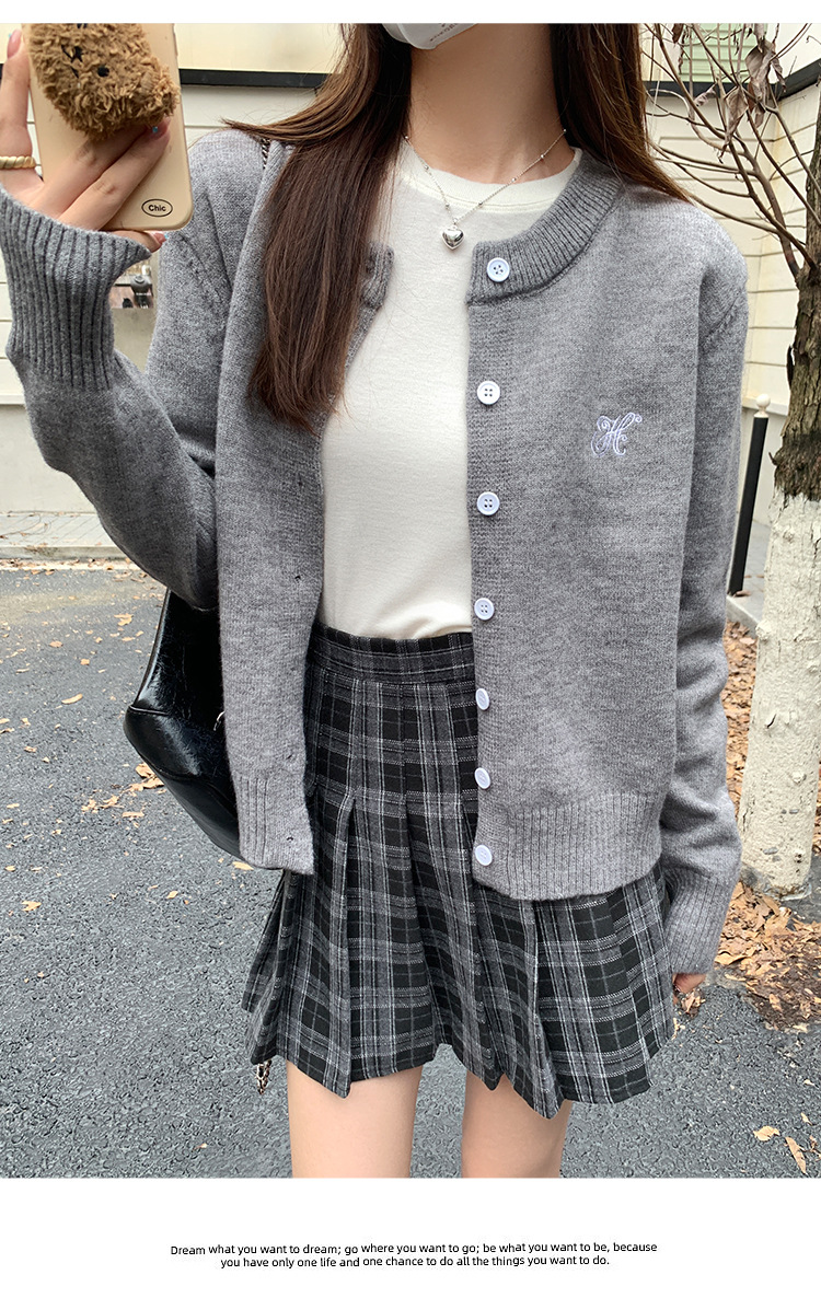 레드 라운드넥 긴팔 니트 가디건 여성용 2026 가을 자수 앙코라 레드 슬림핏 슬리밍 탑스토어 가기
