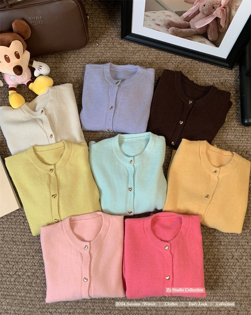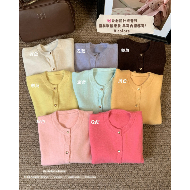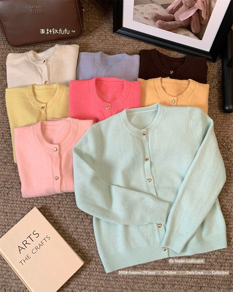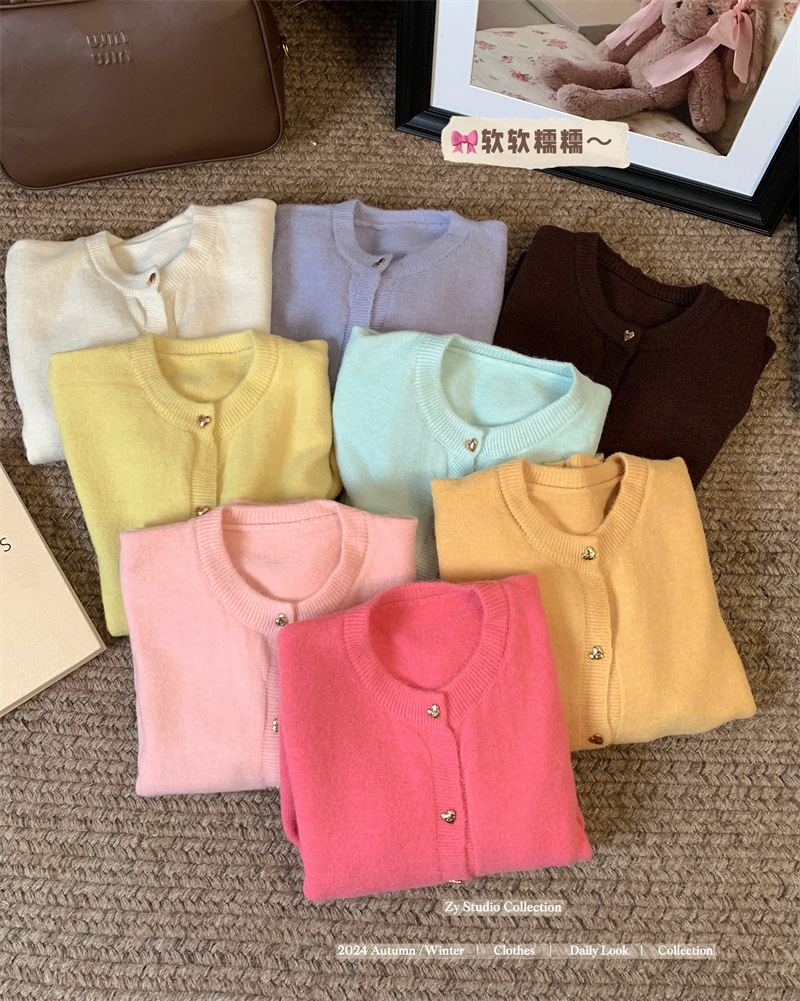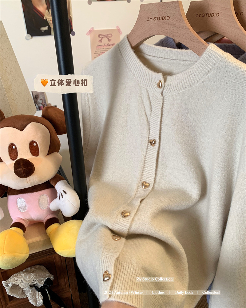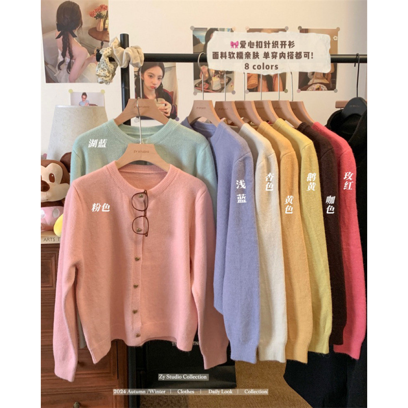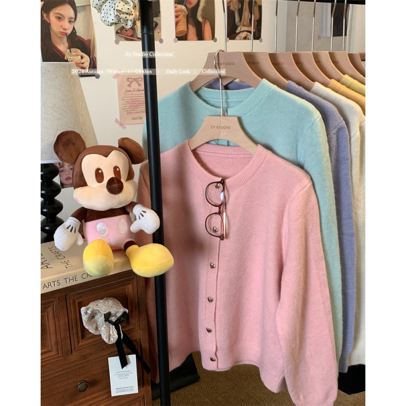 리얼 샷 ~ 한국 사랑 작은 골드 버튼 니트 카디건 가을과 겨울 아름다운 너구리 벨벳 긴팔 스웨터 코트 여성
