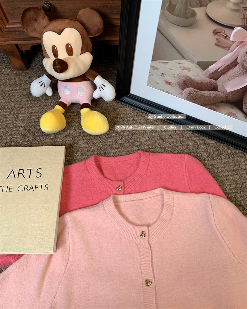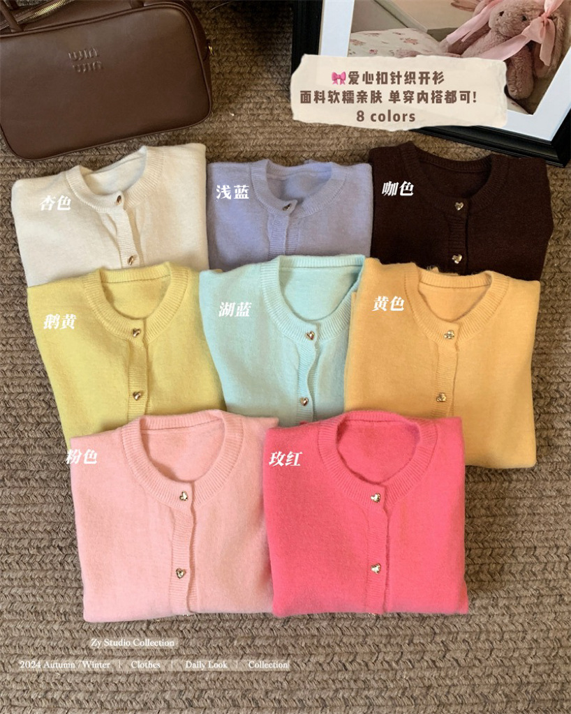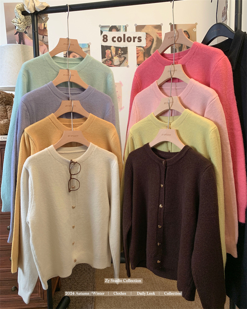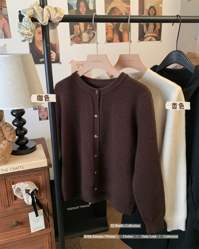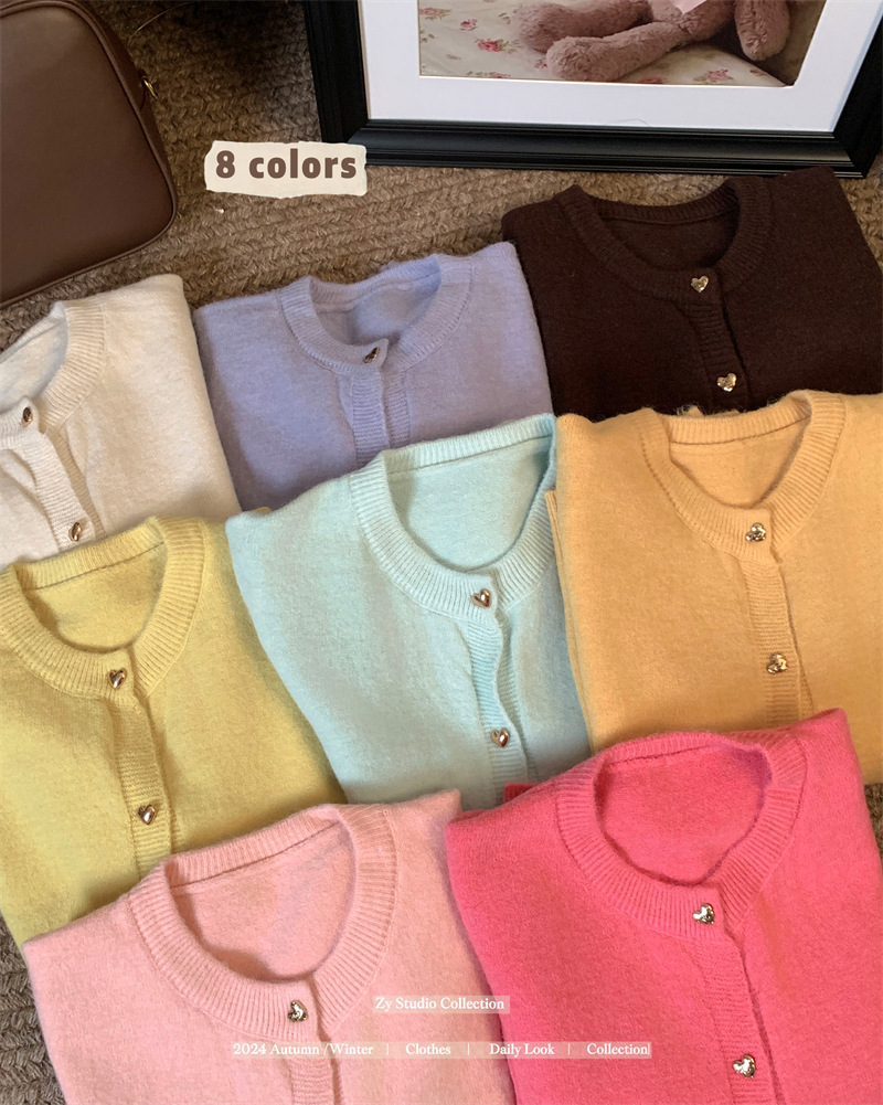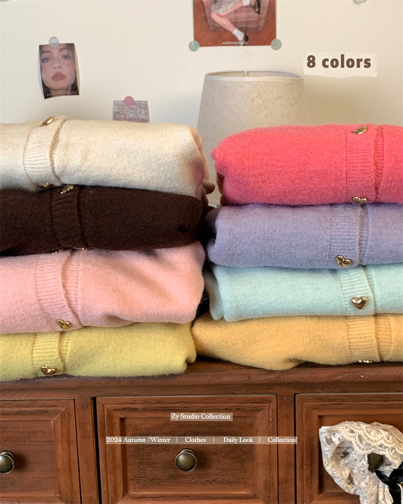 리얼 샷 ~ 한국 사랑 작은 골드 버튼 니트 카디건 가을과 겨울 아름다운 너구리 벨벳 긴팔 스웨터 코트 여성