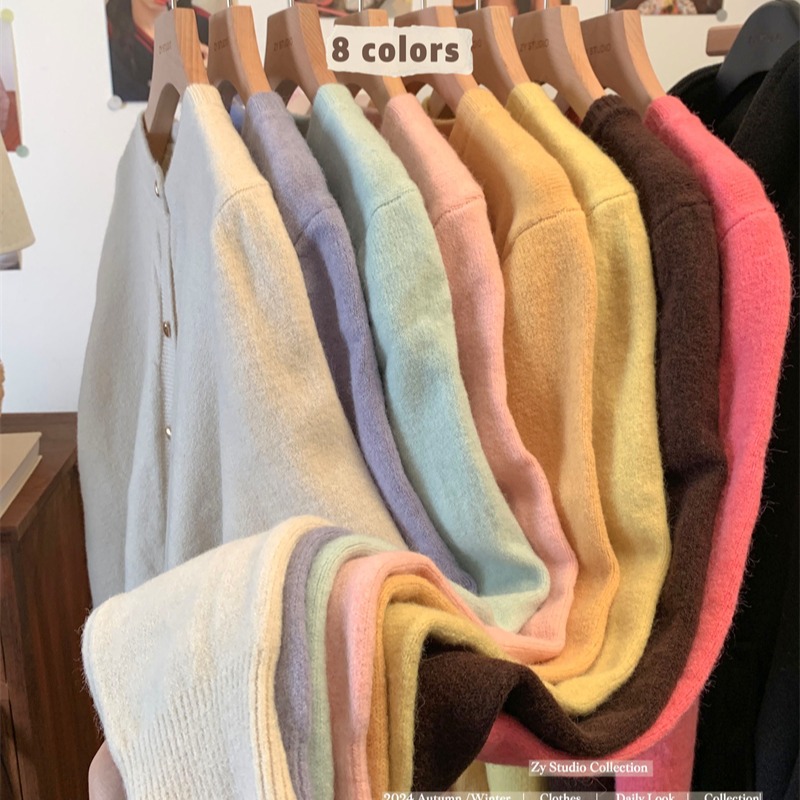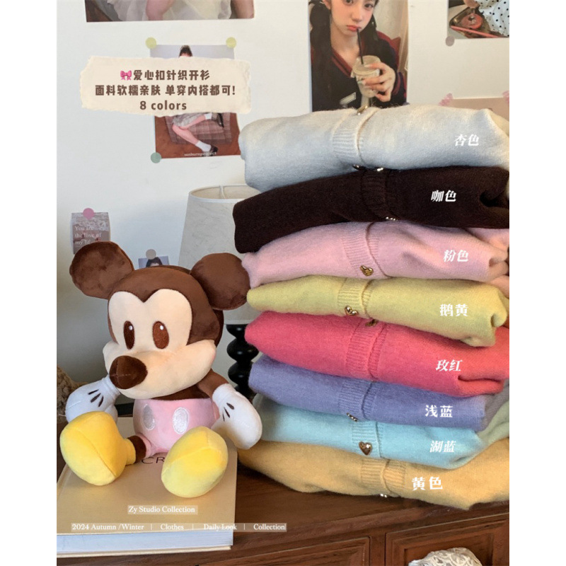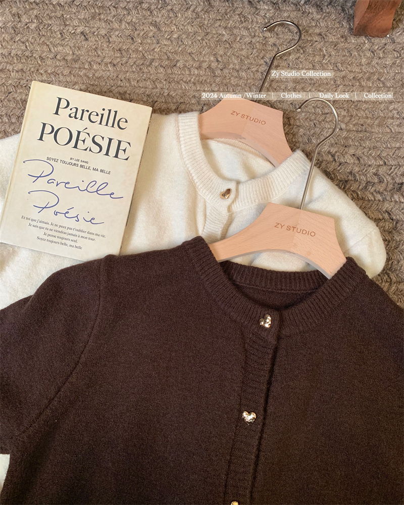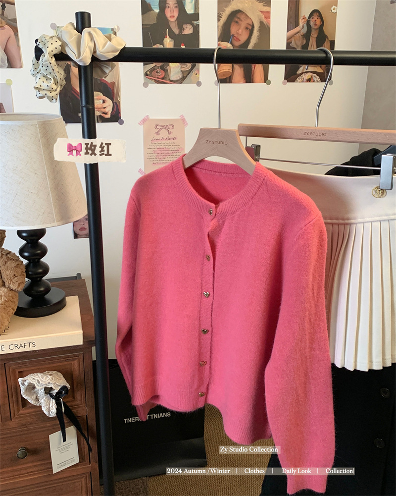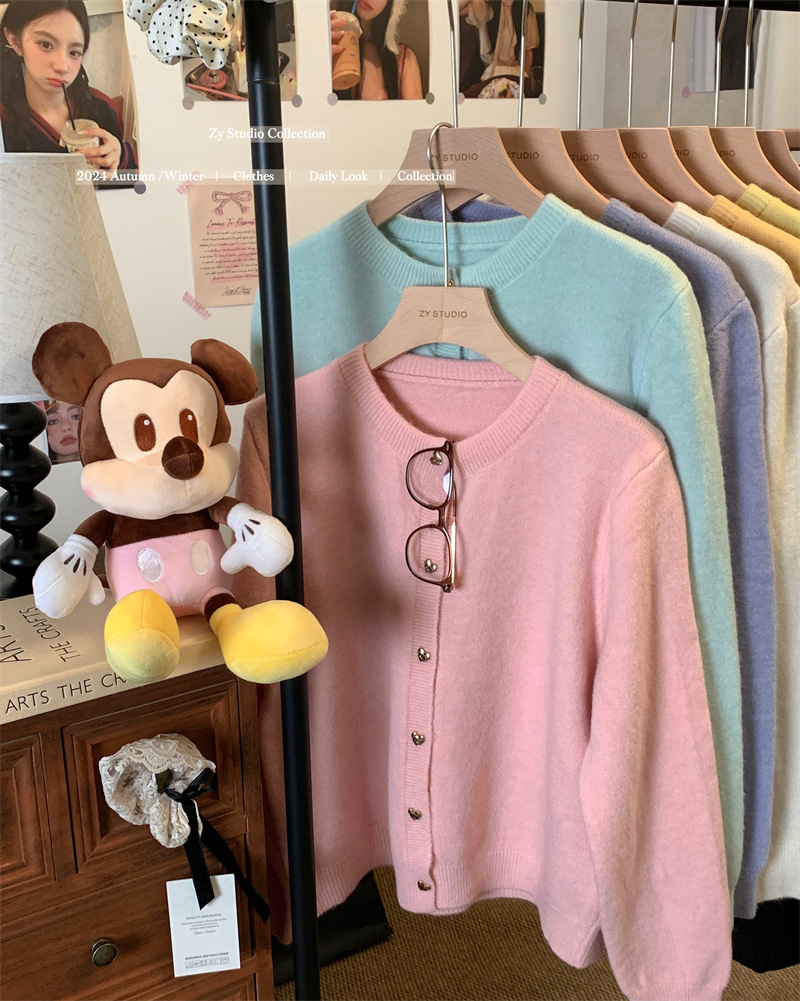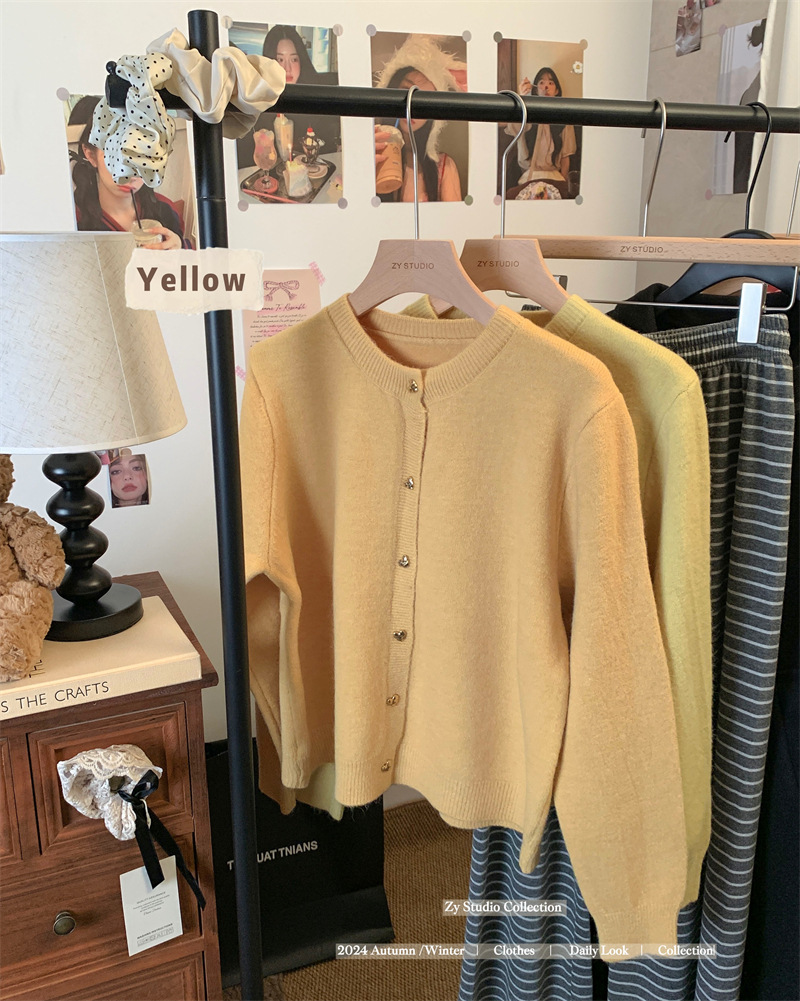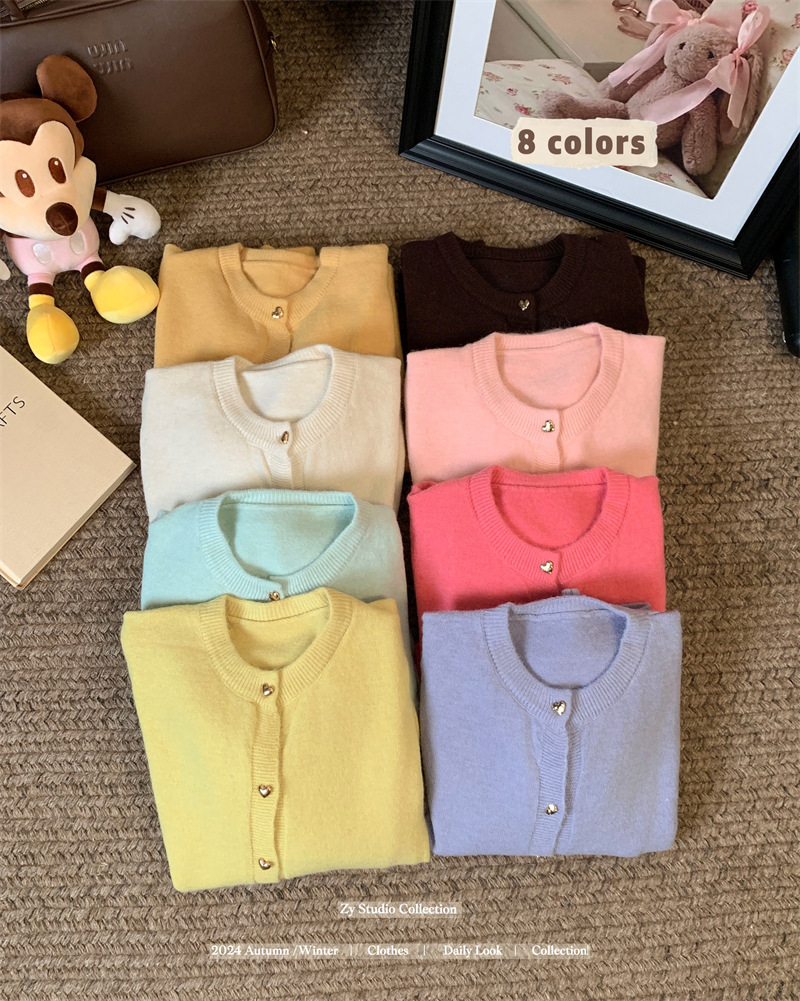 리얼 샷 ~ 한국 사랑 작은 골드 버튼 니트 카디건 가을과 겨울 아름다운 너구리 벨벳 긴팔 스웨터 코트 여성
