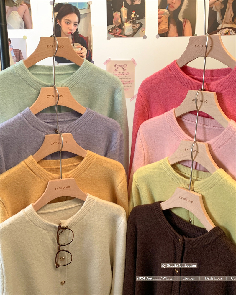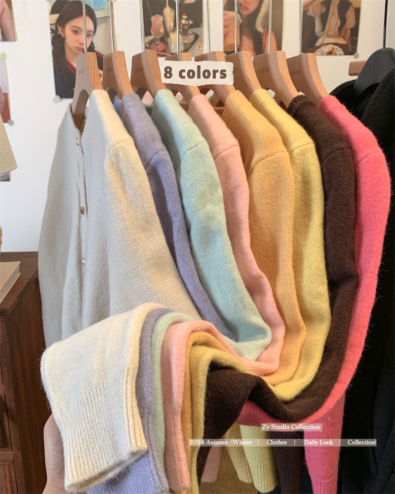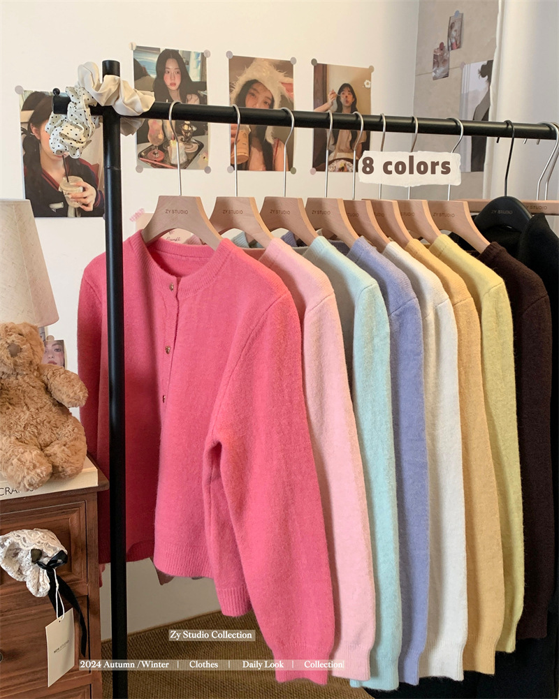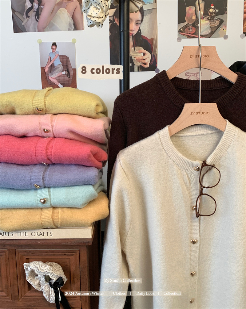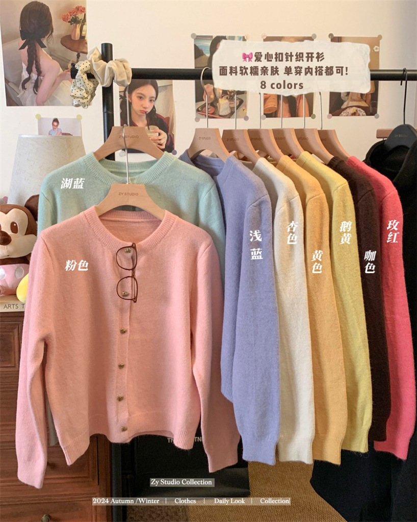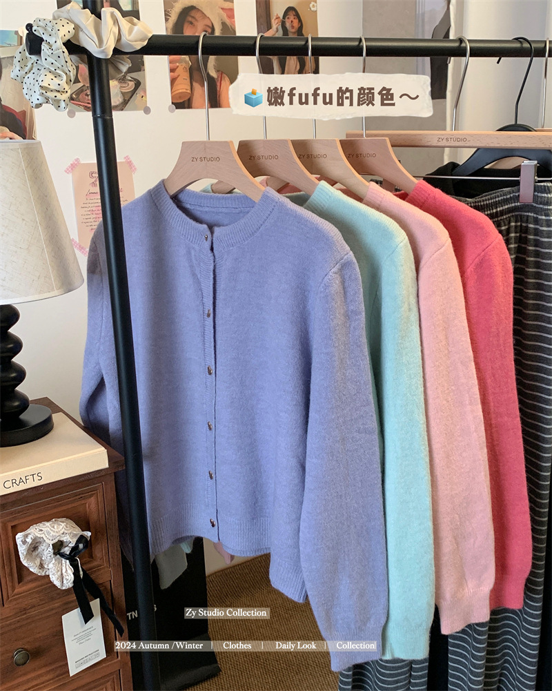 리얼 샷 ~ 한국 사랑 작은 골드 버튼 니트 카디건 가을과 겨울 아름다운 너구리 벨벳 긴팔 스웨터 코트 여성