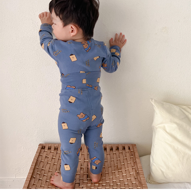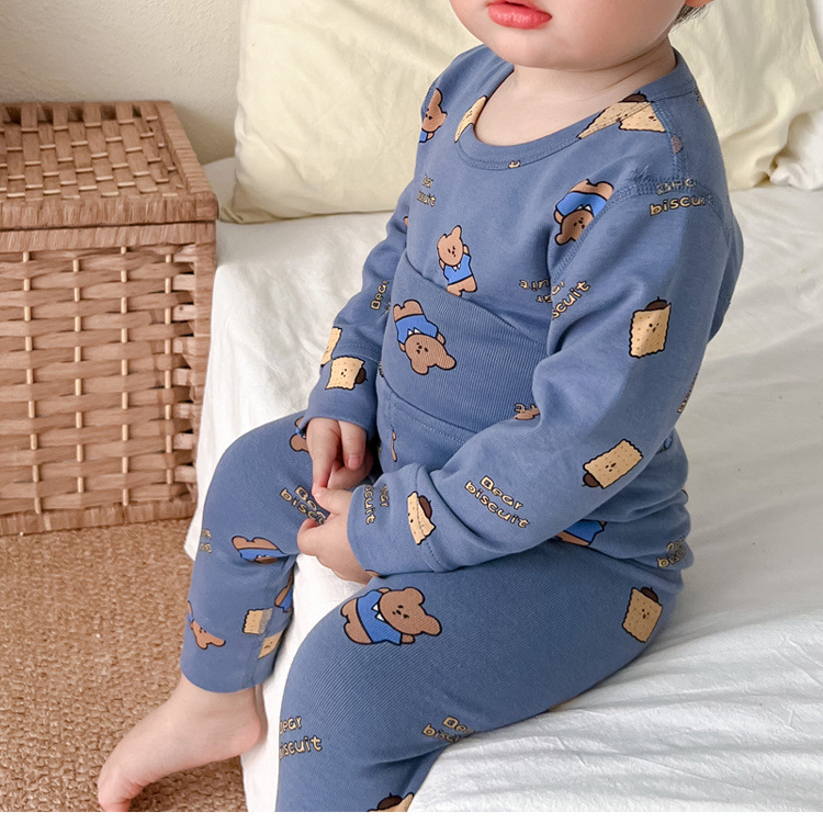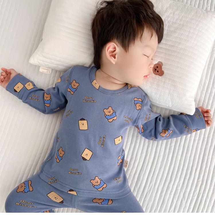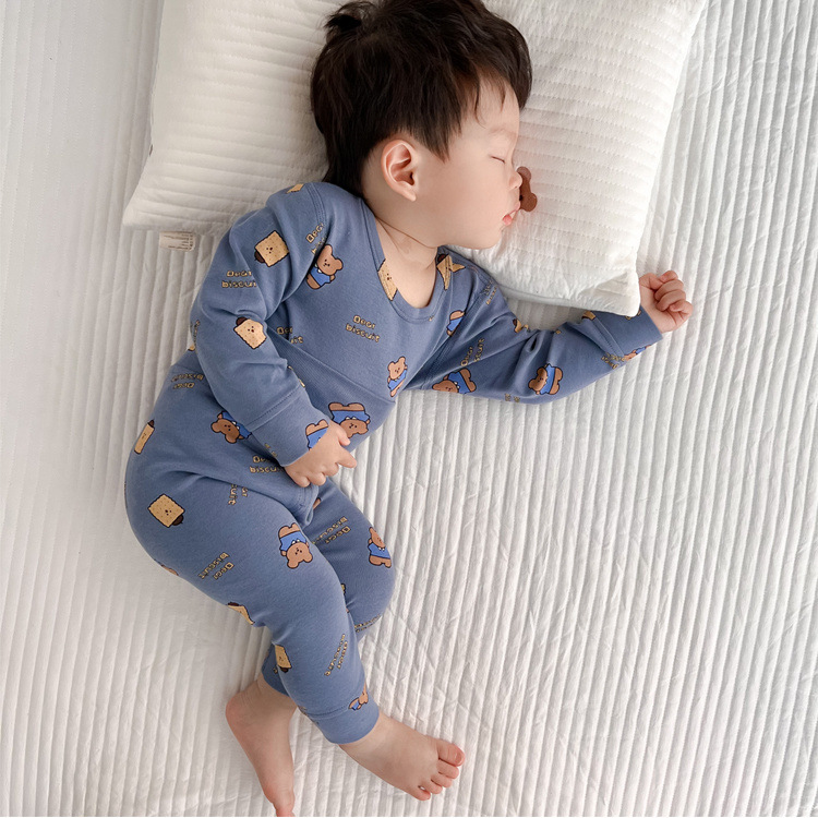 아기의 가을 옷과 바지 세트 순수한 면화 어린이 속옷 높은 허리 배꼽 보호 가을과 겨울 두꺼운 소년과 소녀 잠옷 따뜻한스토어 가기