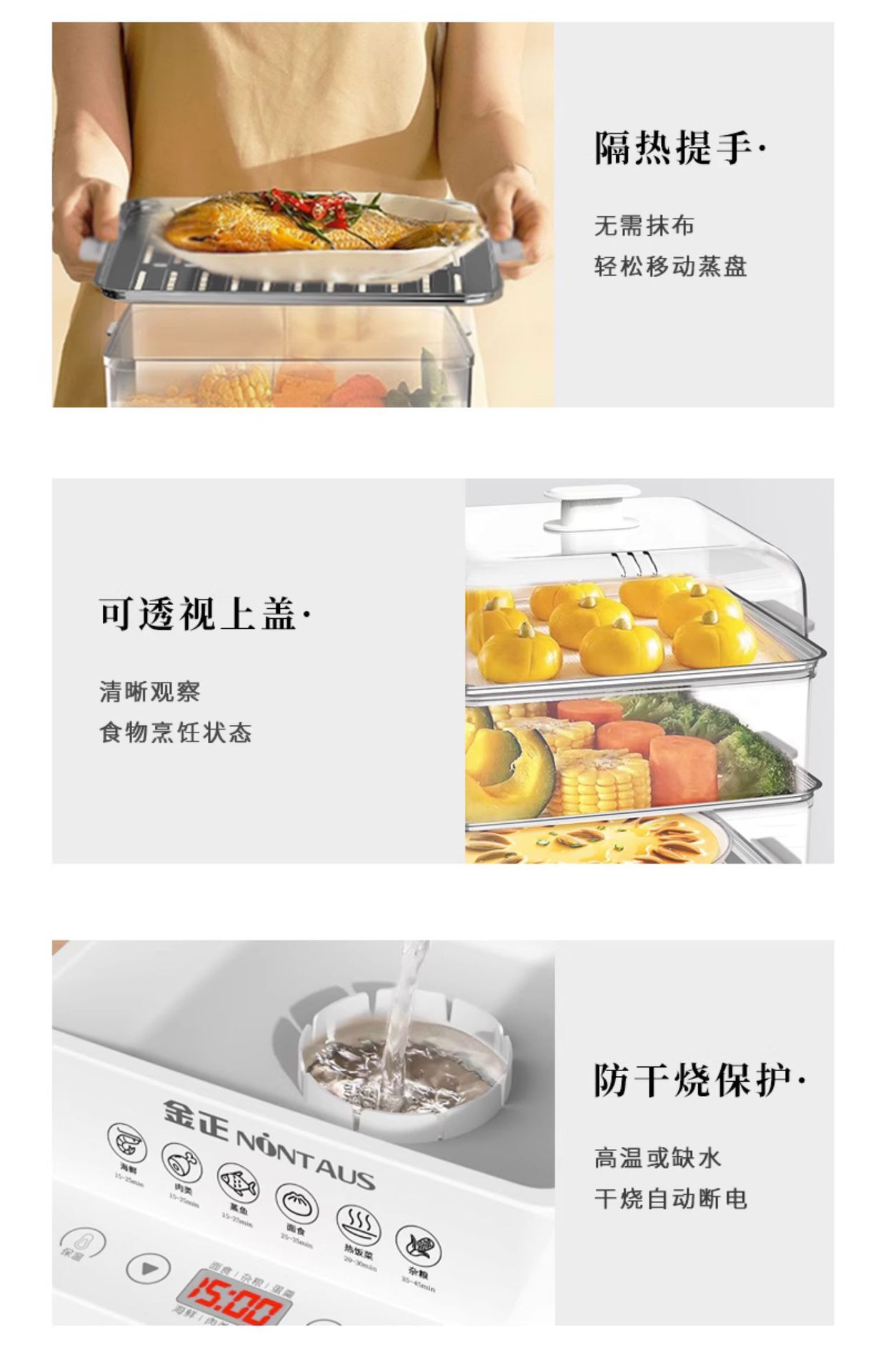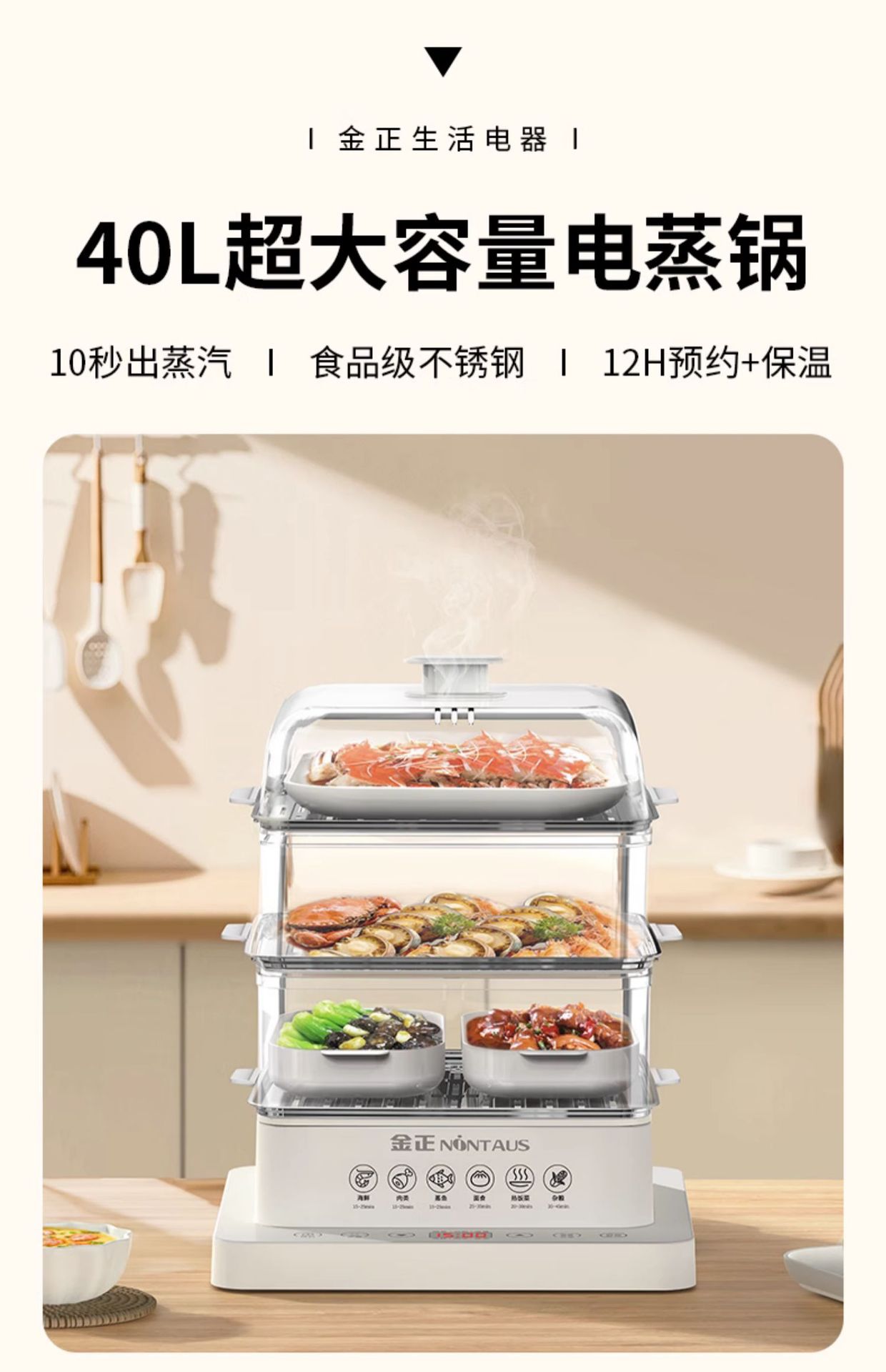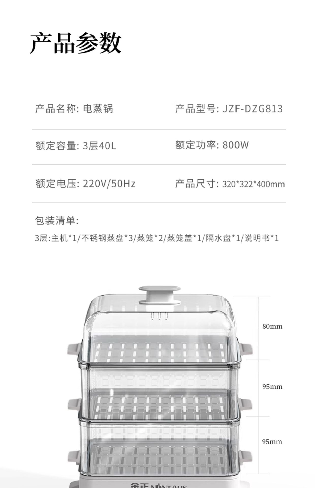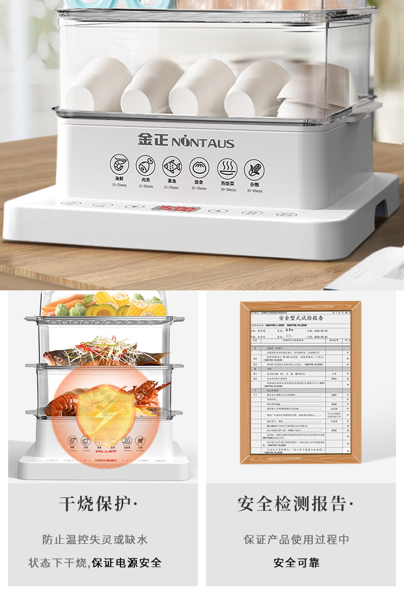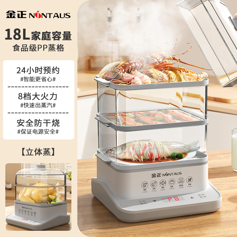 전기 증기선 다기능 가정용 3 층 40L 스테인레스 스틸 대용량 증기 상자 요리 아침 식사 기계 통합