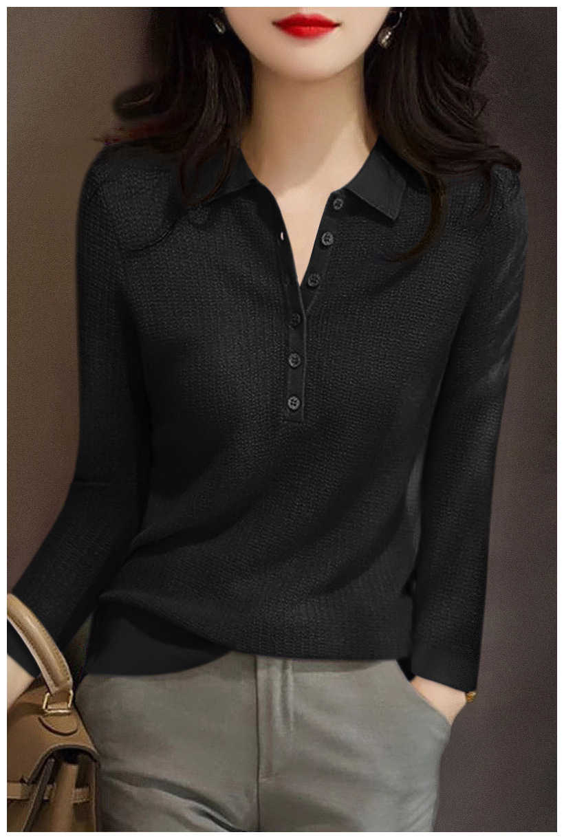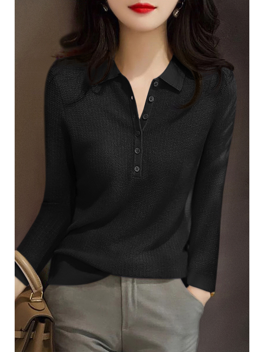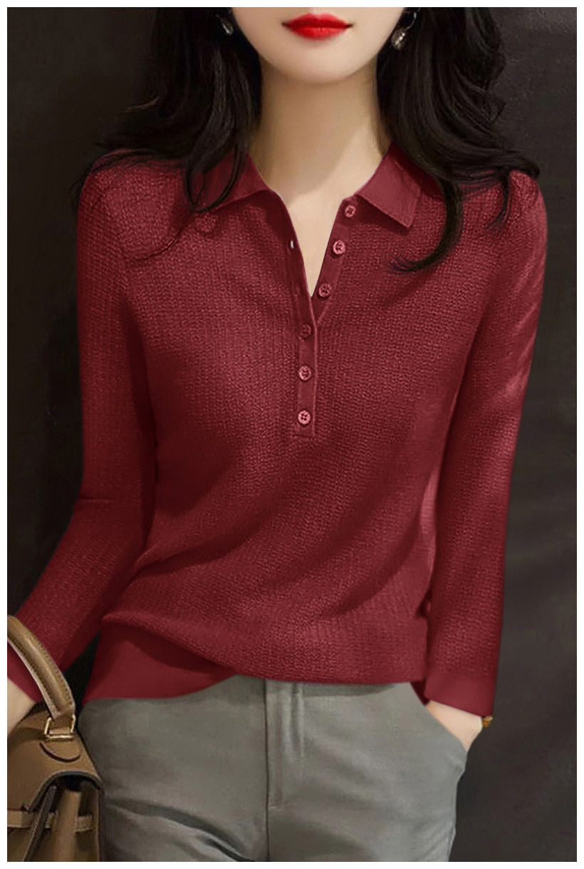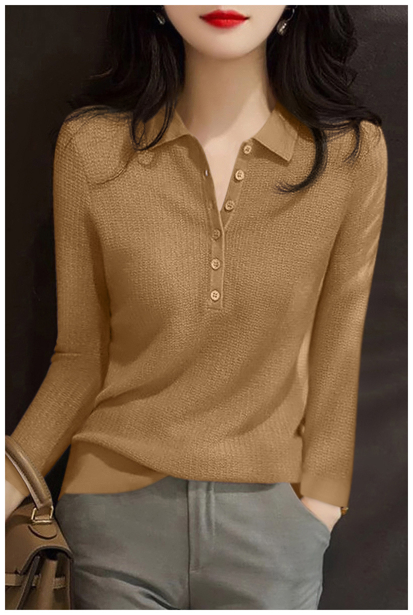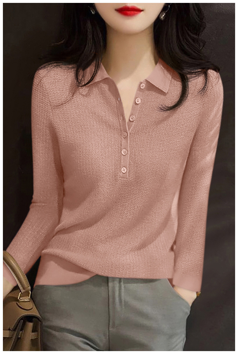 2024 새로운 풀오버 긴 소매 패션 슬림 바닥 최고 여성 가을 폴로 칼라 다재다능한 스웨터 스웨터