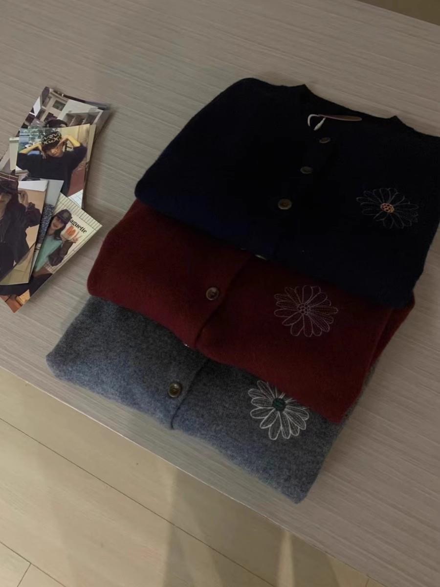 모든 양모 카디건 여성용 둥근 목 자수 니트웨어 연령 감소 봄 가을 및 겨울 외부 재킷 캐주얼 스웨터 재킷 폭발스토어 가기
