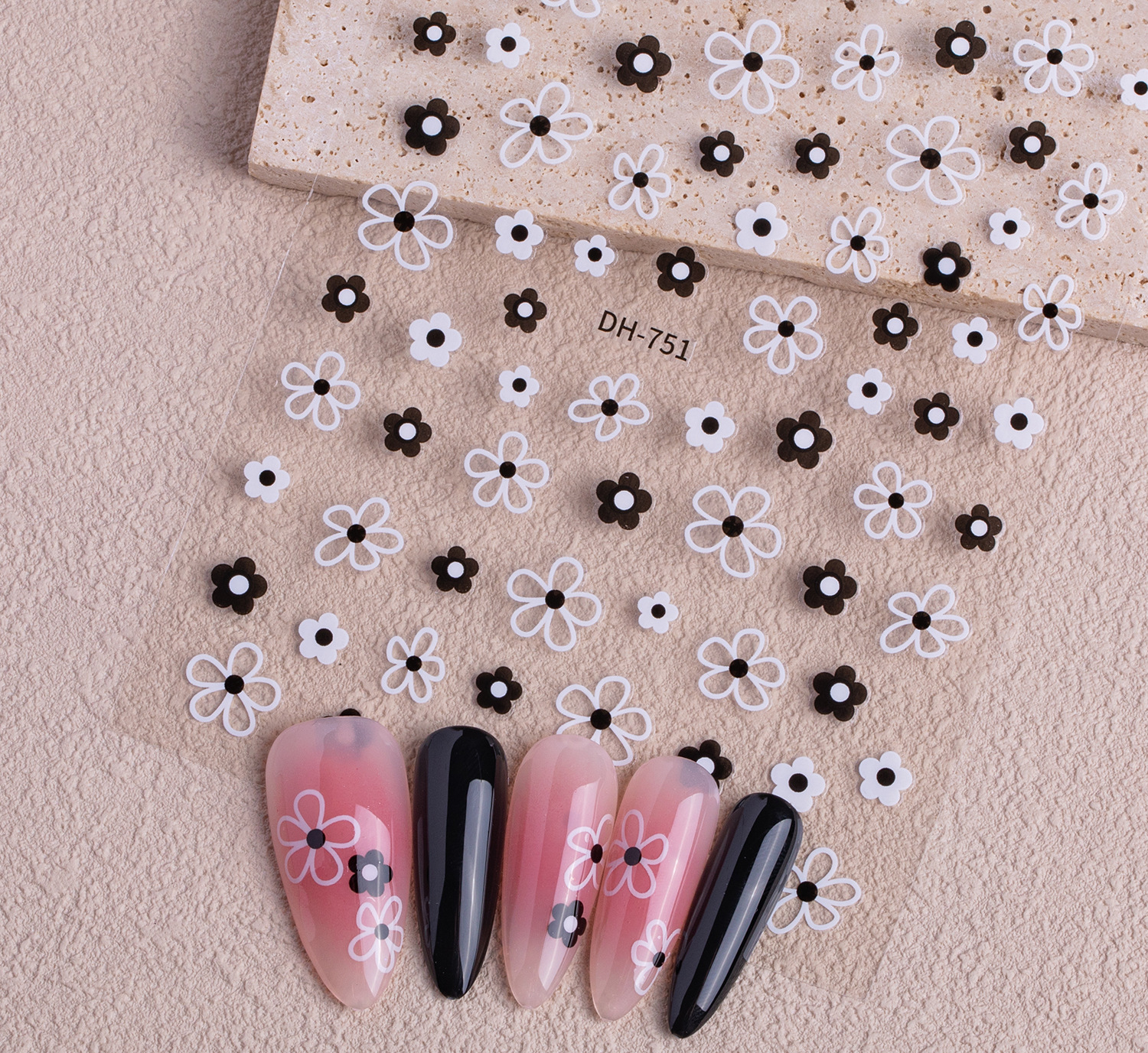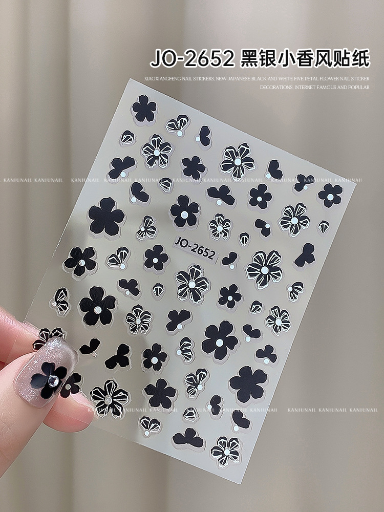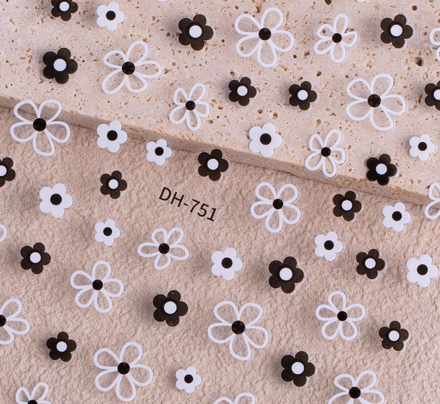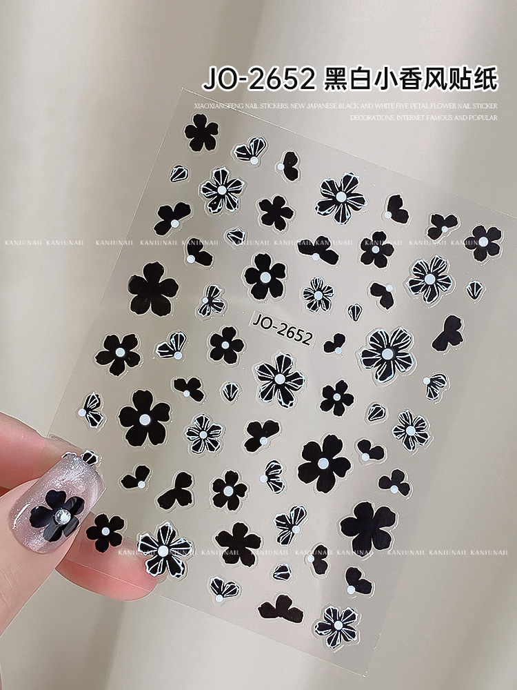 흑백 꽃 네일 아트 스티커 새로운 스타일 향수 높은 수준의 감각 작은 데이지 동백 꽃 네일 데칼 도매스토어 가기