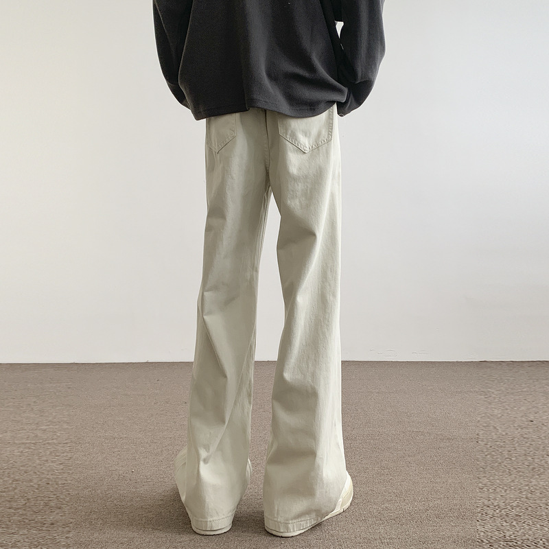 아이보리 데님 바지 남자 2024 봄과 가을 남자 바지 넓은 다리 바지 남자 느슨한 스트레이트 바지