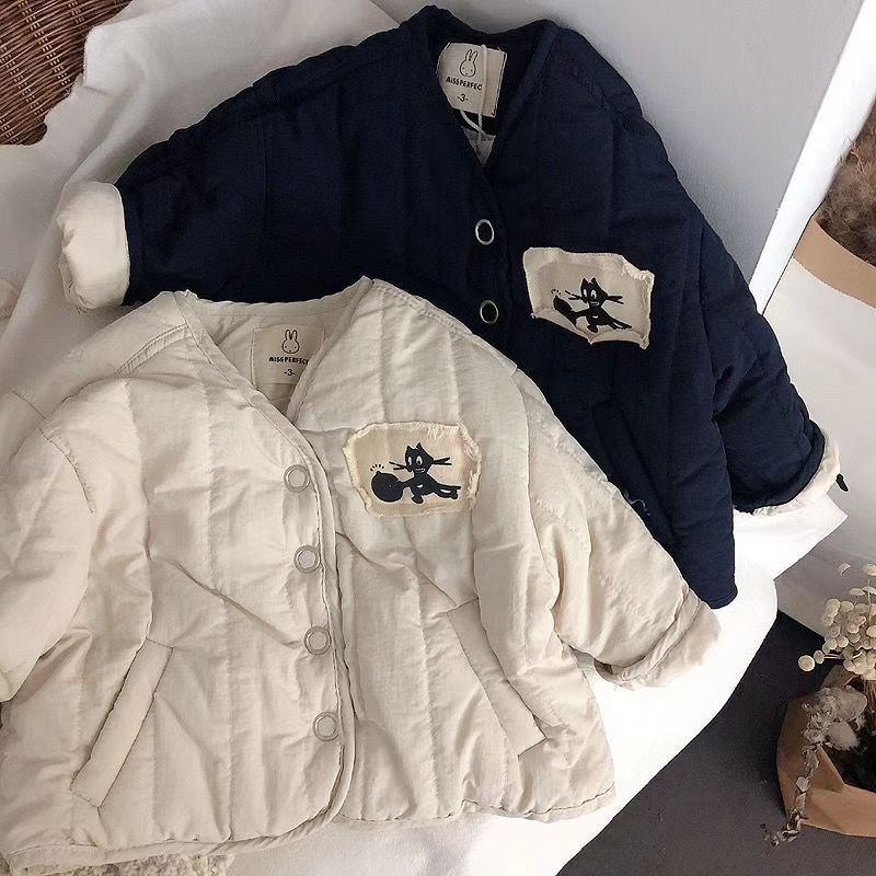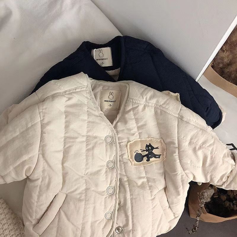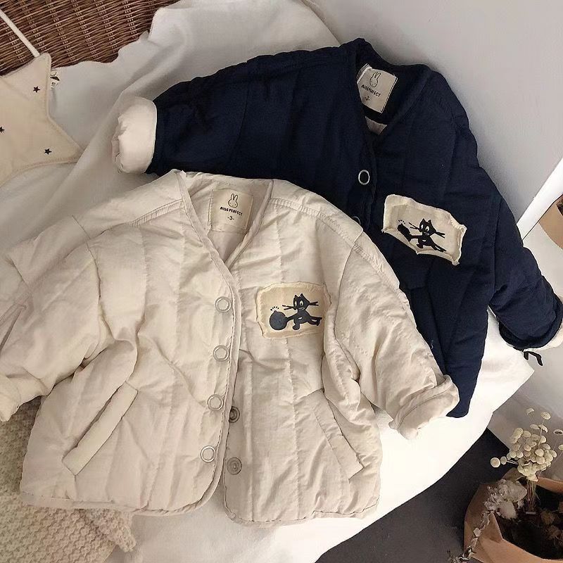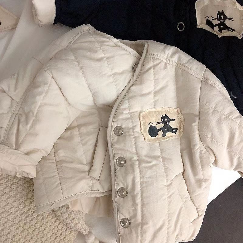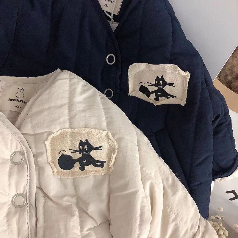 2024 가을 겨울 부드러운 한국 팬 플러스 코튼 재킷 소년 소녀 고양이 인쇄 편지 두꺼운 코튼 자켓 아기 따뜻한 코튼 자켓스토어 가기