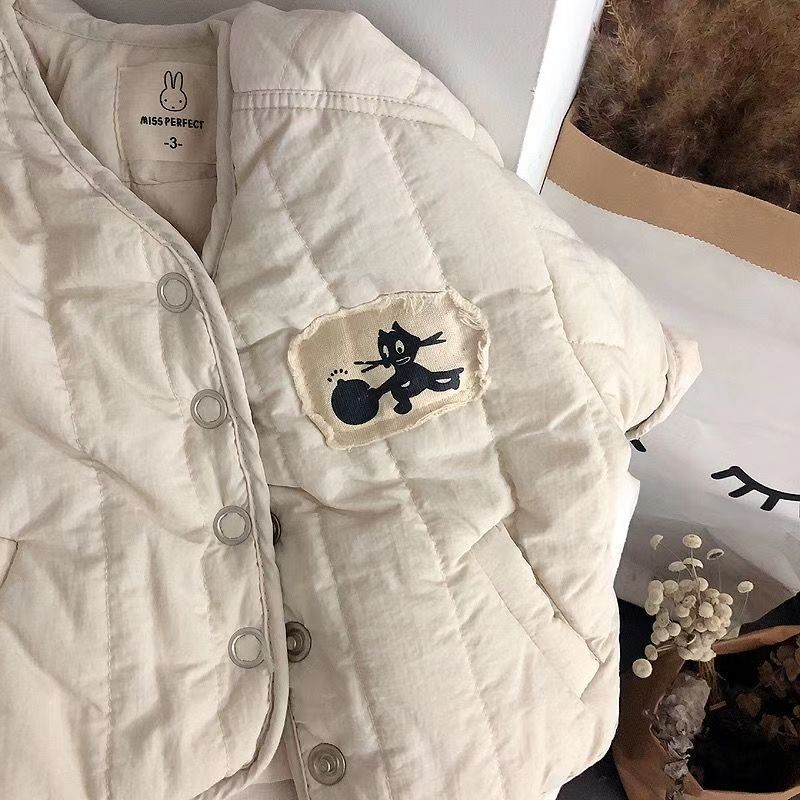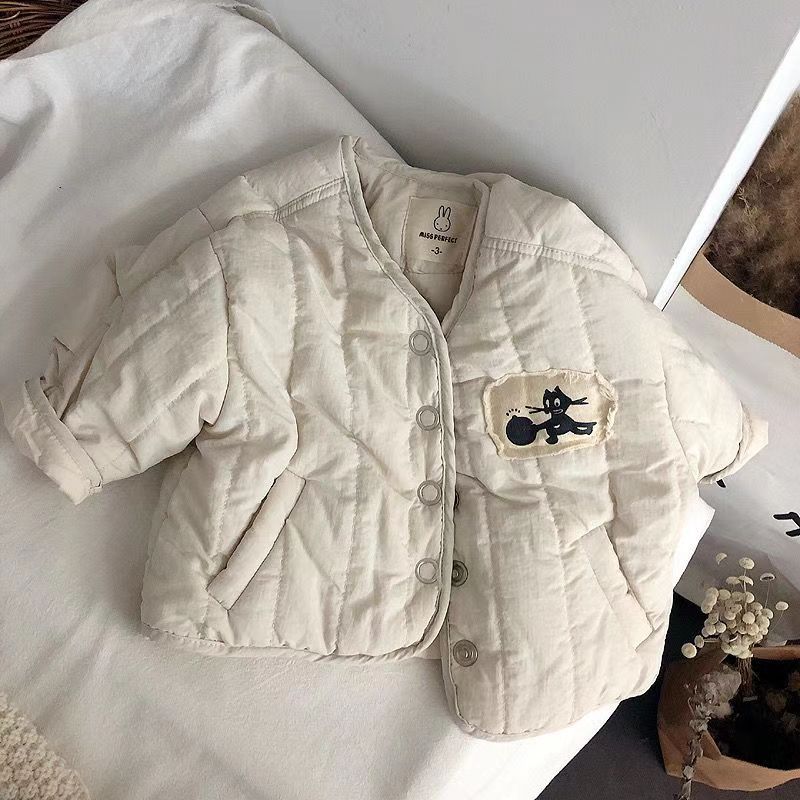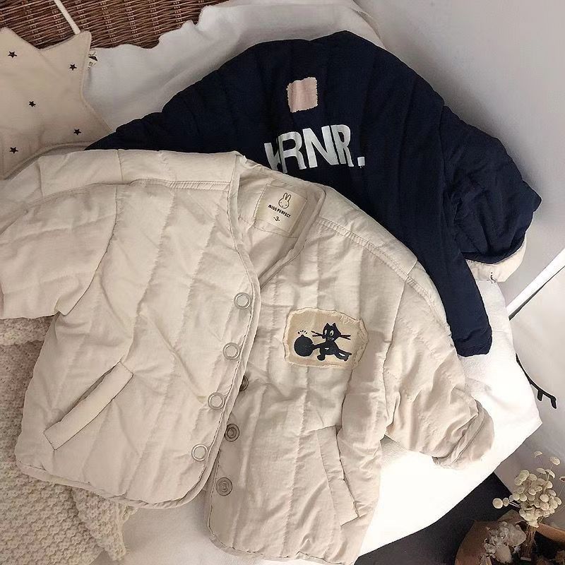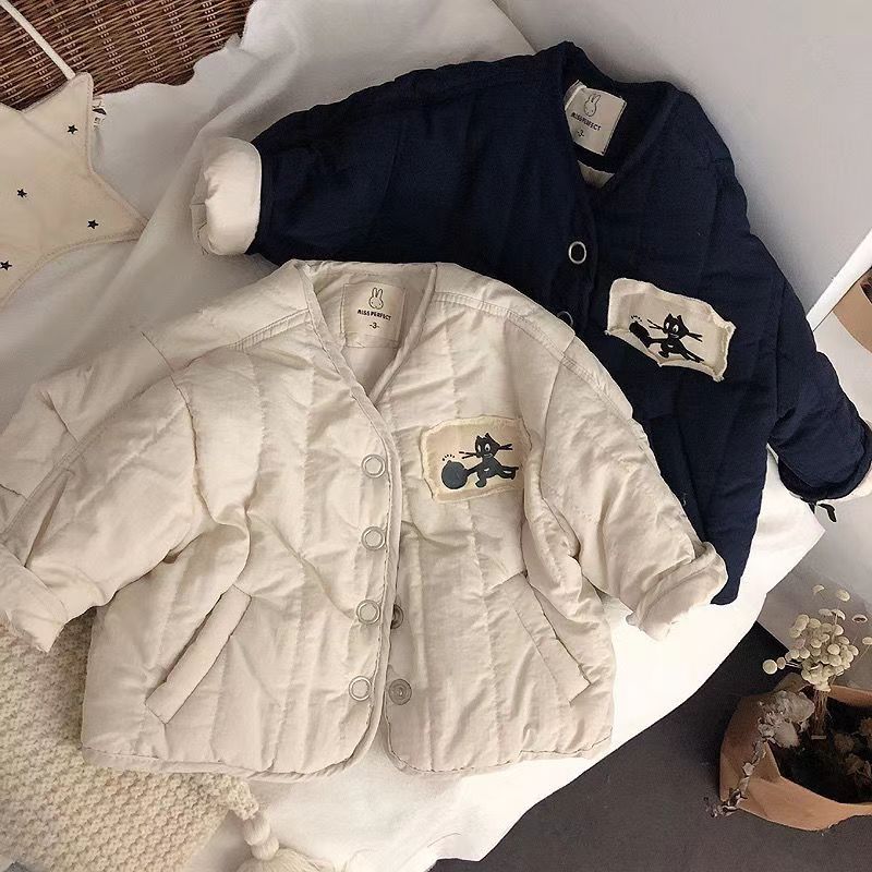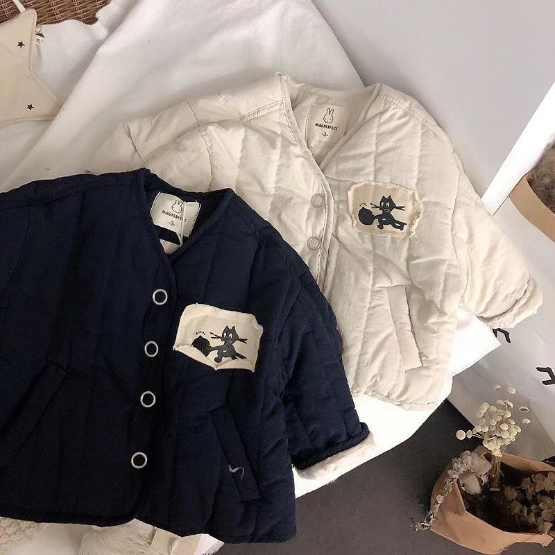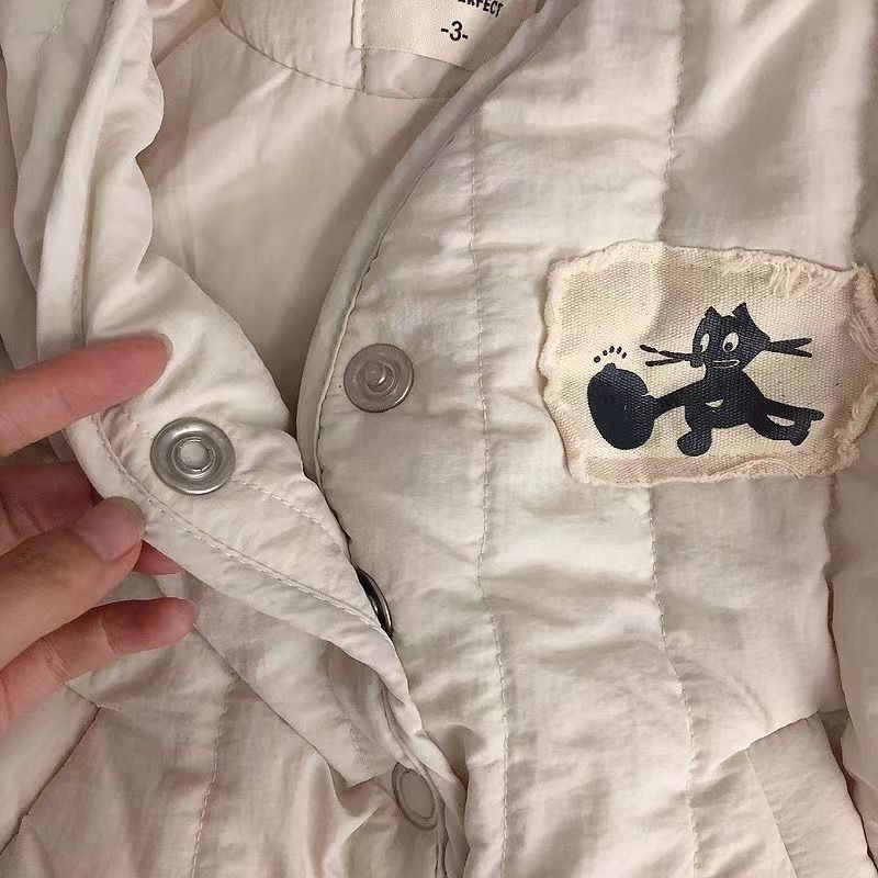 2024 가을 겨울 부드러운 한국 팬 플러스 코튼 재킷 소년 소녀 고양이 인쇄 편지 두꺼운 코튼 자켓 아기 따뜻한 코튼 자켓스토어 가기