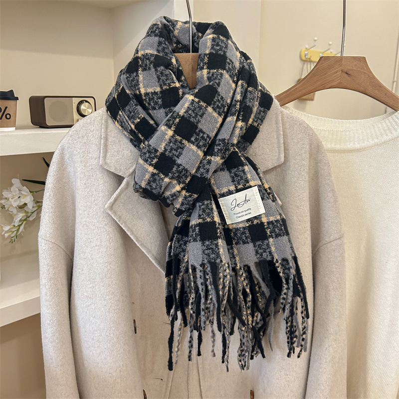 가을과 겨울 새 루프 원사 여자 격자 무늬 올매치 클래식 캐시미어 스카프 한국 스타일 두꺼운 술 커플 목도리