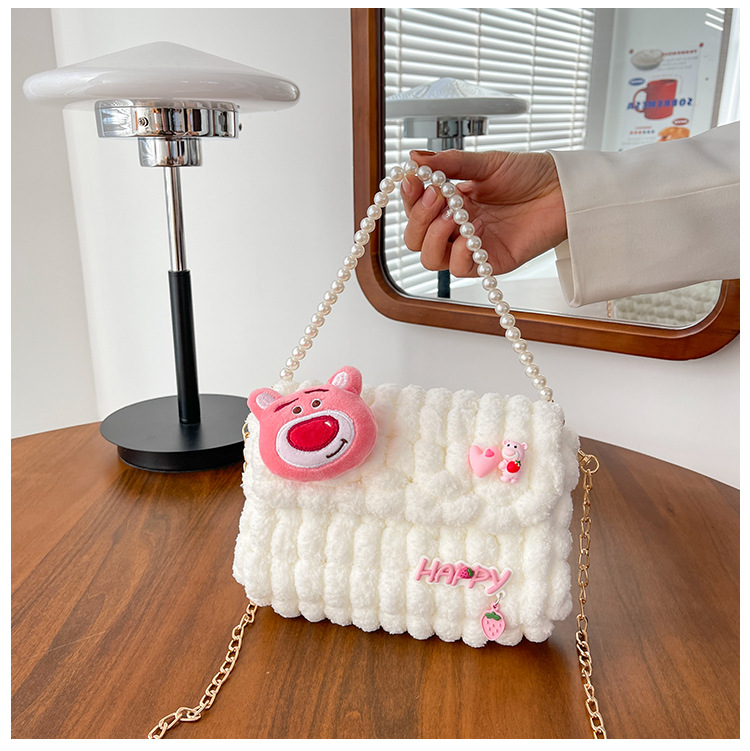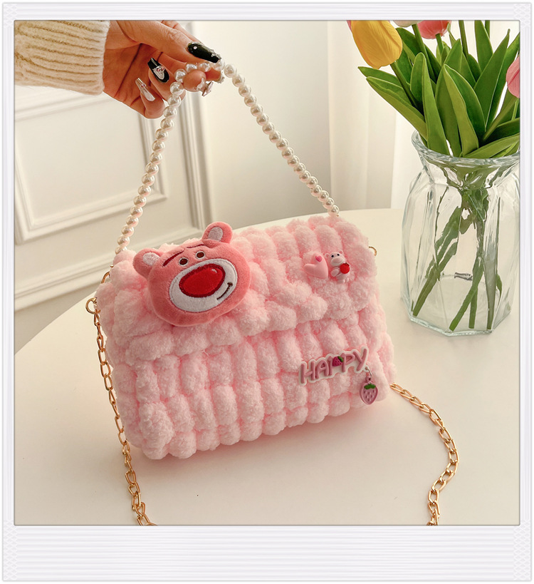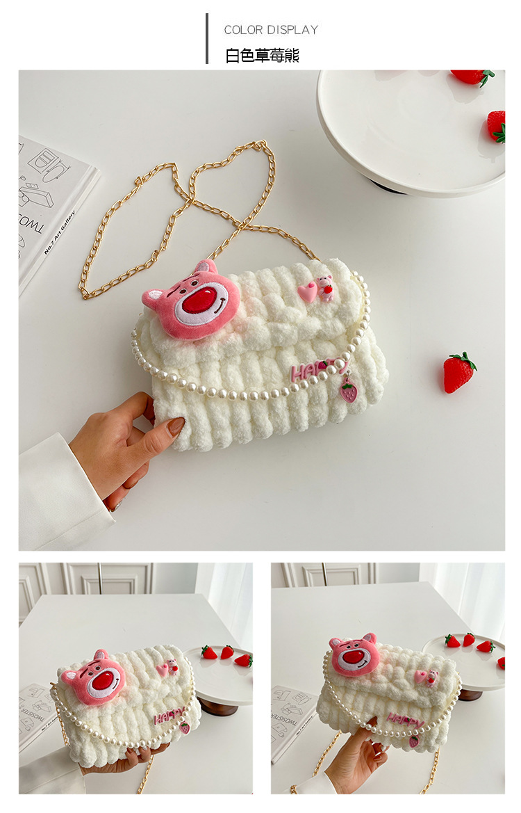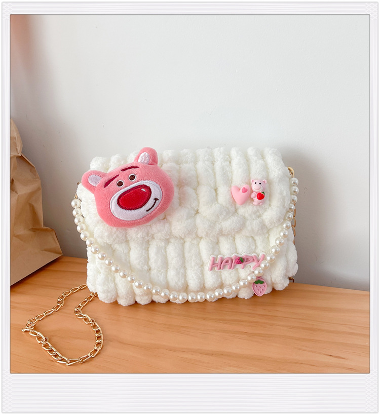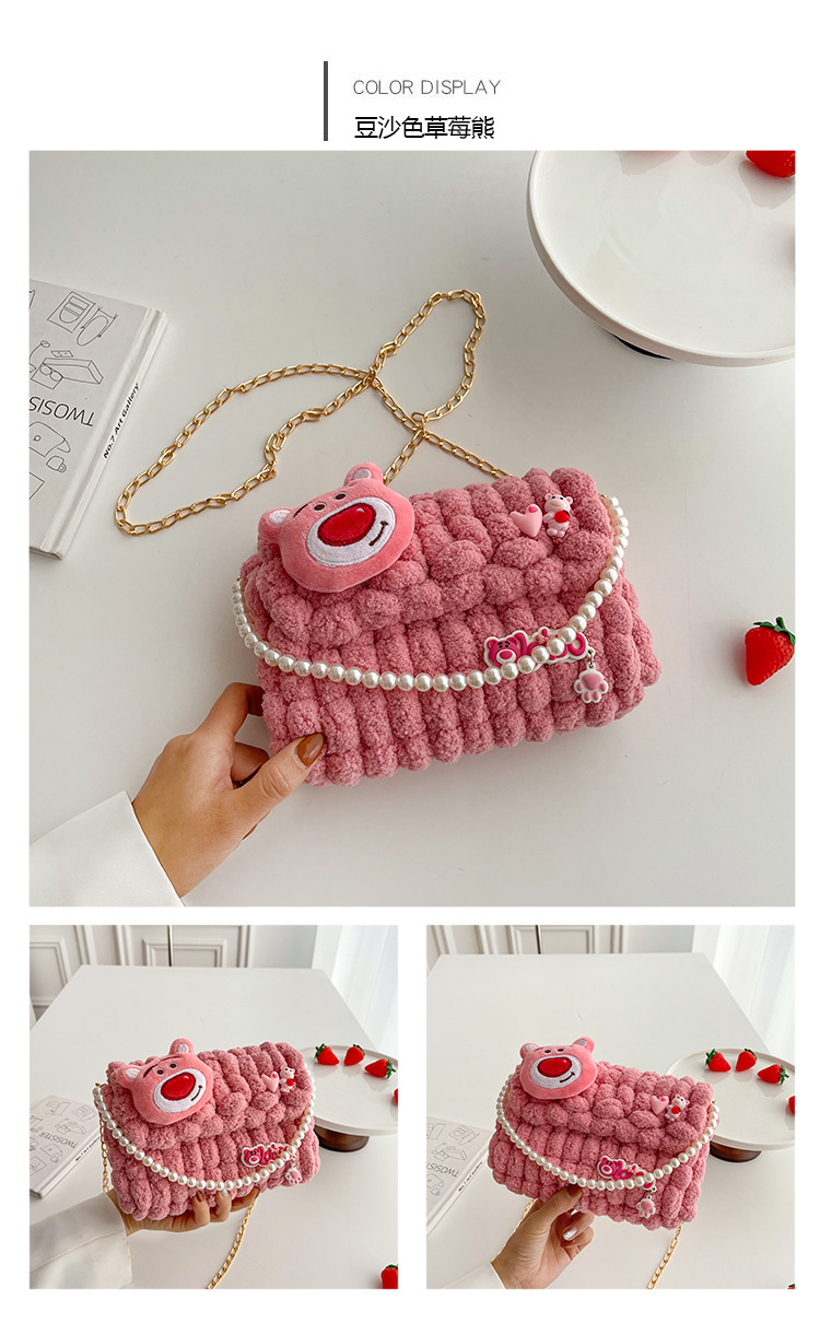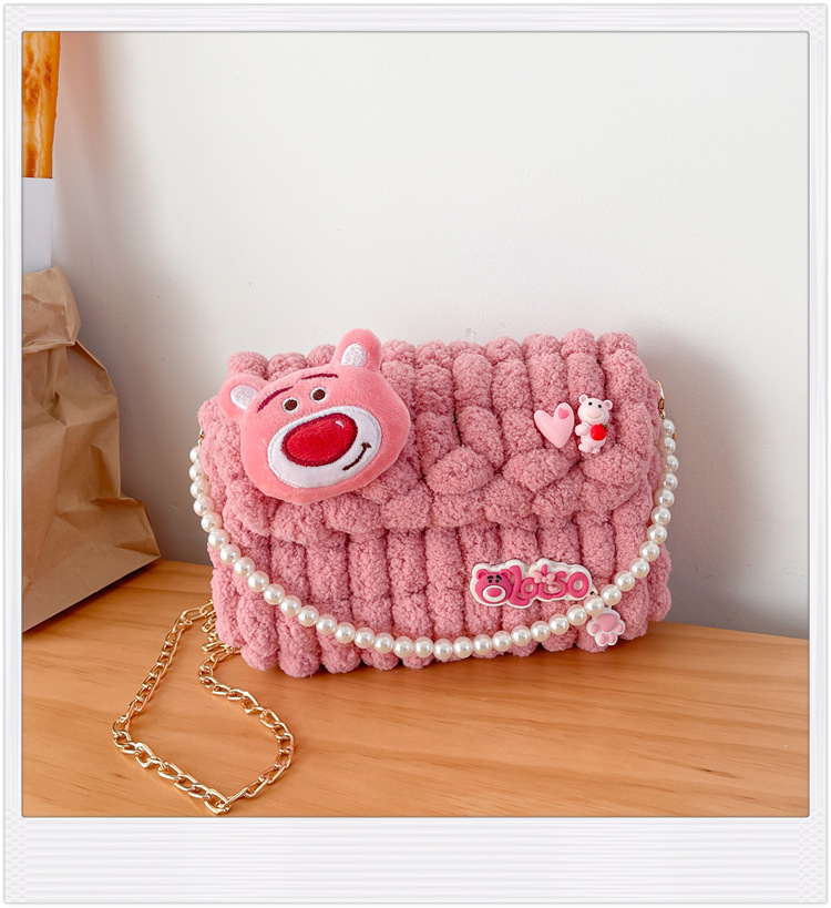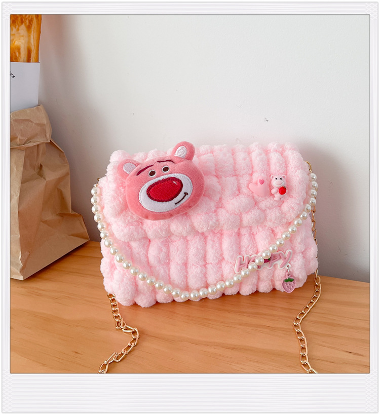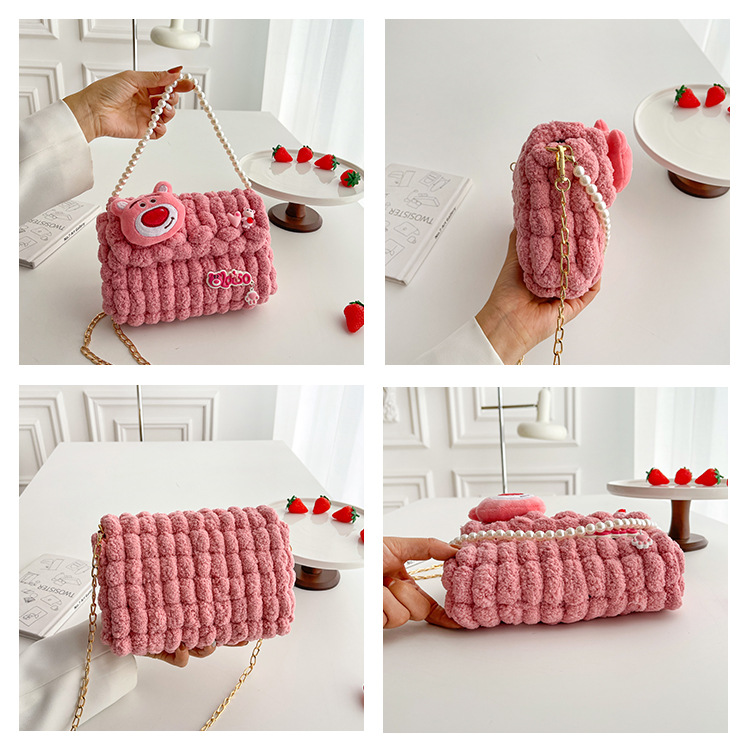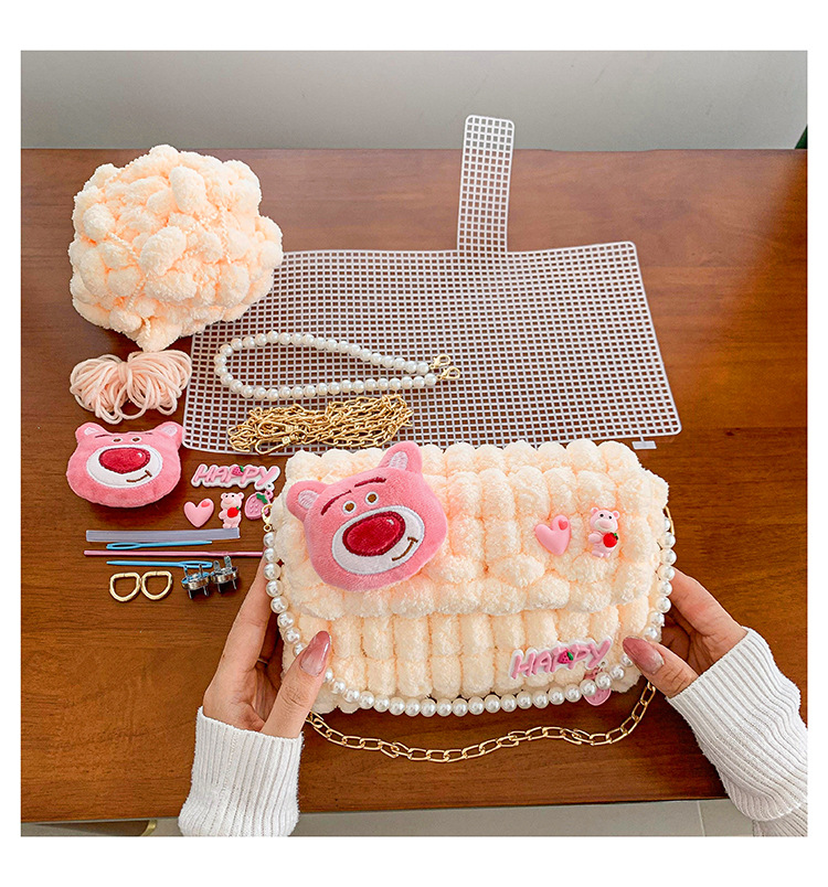 딸기 곰 수제 짠 가방 DIY 소재 가방 양모 홈 메이드 어린이 귀여운 크로스 바디 가방 여자 친구를 위해 완료스토어 가기