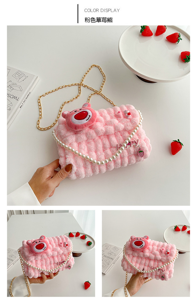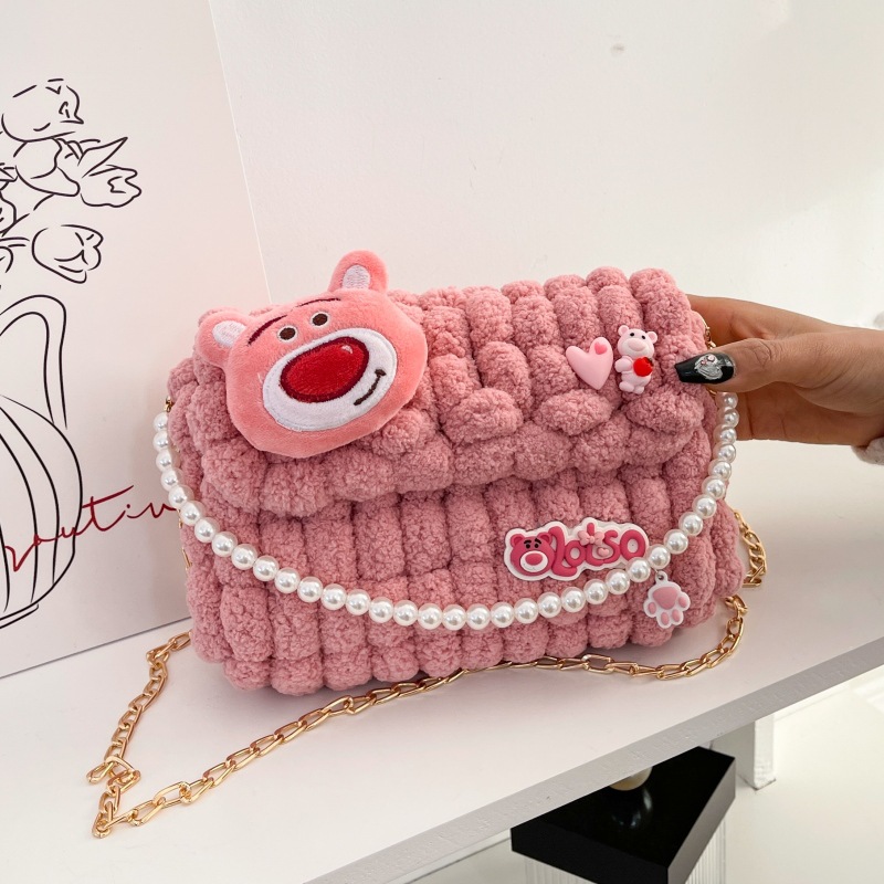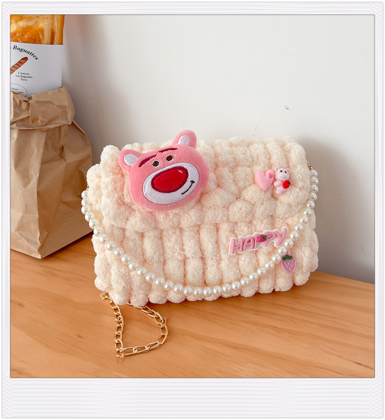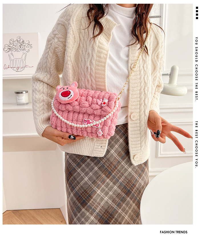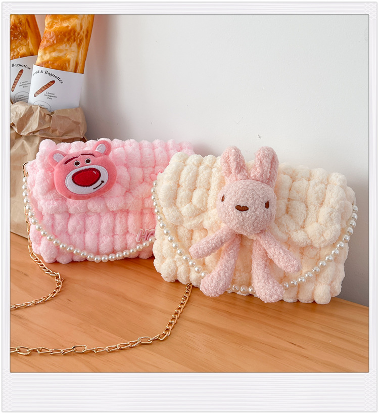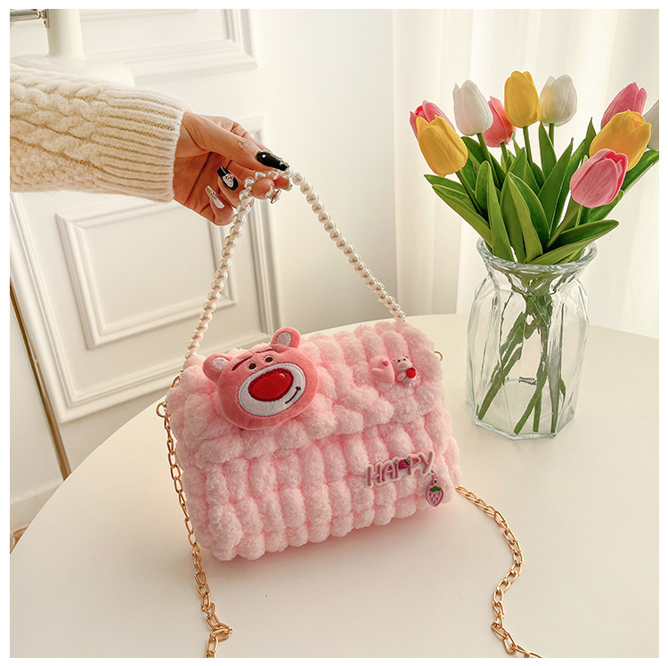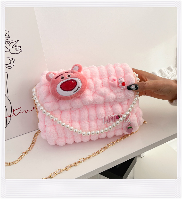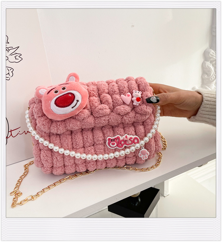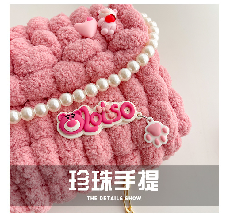딸기 곰 수제 짠 가방 DIY 소재 가방 양모 홈 메이드 어린이 귀여운 크로스 바디 가방 여자 친구를 위해 완료스토어 가기