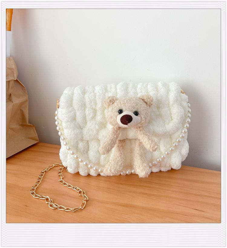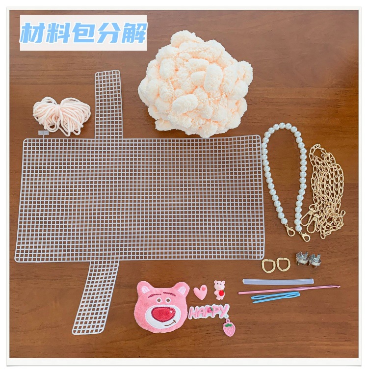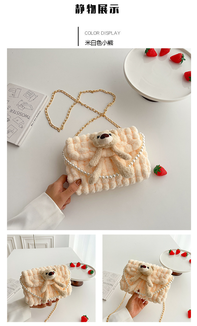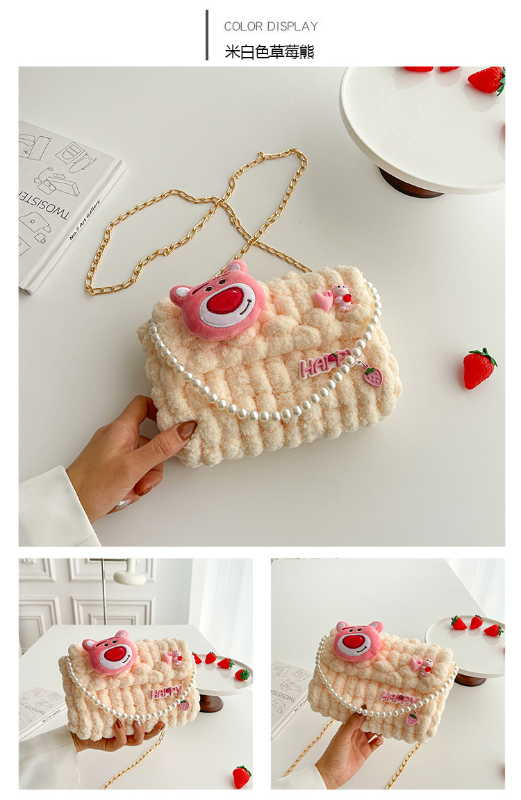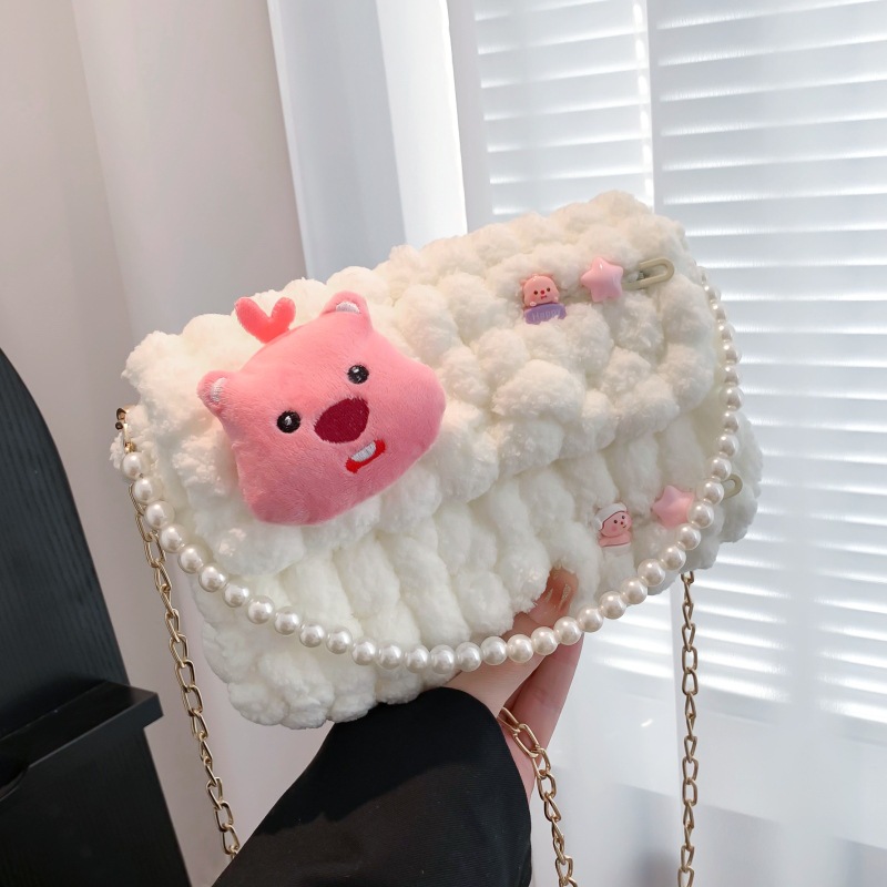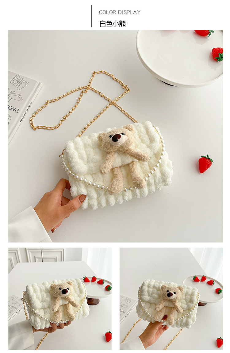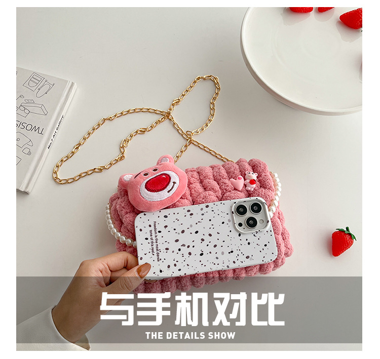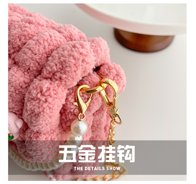딸기 곰 수제 짠 가방 DIY 소재 가방 양모 홈 메이드 어린이 귀여운 크로스 바디 가방 여자 친구를 위해 완료스토어 가기