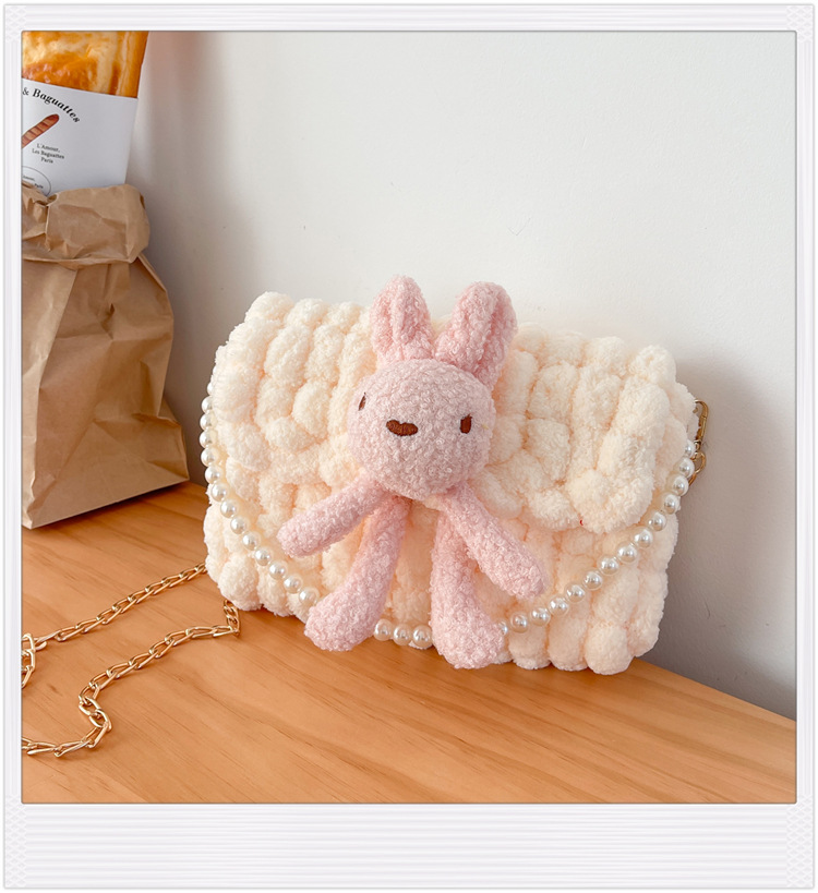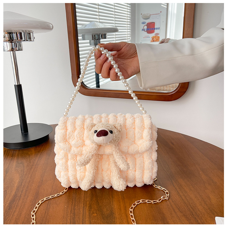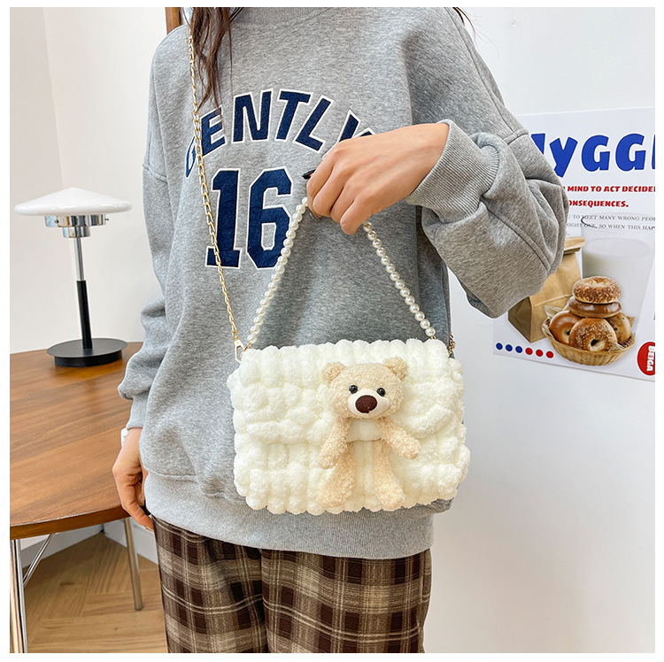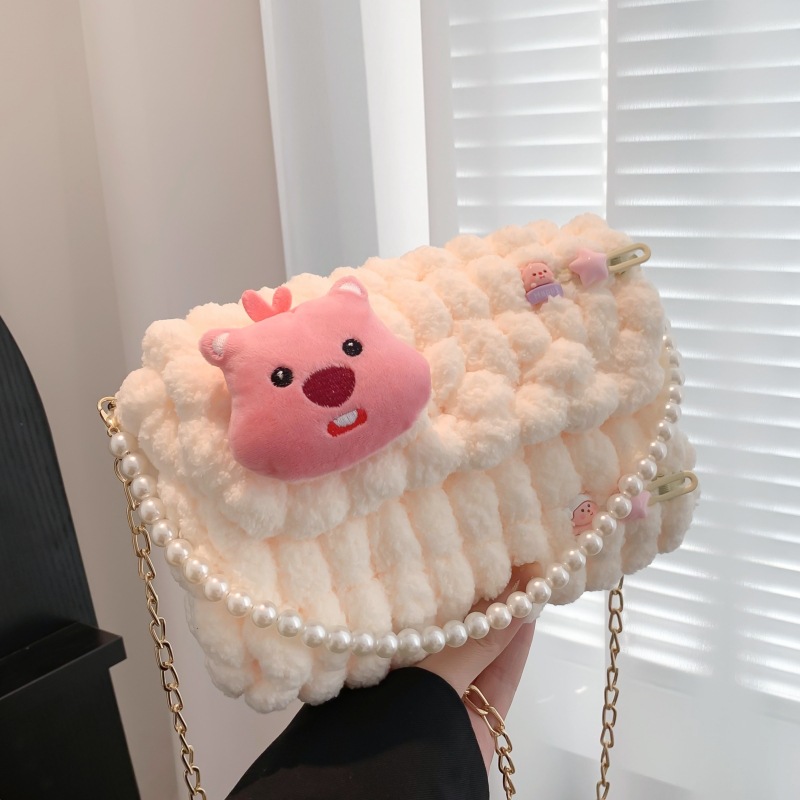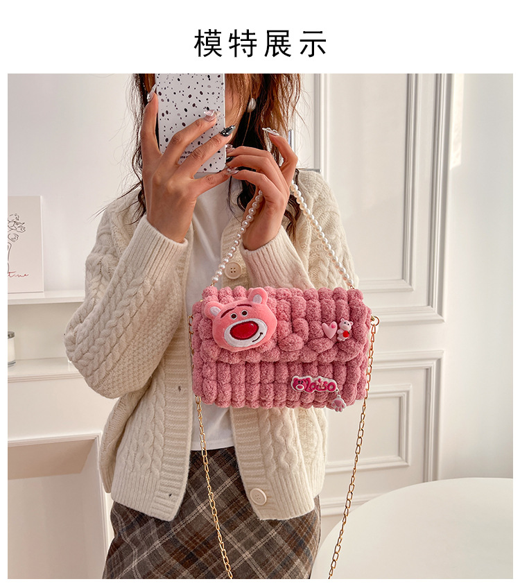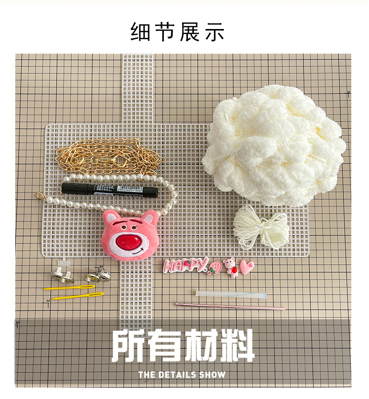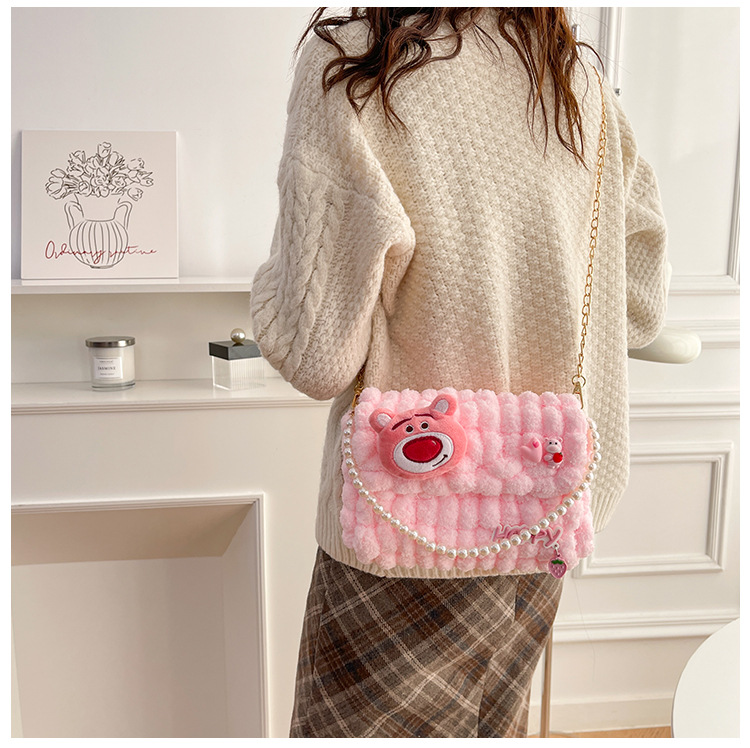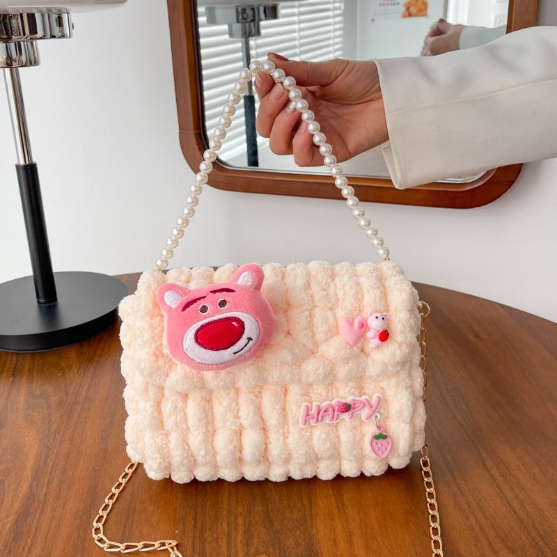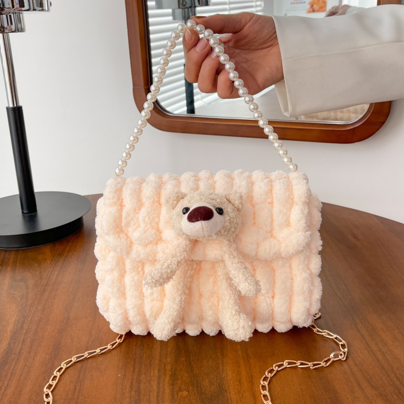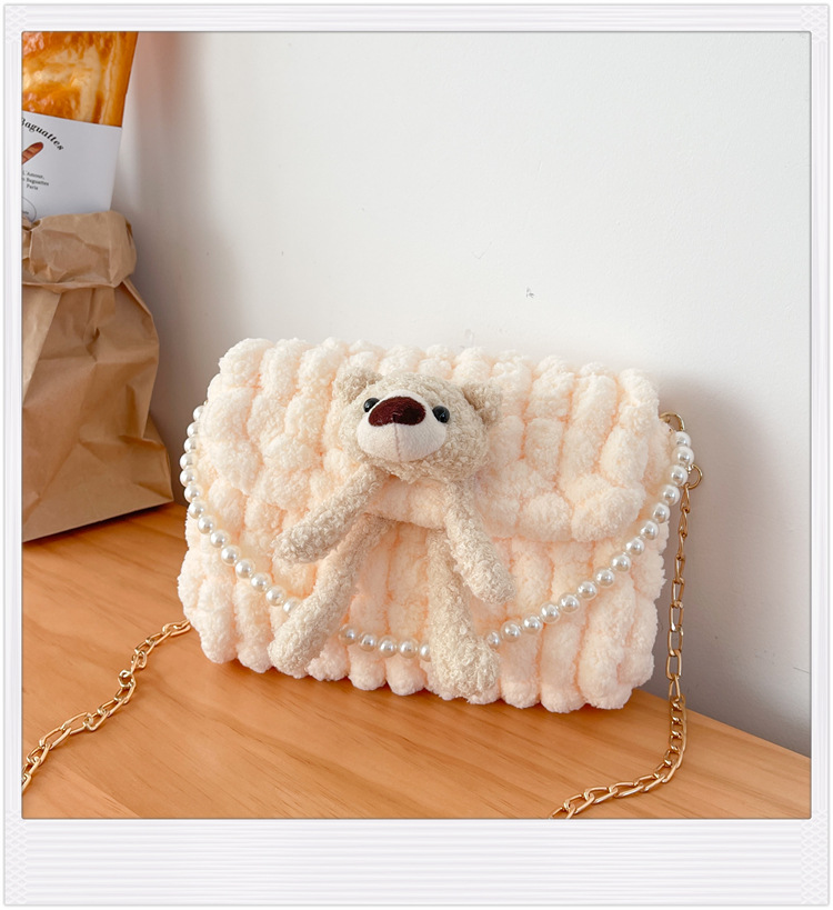 딸기 곰 수제 짠 가방 DIY 소재 가방 양모 홈 메이드 어린이 귀여운 크로스 바디 가방 여자 친구를 위해 완료스토어 가기