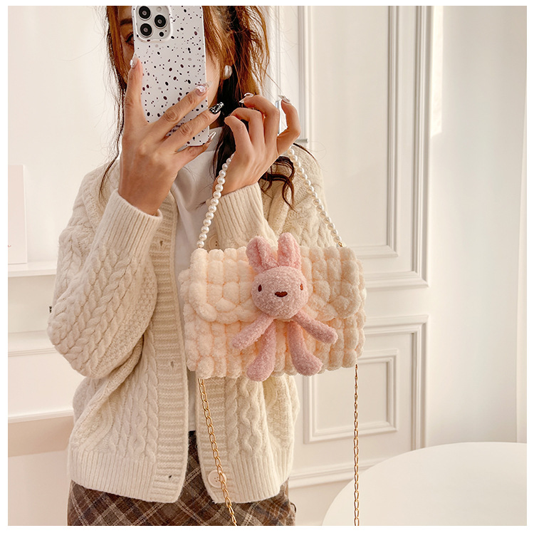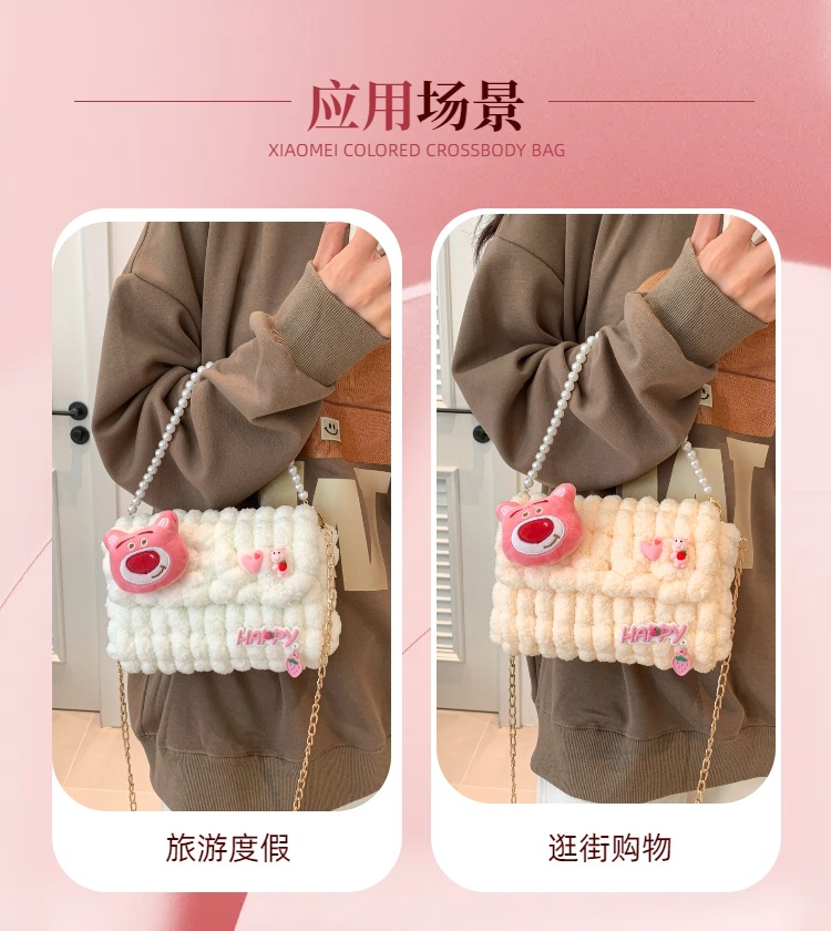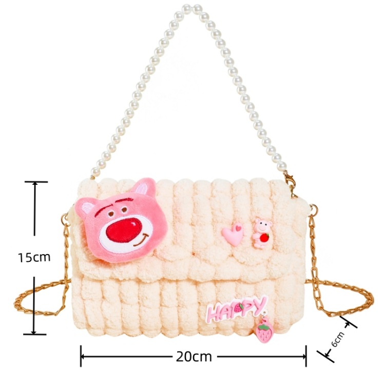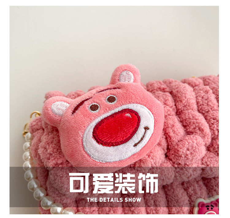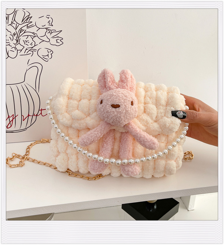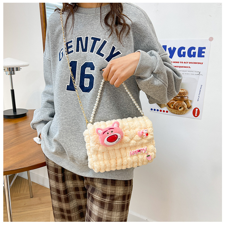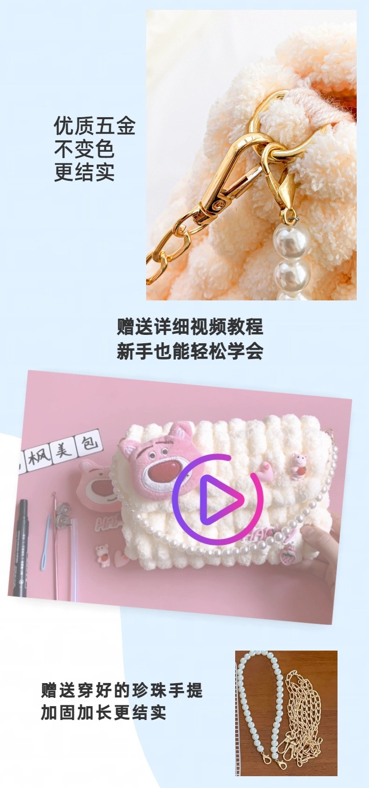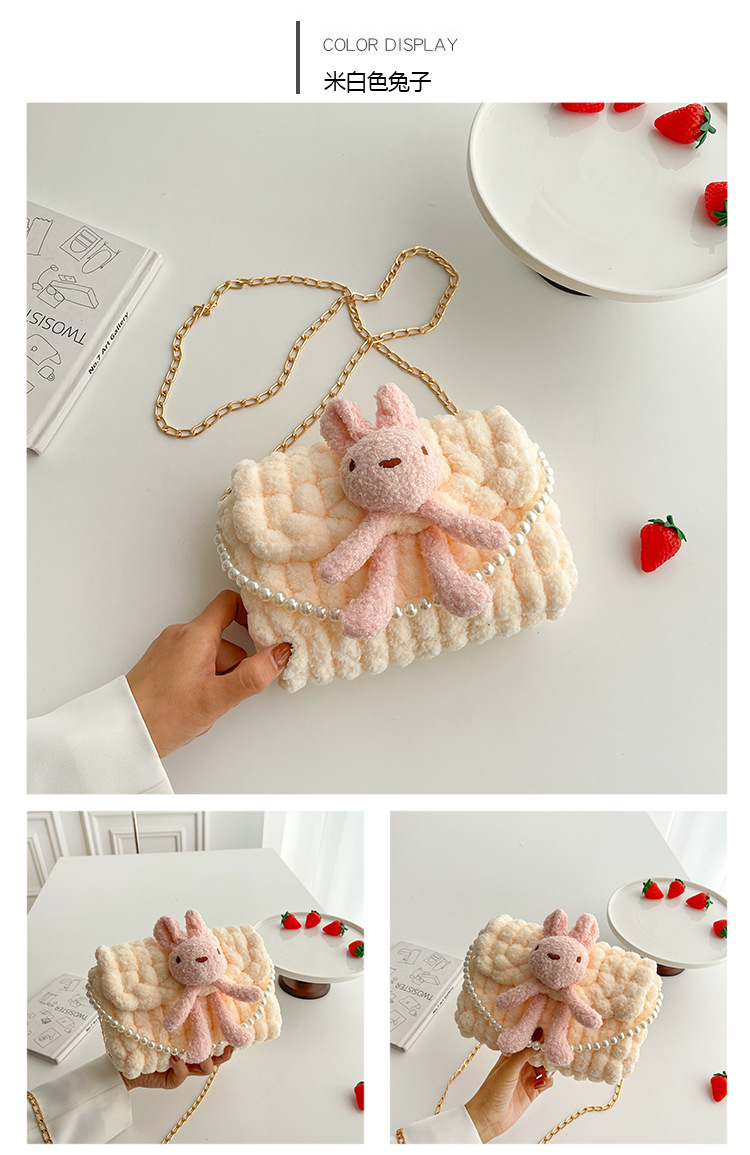 딸기 곰 수제 짠 가방 DIY 소재 가방 양모 홈 메이드 어린이 귀여운 크로스 바디 가방 여자 친구를 위해 완료스토어 가기
