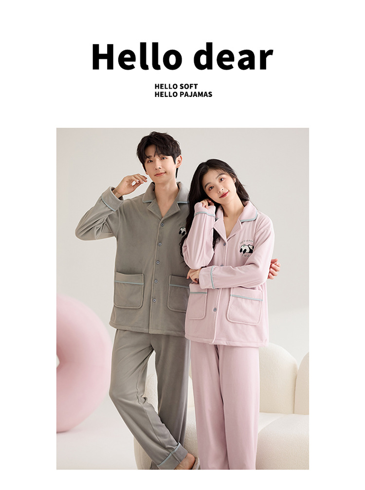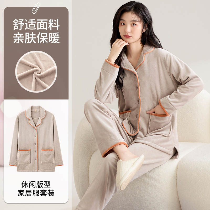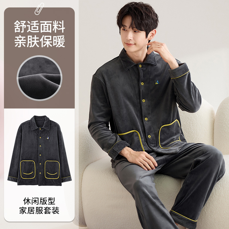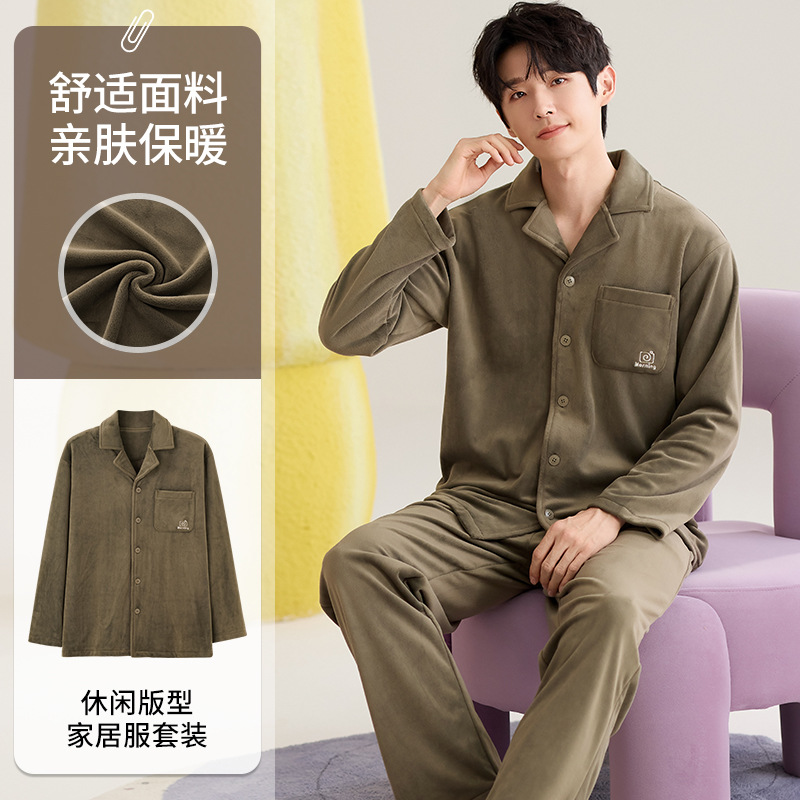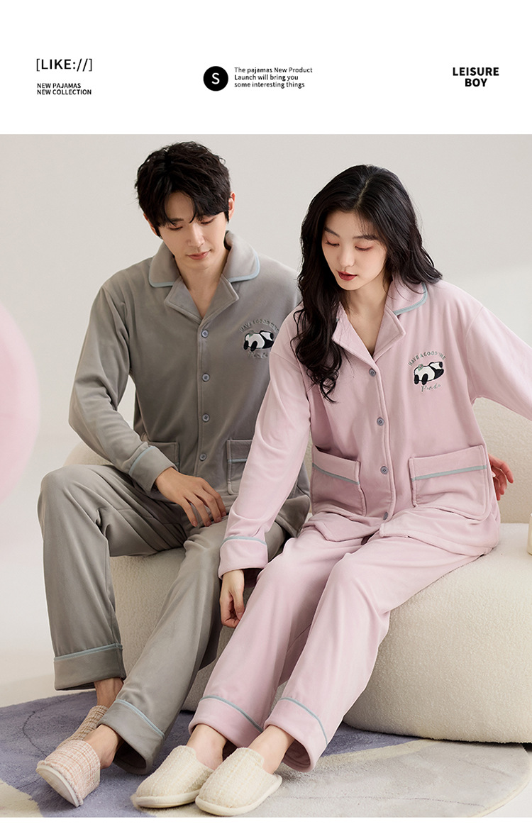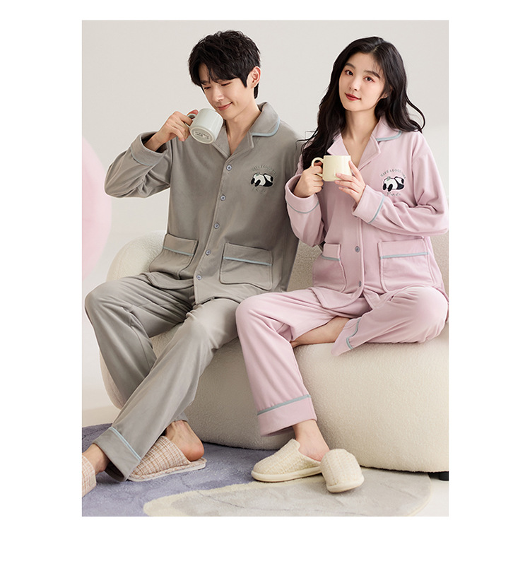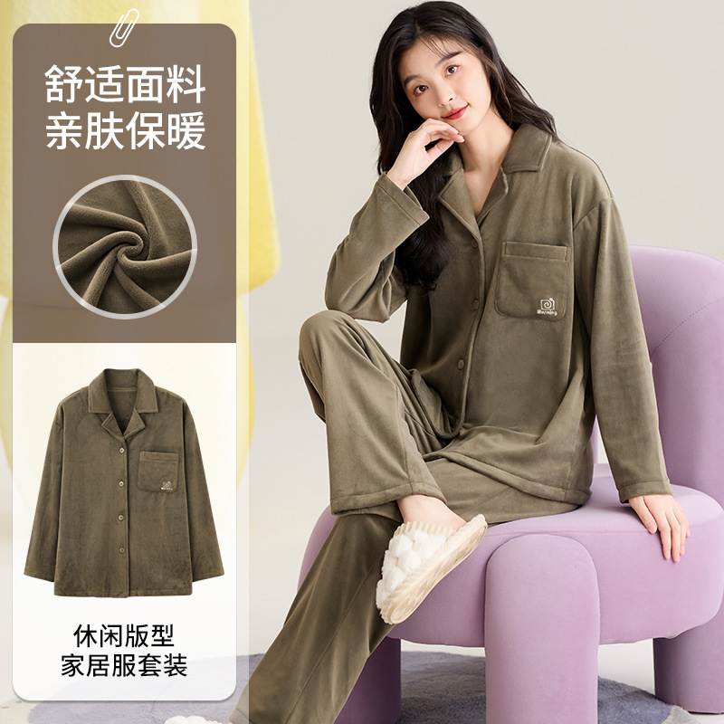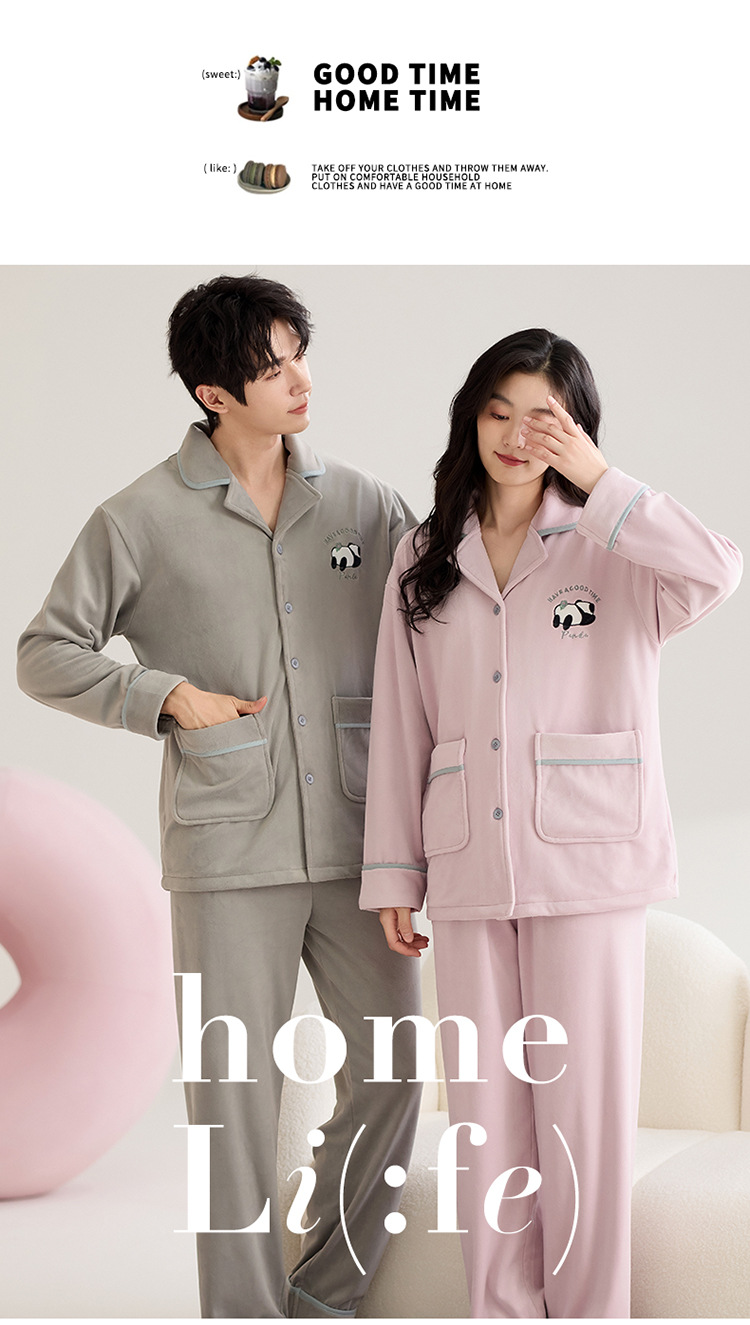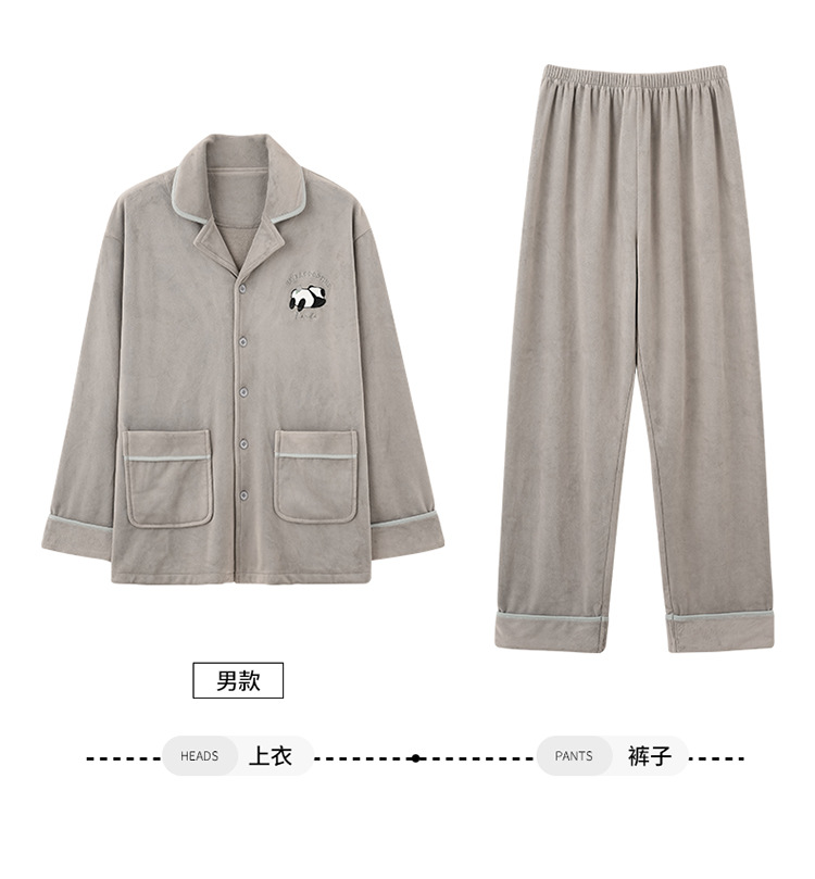 섬 벨벳 커플 잠옷 여성의 가을과 겨울 산호 벨벳 두꺼운 따뜻한 집 옷 남성 기모 하이 엔드 카디건 세트스토어 가기
