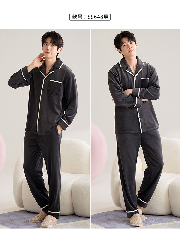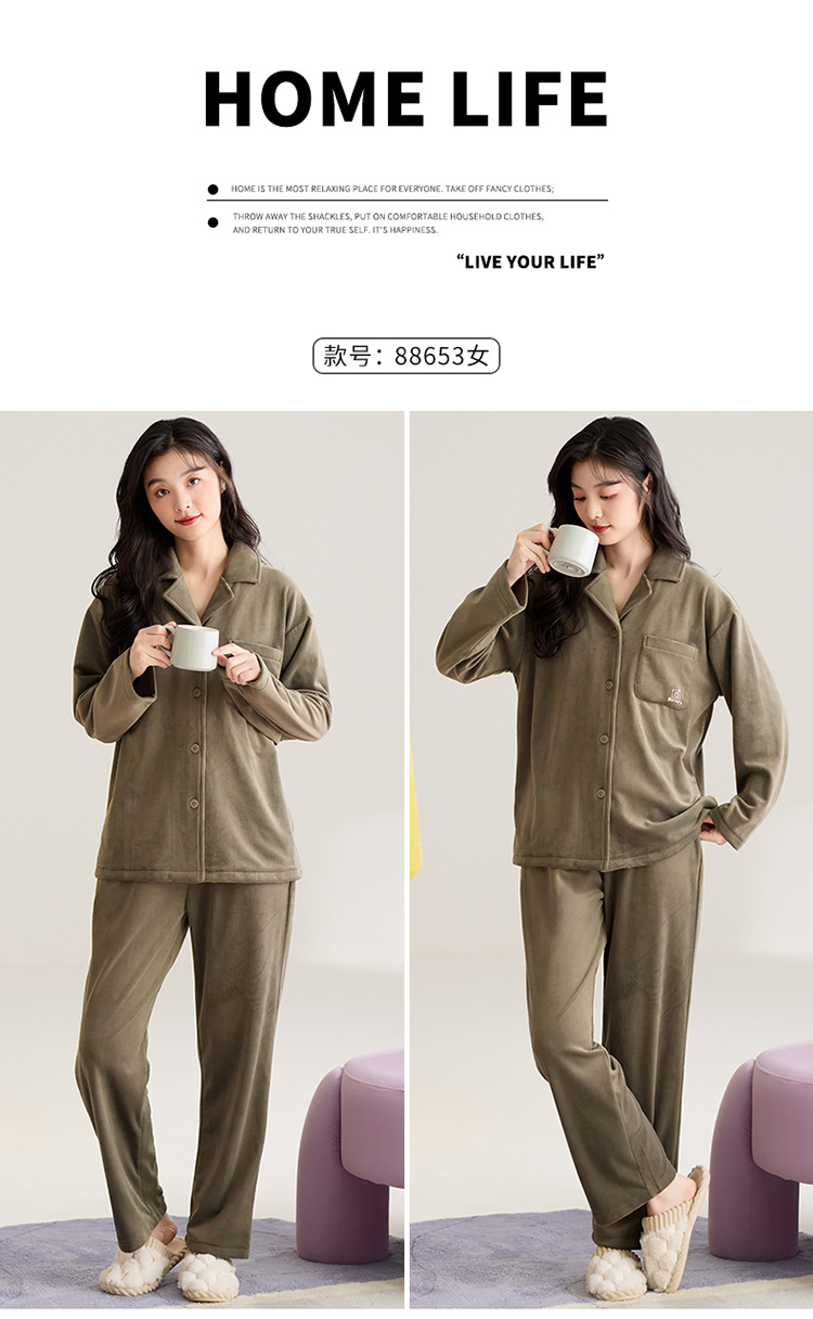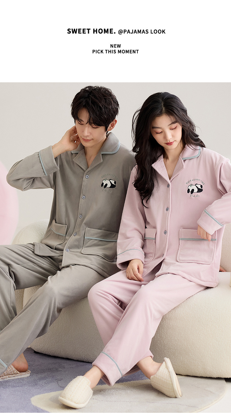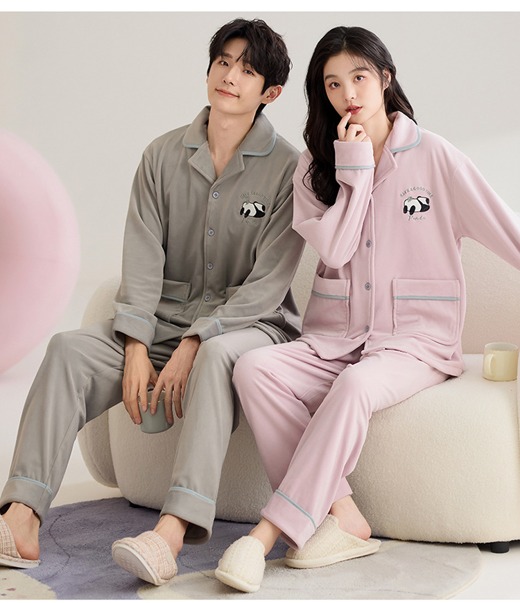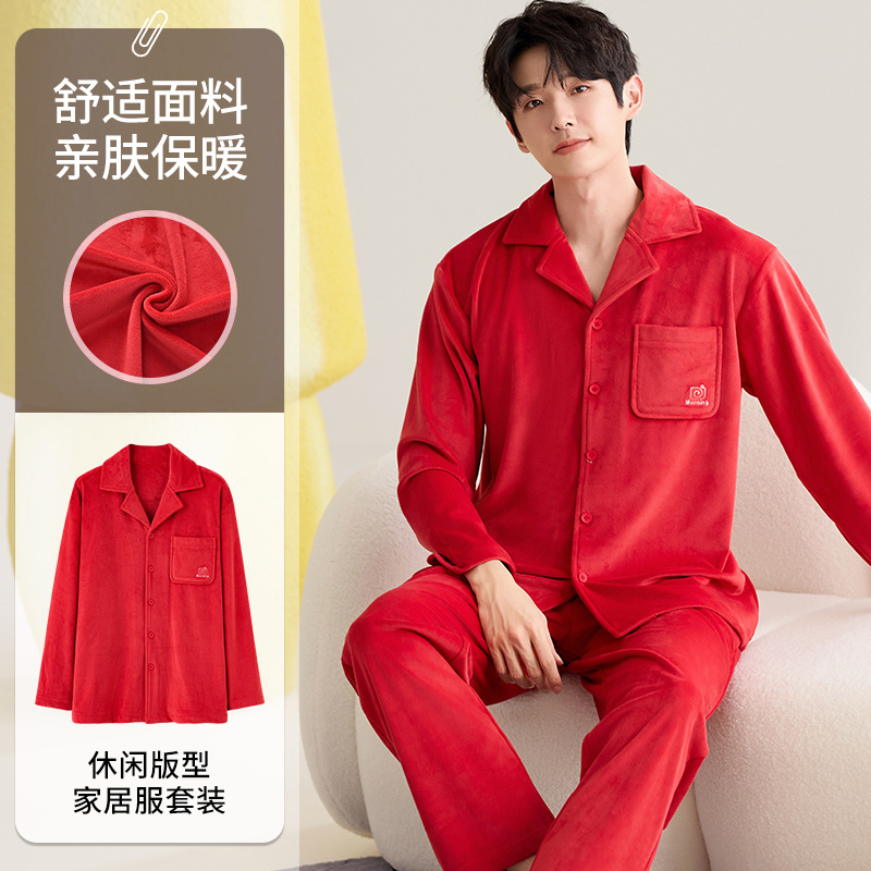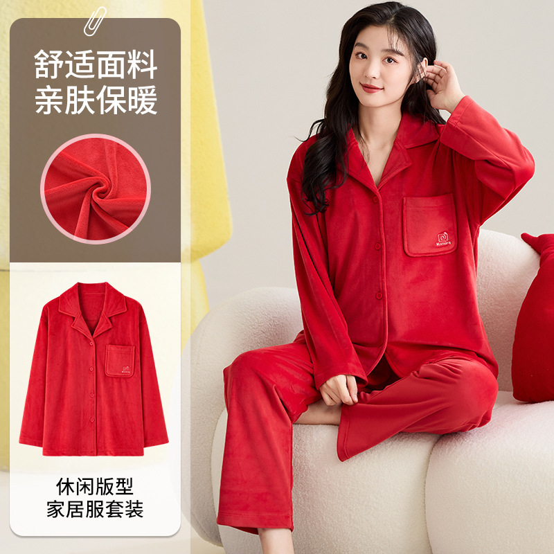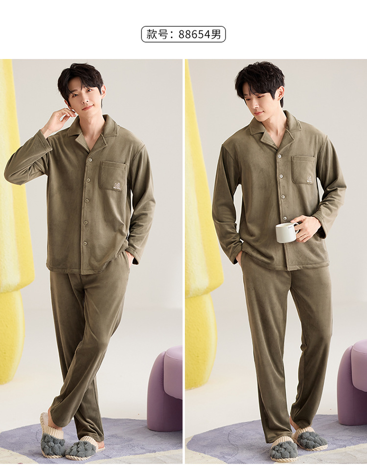 섬 벨벳 커플 잠옷 여성의 가을과 겨울 산호 벨벳 두꺼운 따뜻한 집 옷 남성 기모 하이 엔드 카디건 세트스토어 가기