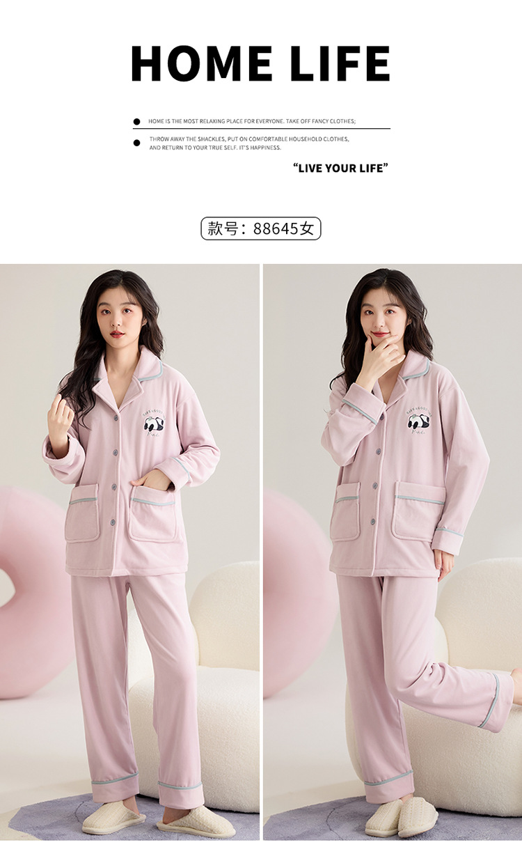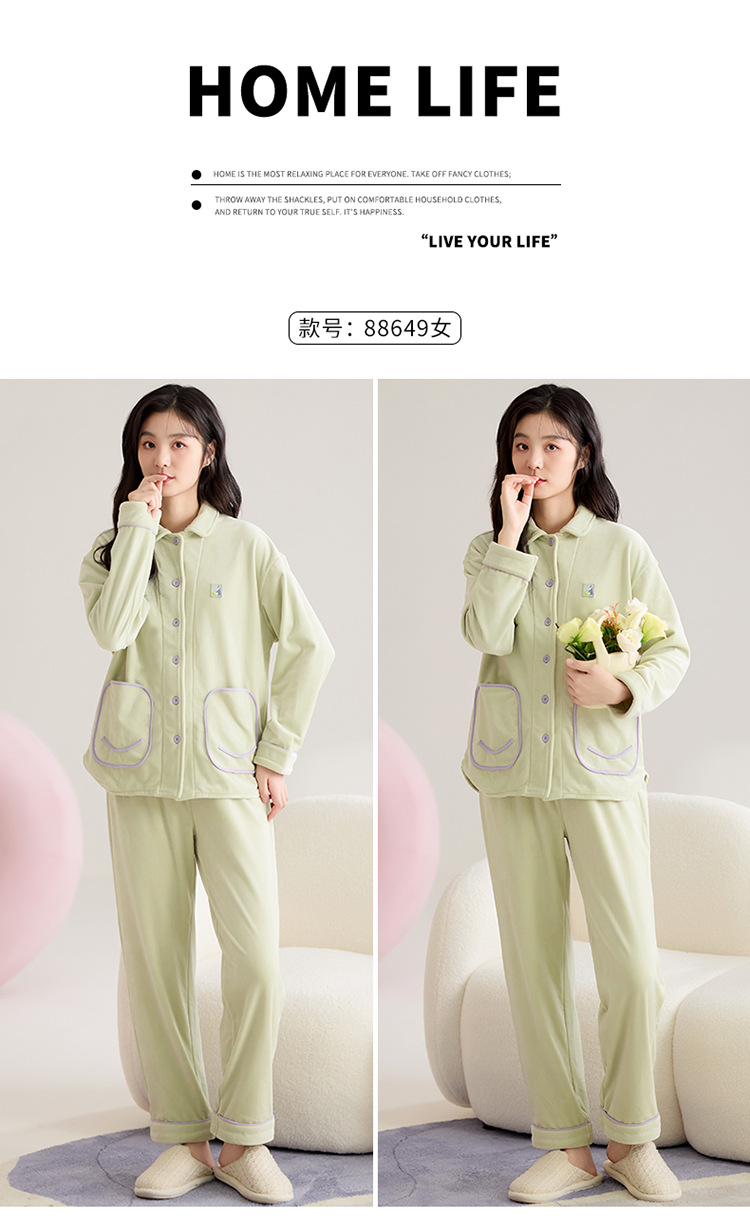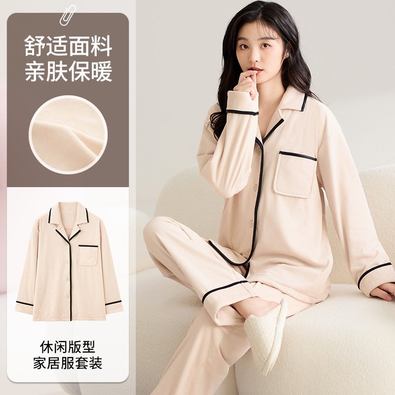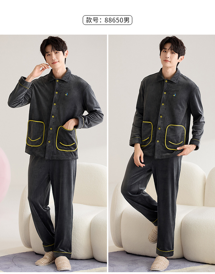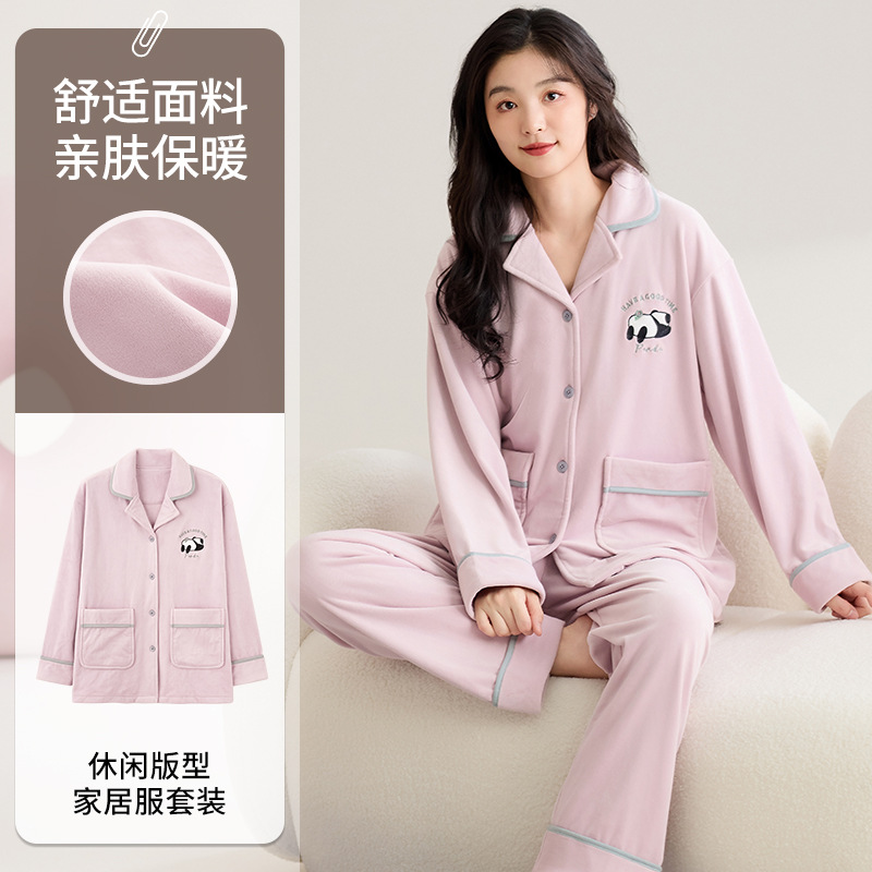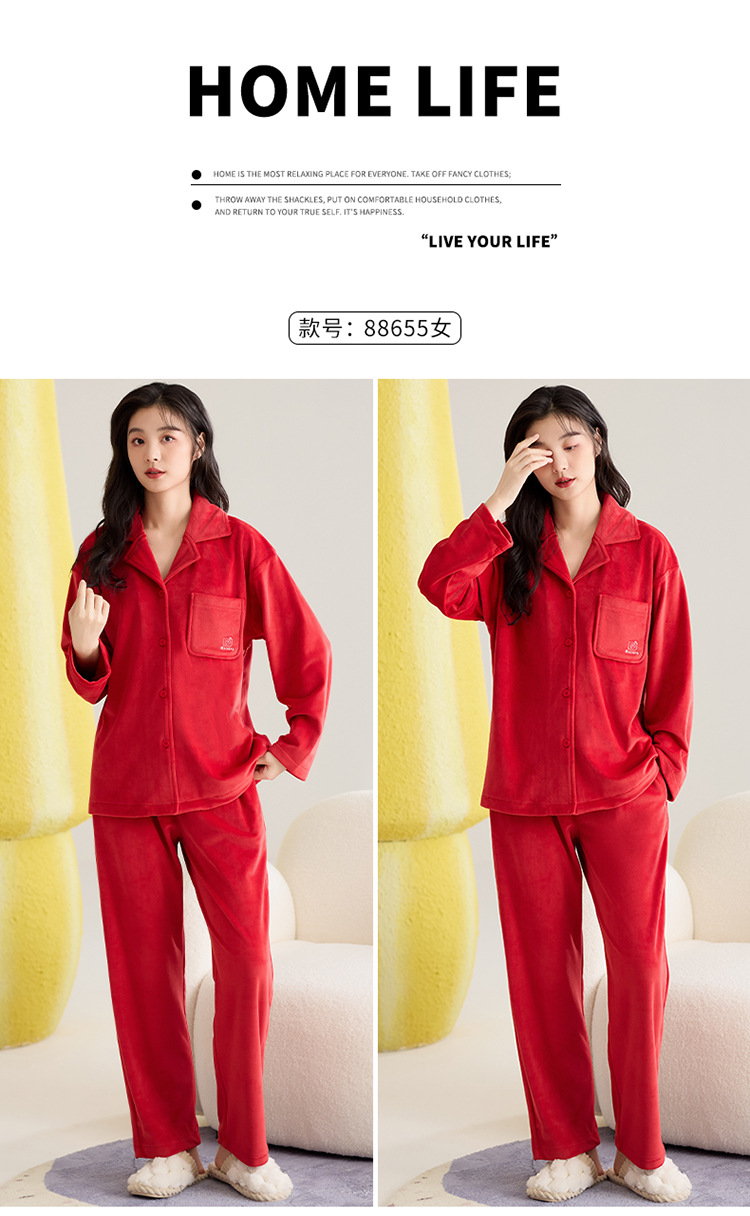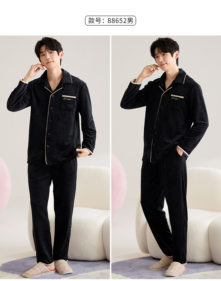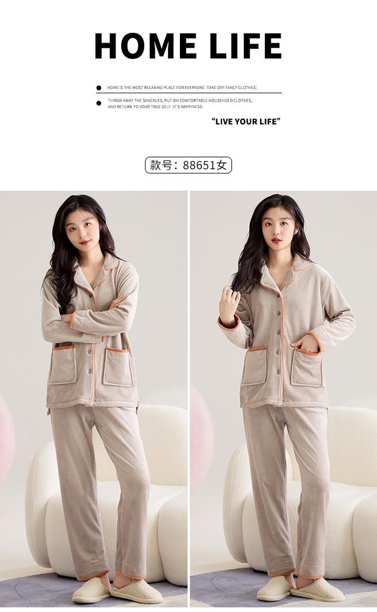 섬 벨벳 커플 잠옷 여성의 가을과 겨울 산호 벨벳 두꺼운 따뜻한 집 옷 남성 기모 하이 엔드 카디건 세트스토어 가기