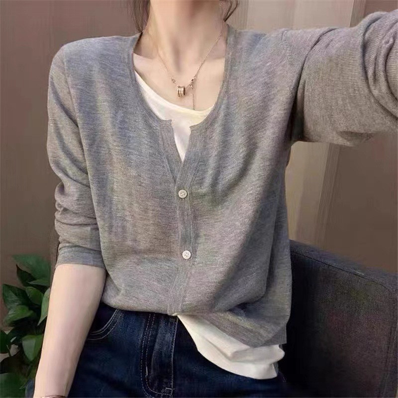 봄과 가을 새로운 한국 스타일 가짜 투피스 니트 카디건 자켓 양모베이스 셔츠 여성의 느슨한 올매치 디자인 센스 한국 스타일스토어 가기