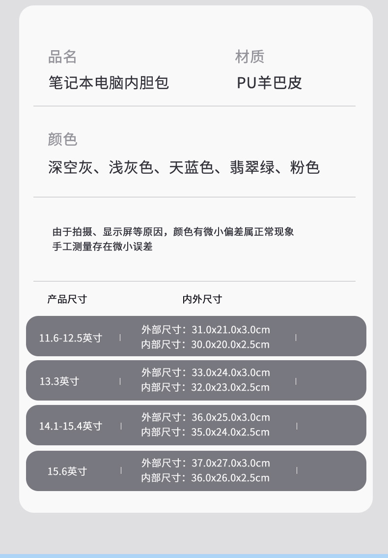 양가죽 내부 가방 컴퓨터 가방 노트북 충격 방지 두꺼운 벨벳 내부 가방 태블릿 가방 13.3inch 방수 및 충격 방지
