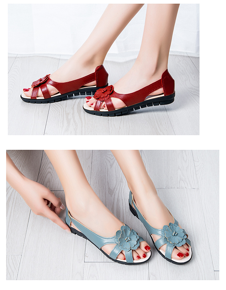 국경 간 폭발 가방 굽은 중공 생선 입 샌들 여성의 2024 년 여름 새로운 낮은 굽 샌들 외부 착용 유럽 및 미국 꽃 싱글 레이어 신발스토어 가기