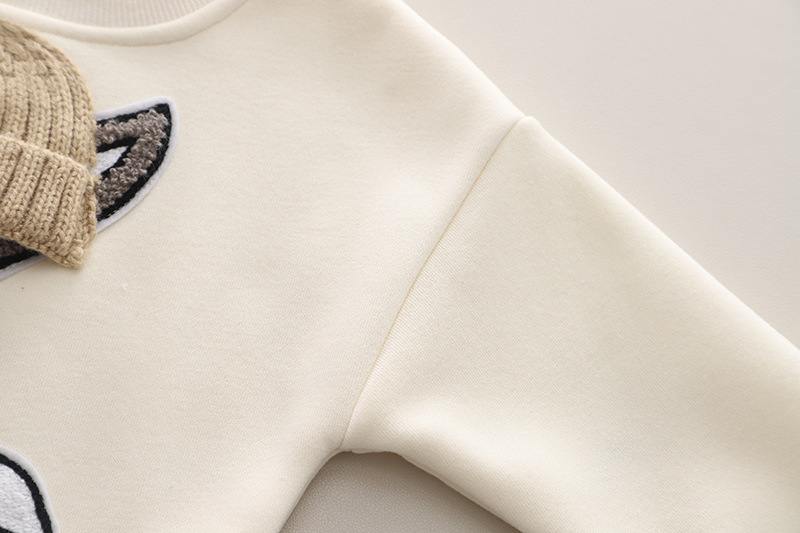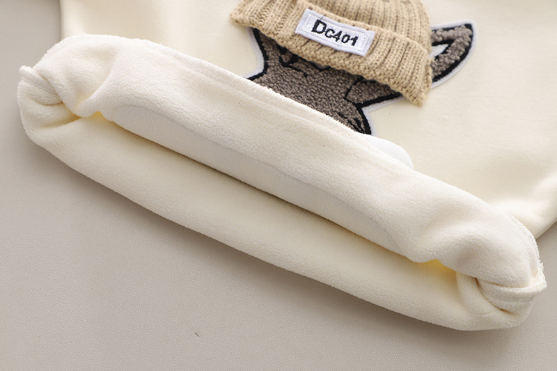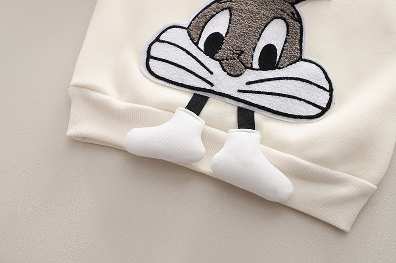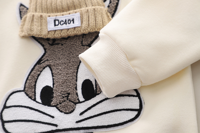 여자 서양식 기모 스웨트 셔츠 줄무늬 바지 세트 2024 새로운 여자 아기 겨울 만화 토끼 투피스 세트