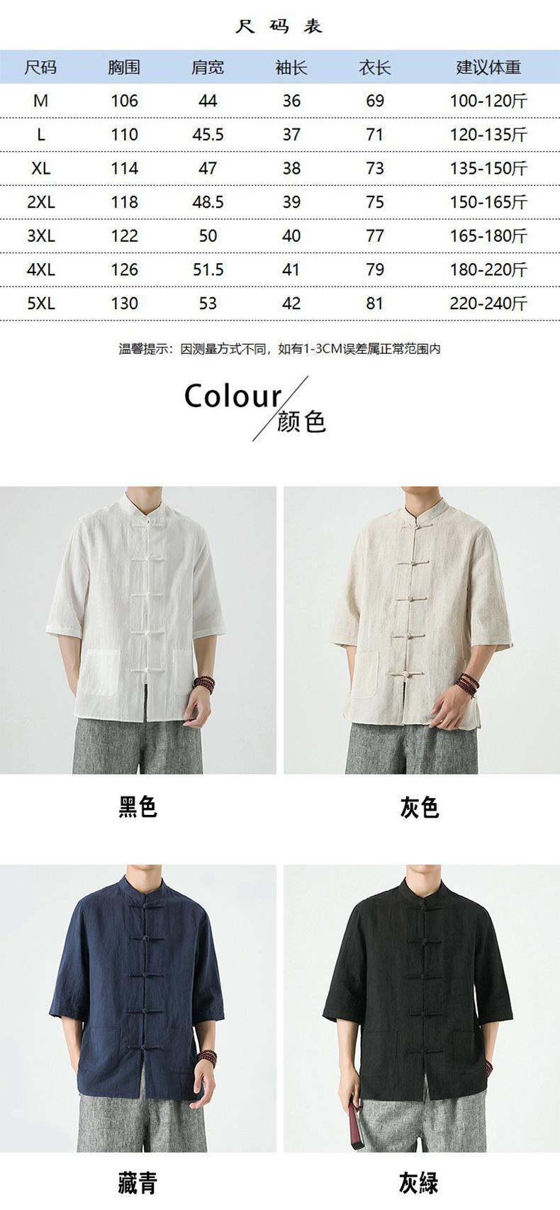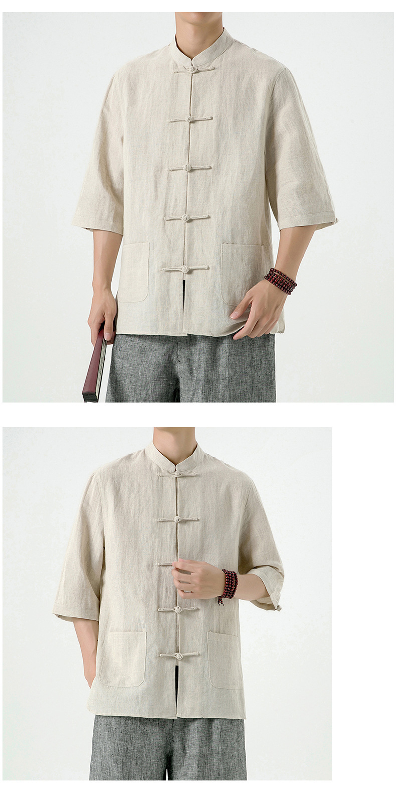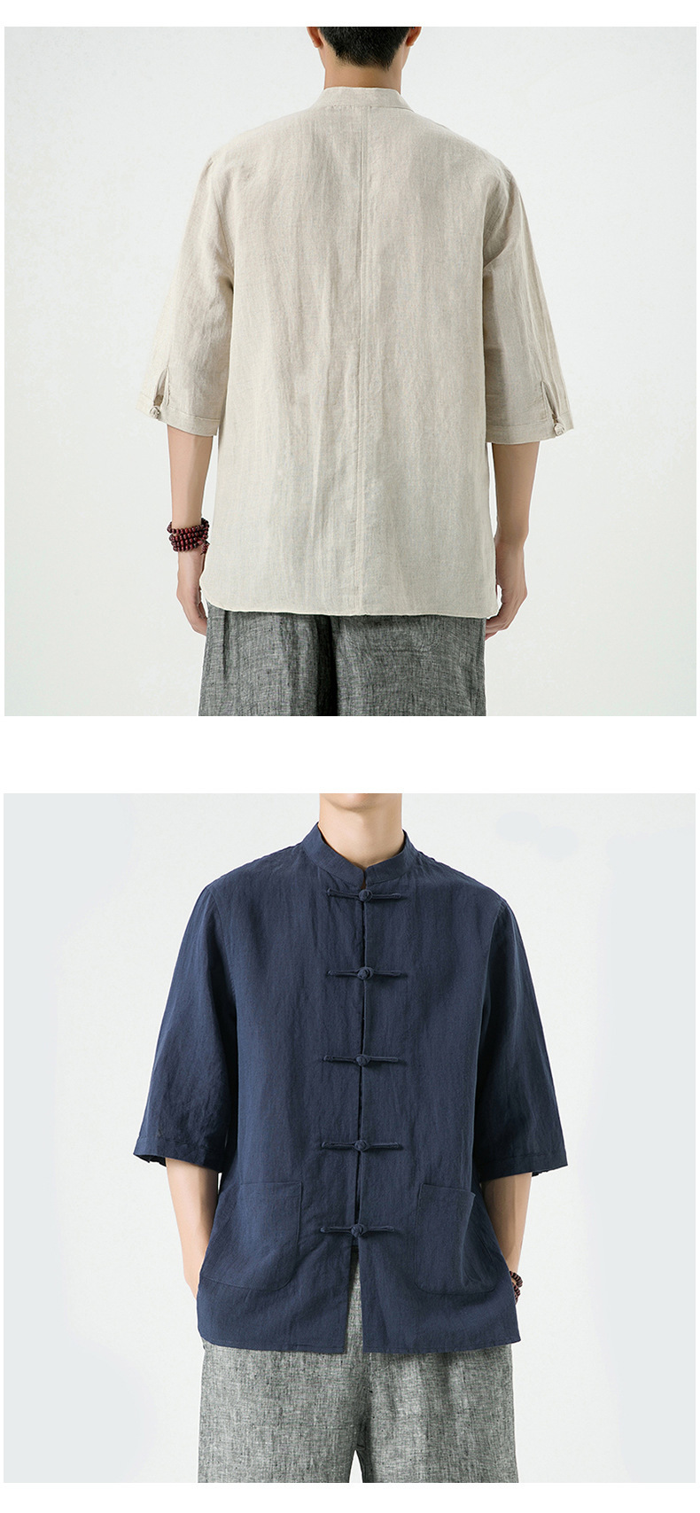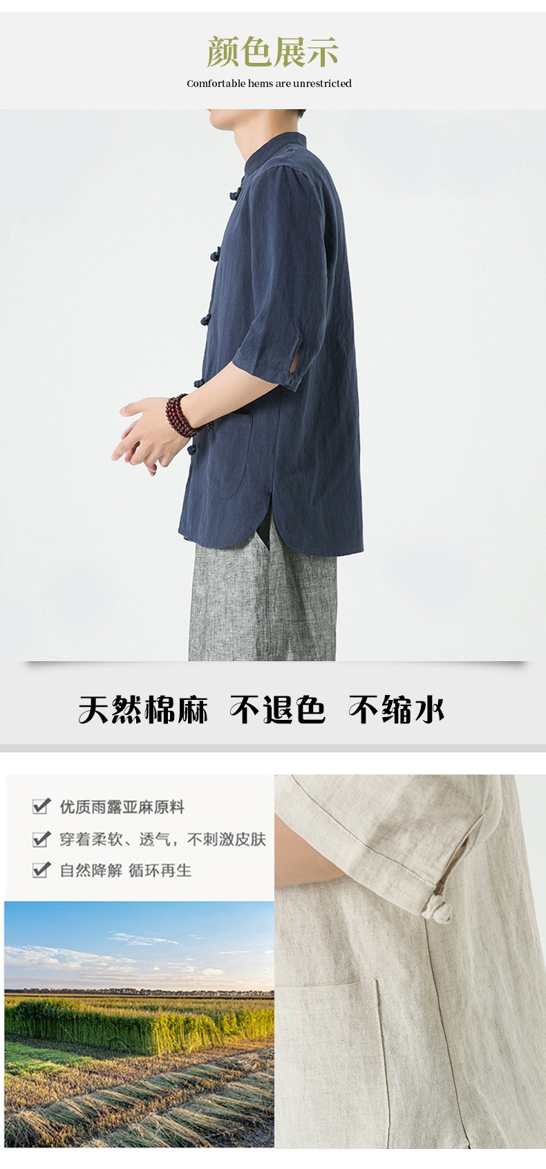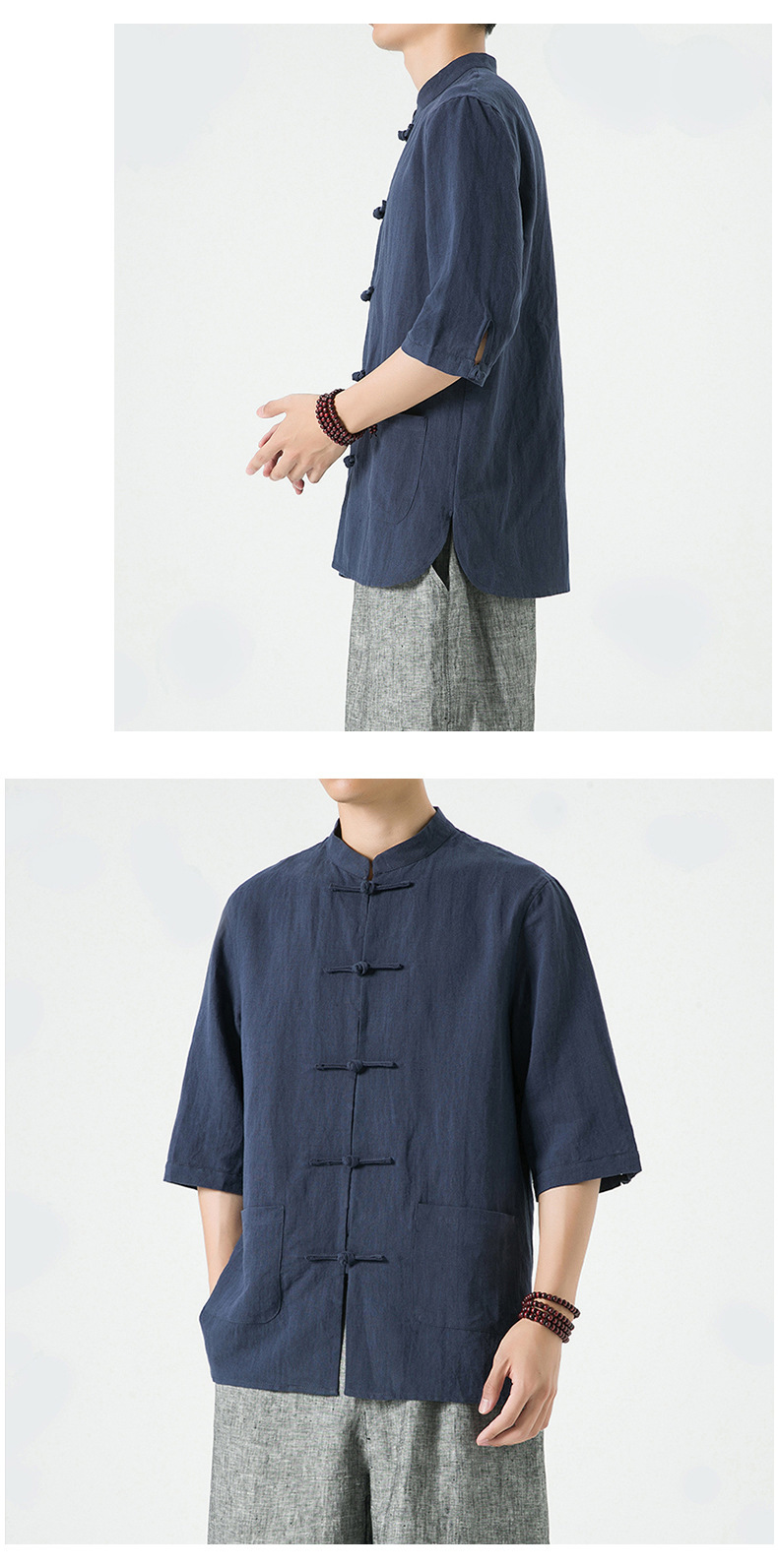 중국 스타일 남성 리넨 셔츠 중국 당나라 코튼 리넨 남자 세븐 슬리브 셔츠 여름 빈티지 칼라 탑