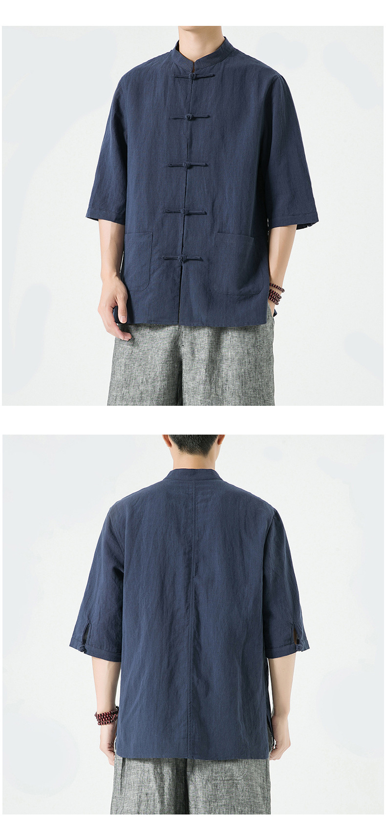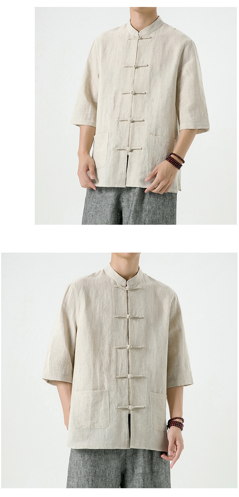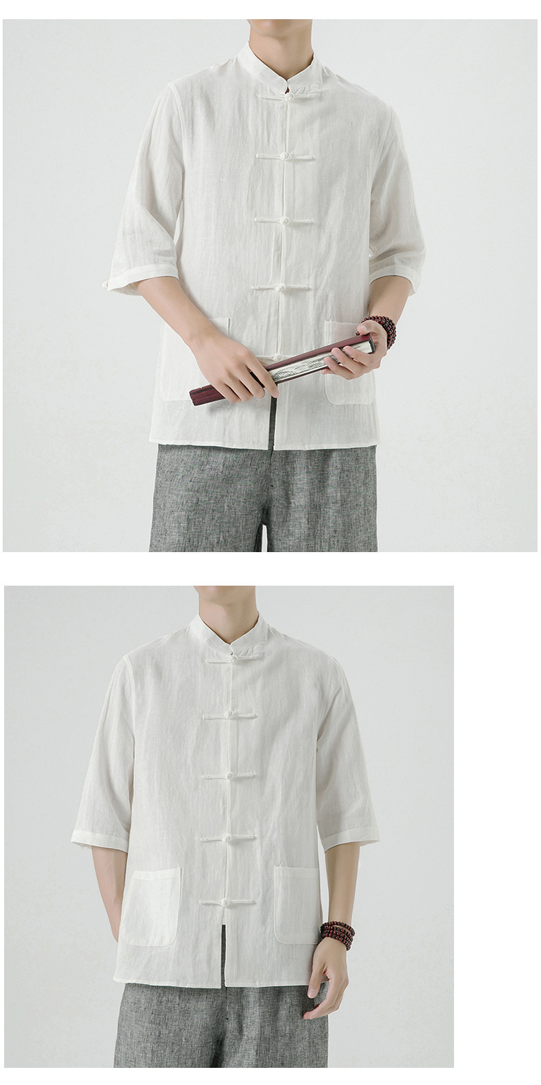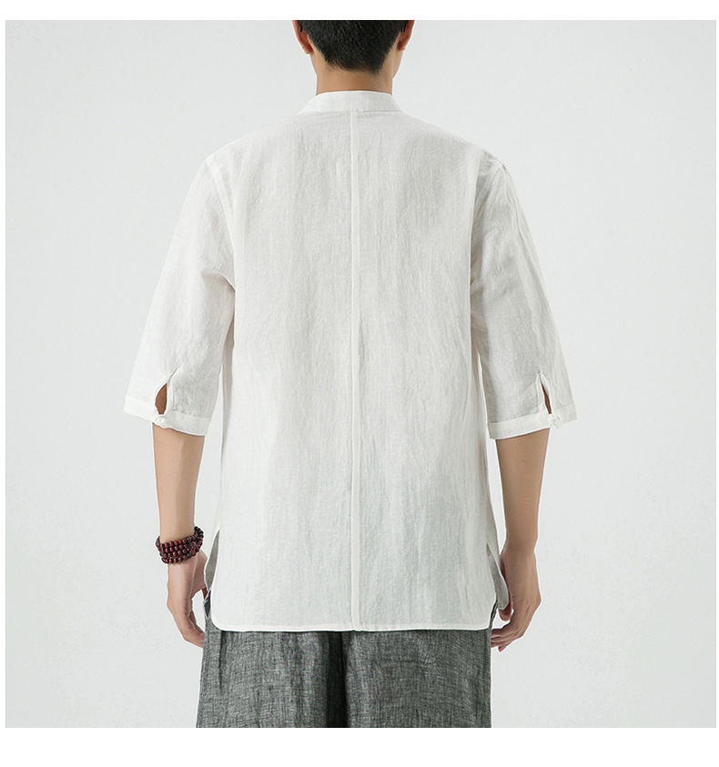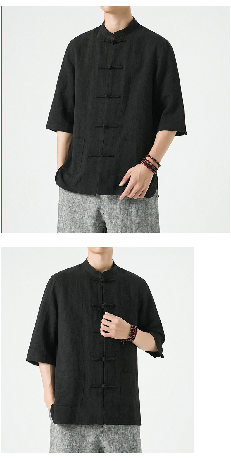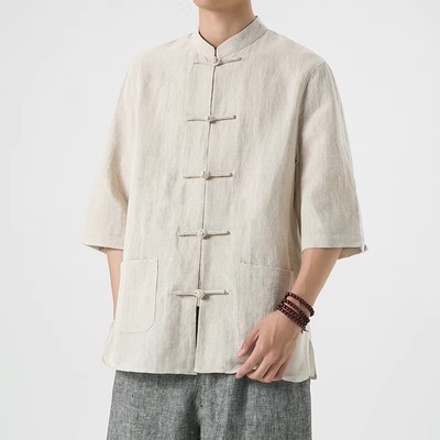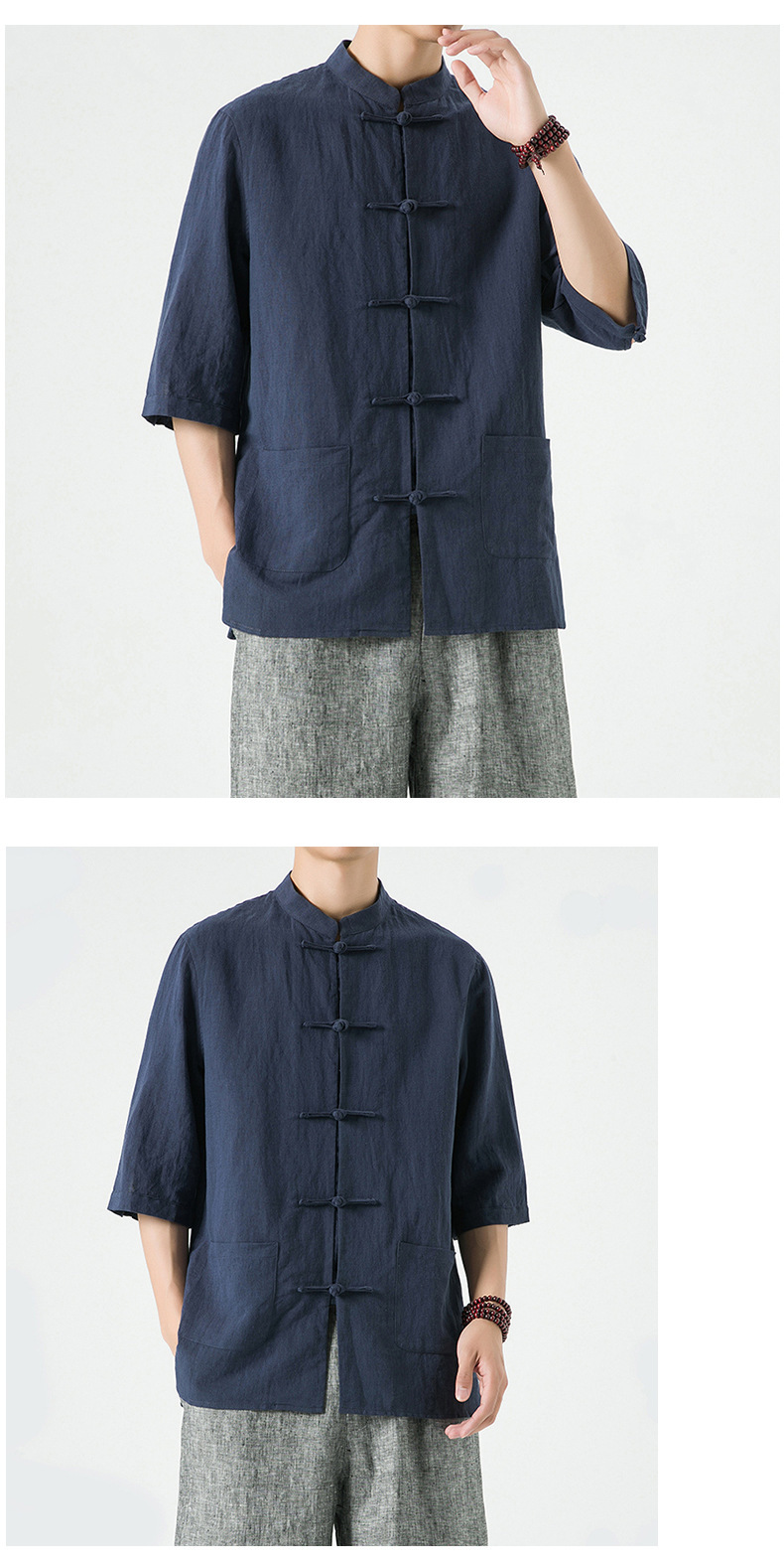 중국 스타일 남성 리넨 셔츠 중국 당나라 코튼 리넨 남자 세븐 슬리브 셔츠 여름 빈티지 칼라 탑
