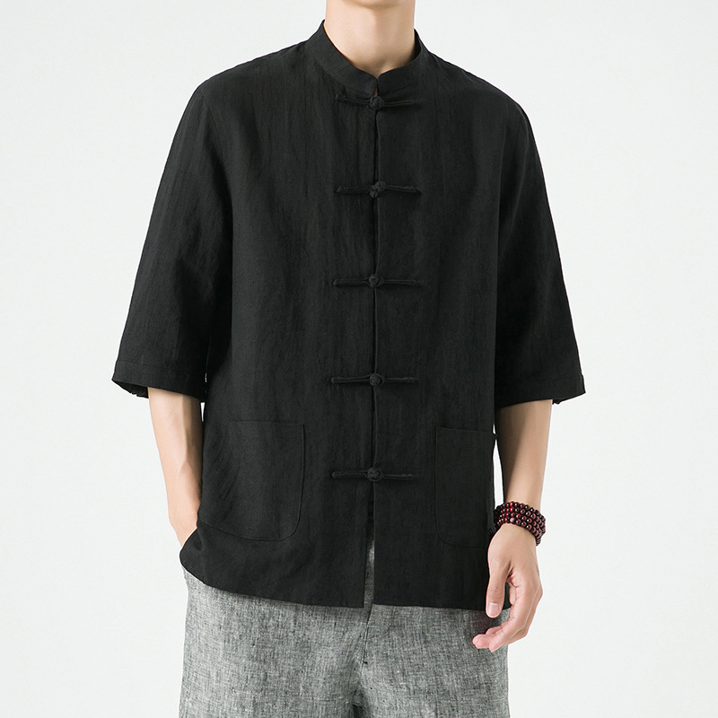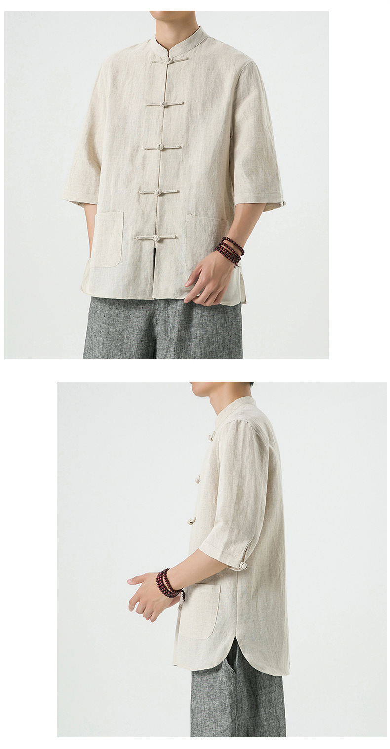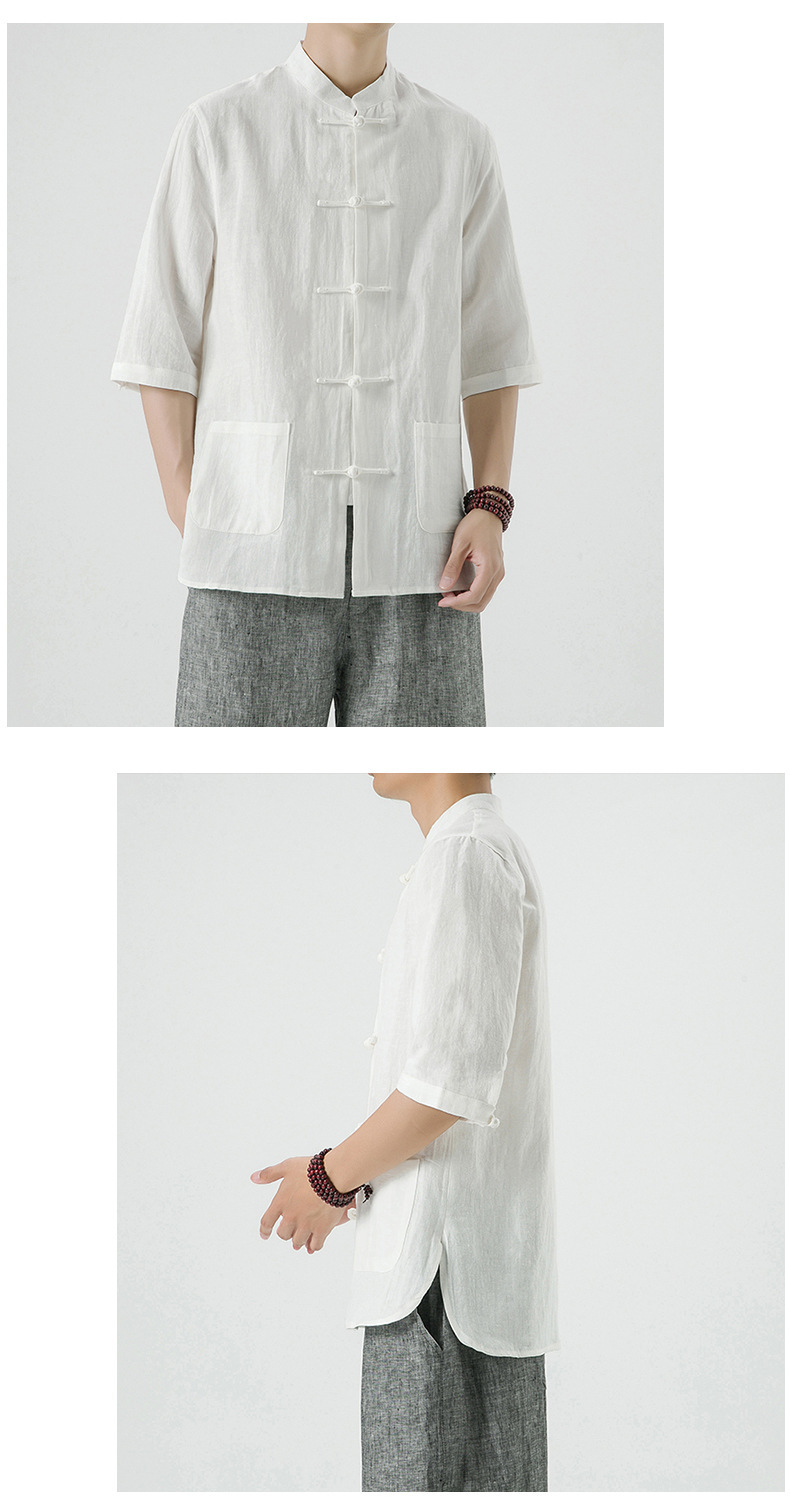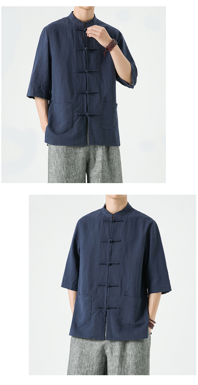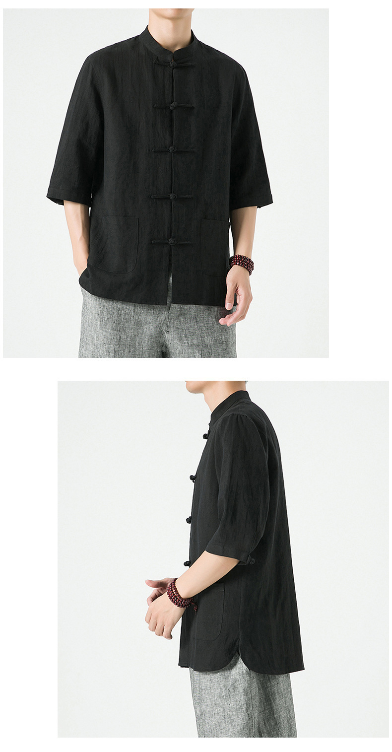 중국 스타일 남성 리넨 셔츠 중국 당나라 코튼 리넨 남자 세븐 슬리브 셔츠 여름 빈티지 칼라 탑