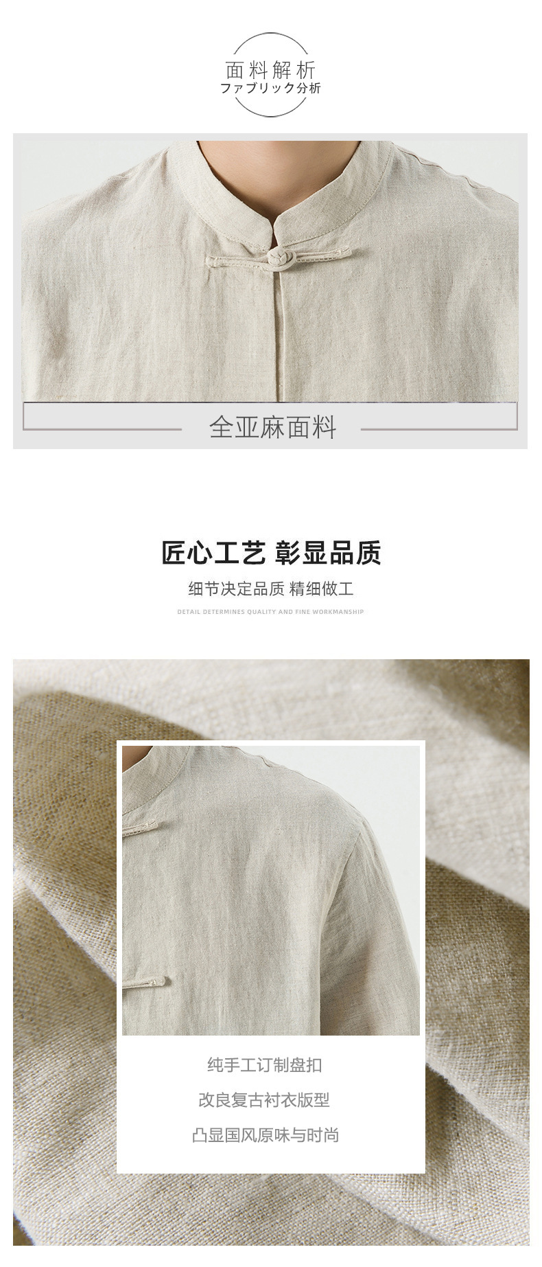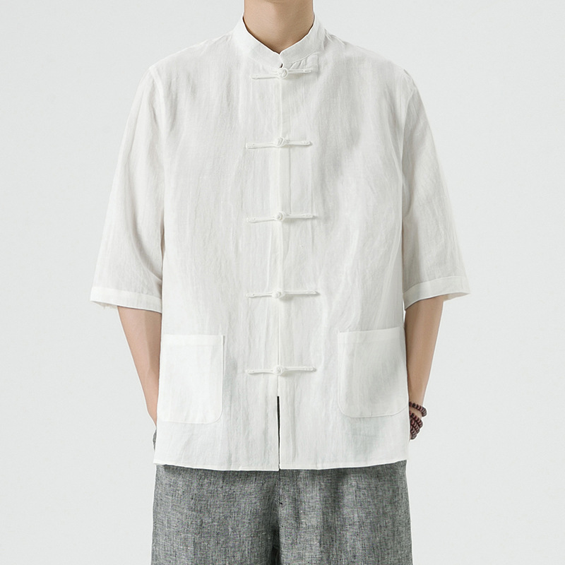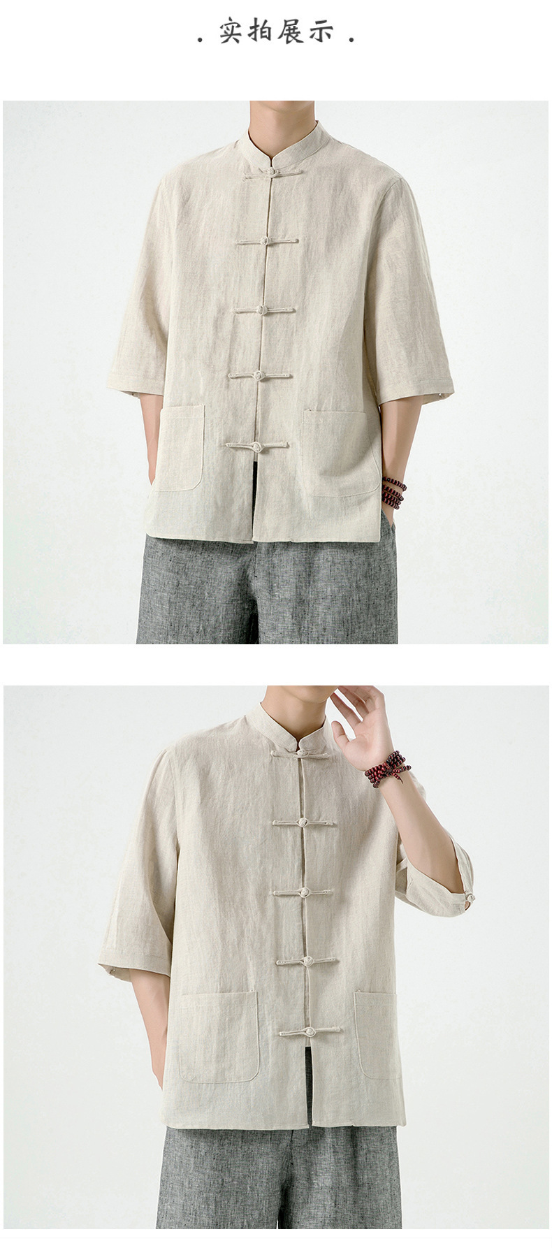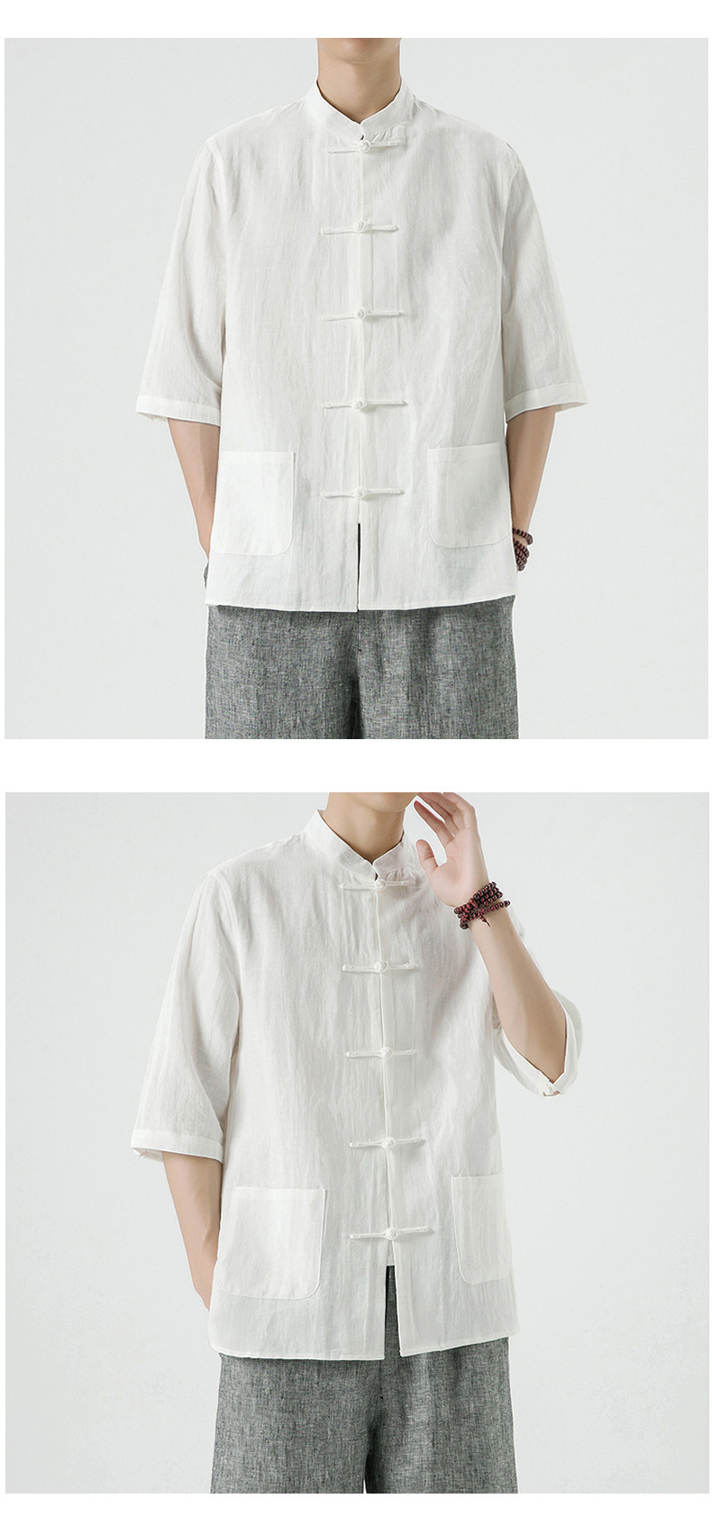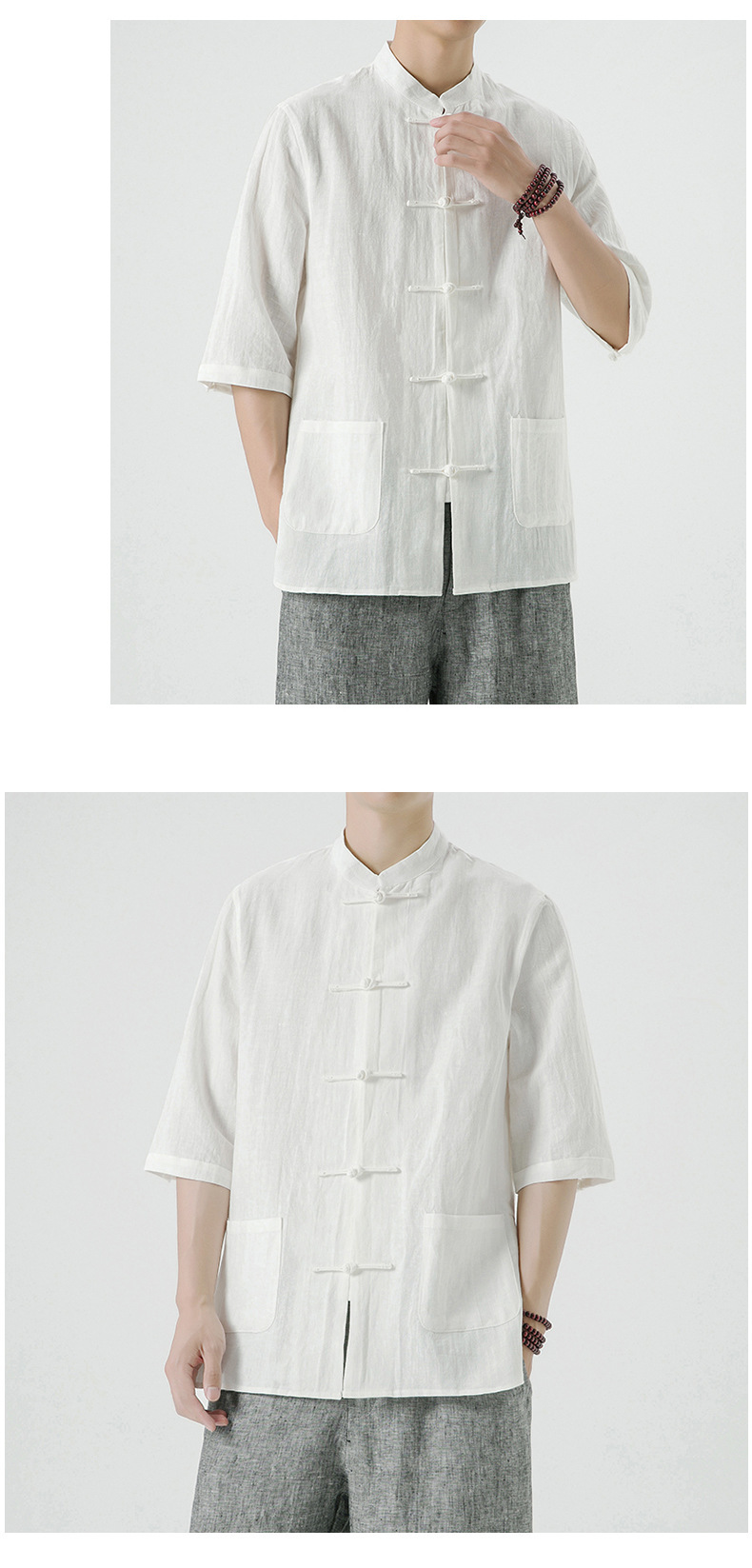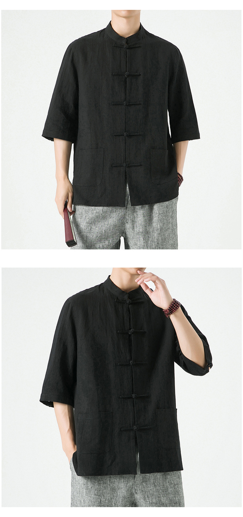 중국 스타일 남성 리넨 셔츠 중국 당나라 코튼 리넨 남자 세븐 슬리브 셔츠 여름 빈티지 칼라 탑