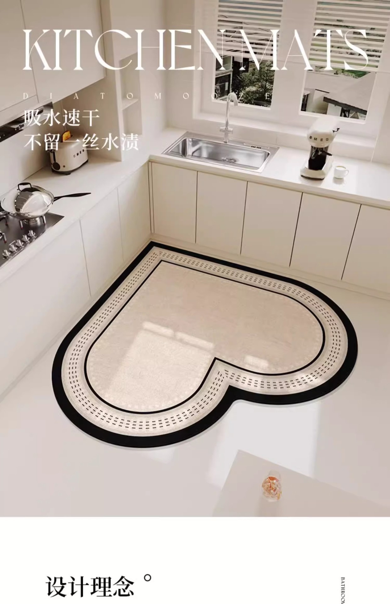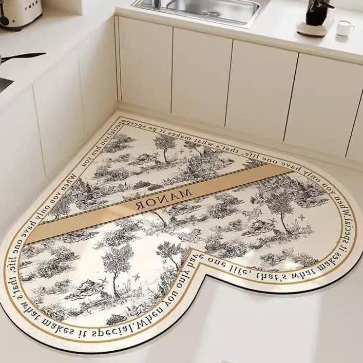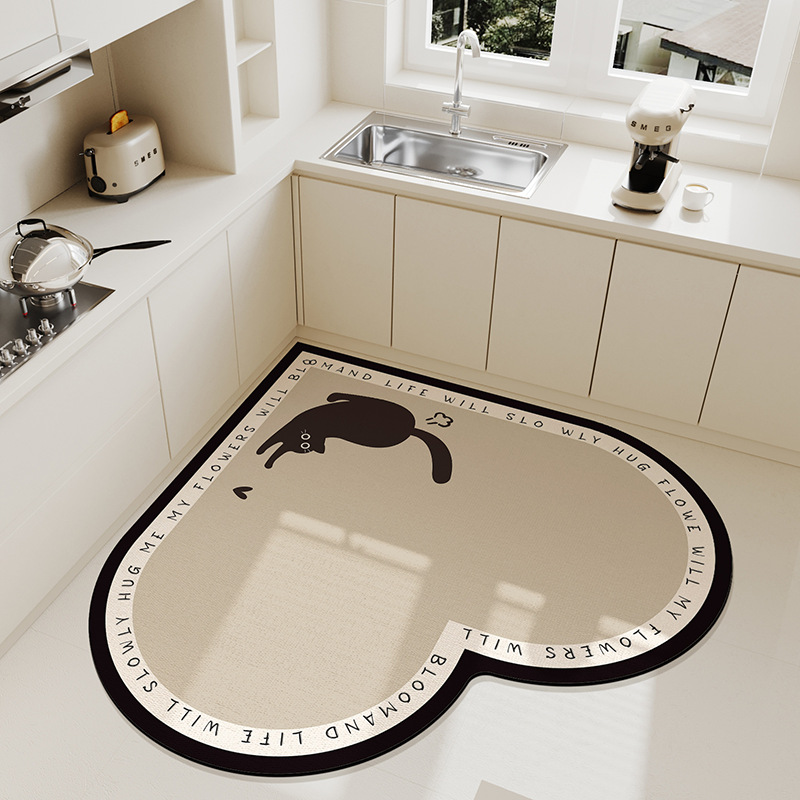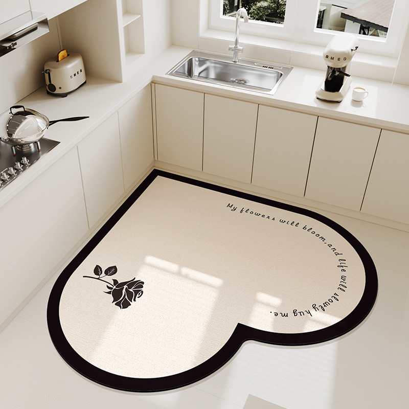 심장 모양의 주방 바닥 매트 가정용 물 흡수성 빠른 건조 발 매트 먼지 방지 쉬운 복용하기 쉬운 Diatom 진흙 바닥 매트 드롭 방지 미끄럼 방지 매트