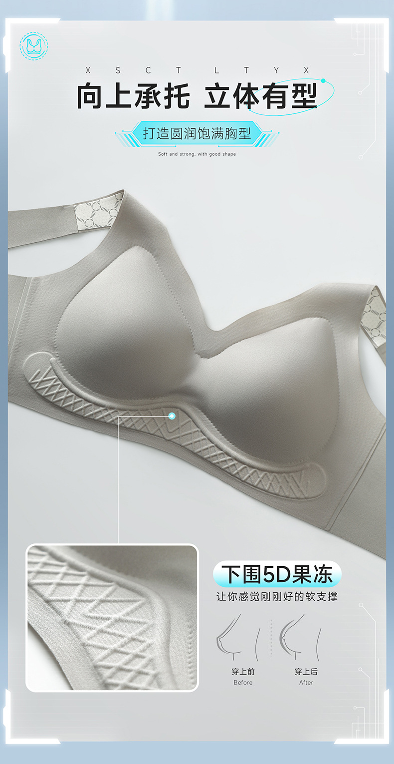Bioceramic Rimless Small Chest Push-up Sports Traceless Pull-up Bra 안티 처짐 Paramilis 여성을위한 조정 가능한 속옷스토어 가기