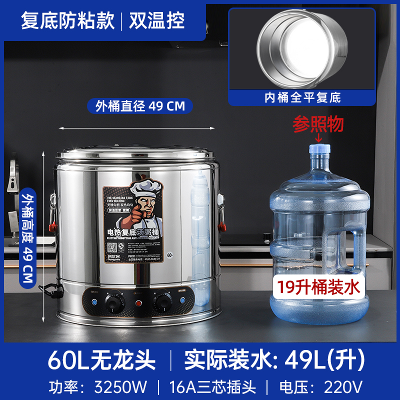 • ❤️[죽/소금] 60L 수도꼭지 없음 [다중 바닥 접착 방지 모델/이중 온도 조절/업그레이드된 전체 304 스틸 바닥]