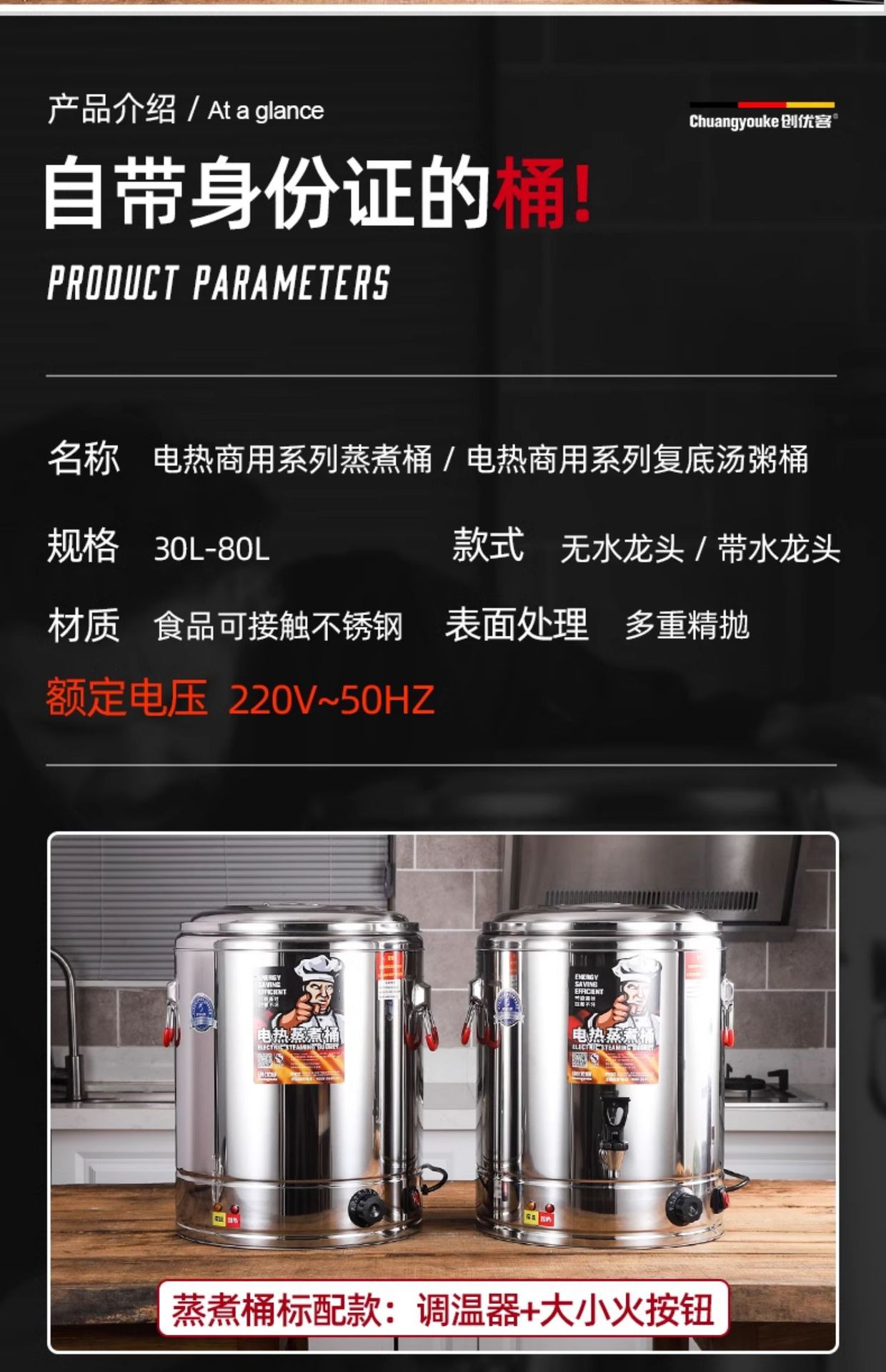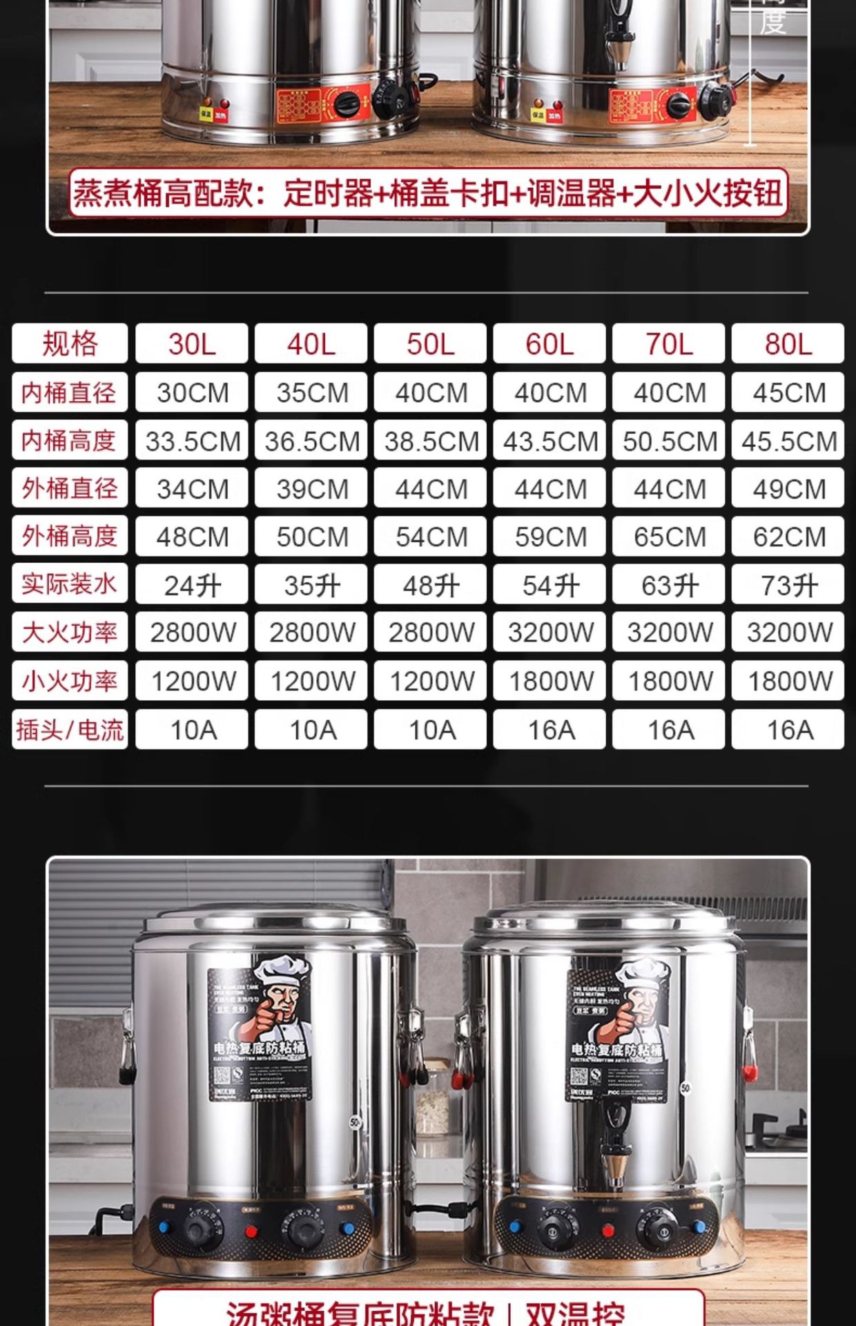 • ❤️[죽/소금] 80L 수도꼭지 포함 [다중 바닥 접착 방지 모델/이중 온도 조절/업그레이드된 전체 304 스틸 바닥]