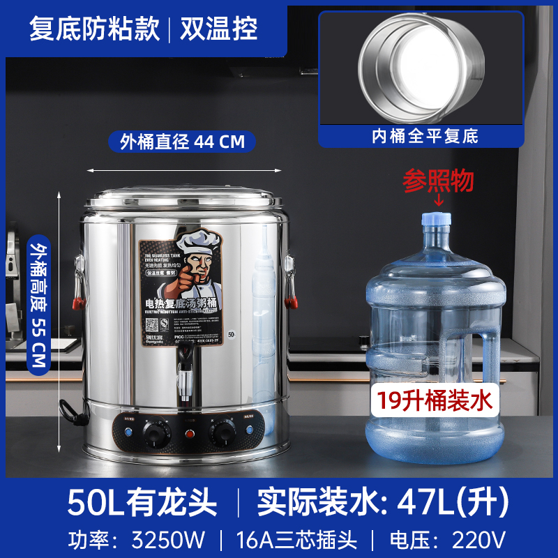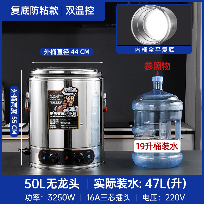 • ❤️[죽/소금] 50L 수도꼭지 없음 [다중 바닥 접착 방지 모델/이중 온도 조절/업그레이드된 전체 304 스틸 바닥]