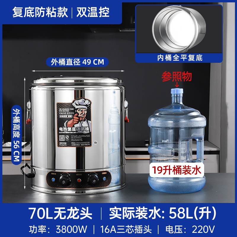 • ❤️[죽/소금] 70L 수도꼭지 없음 [다중 바닥 접착 방지 모델/이중 온도 조절/업그레이드된 전체 304 스틸 바닥]