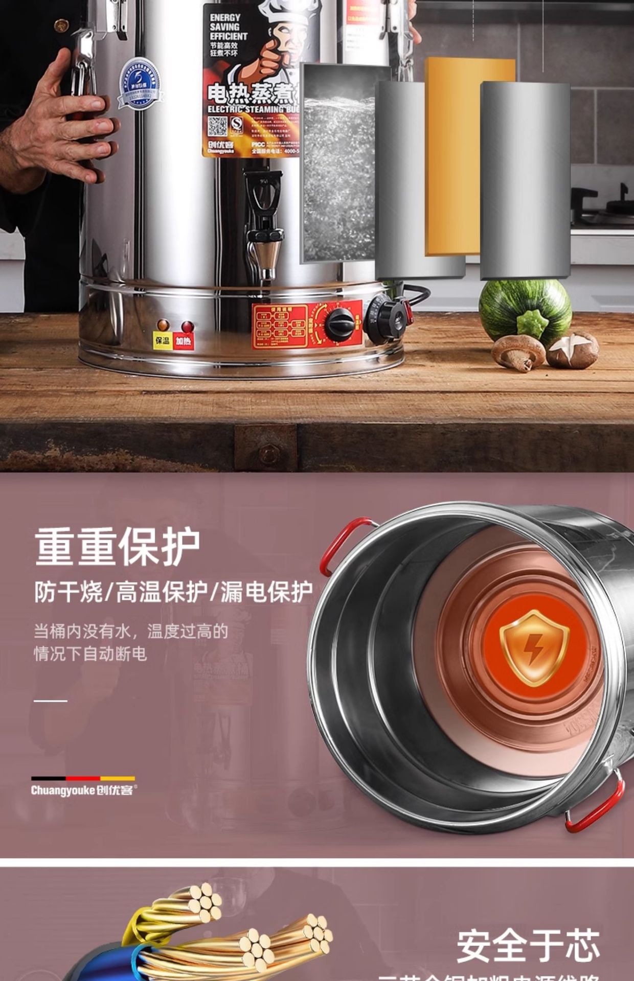 전기 수프 배럴 스테인레스 스틸 전기 난방 요리 배럴 수프 냄비 대용량 할로겐 배럴 냄비 상업용 수프 배럴스토어 가기