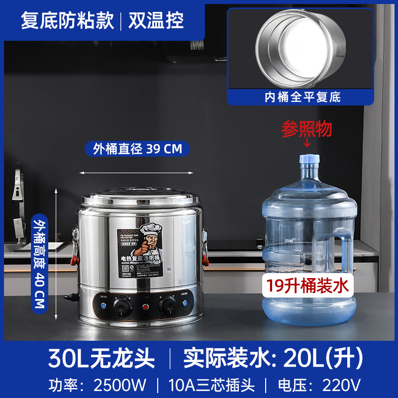 • ❤️[죽/소금] 30L 수도꼭지 없음 [다중 바닥 접착 방지 모델/이중 온도 조절/업그레이드된 전체 304 스틸 바닥]