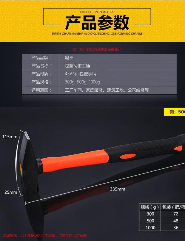 • 플라스틱 코팅 손잡이 피터 해머 500g