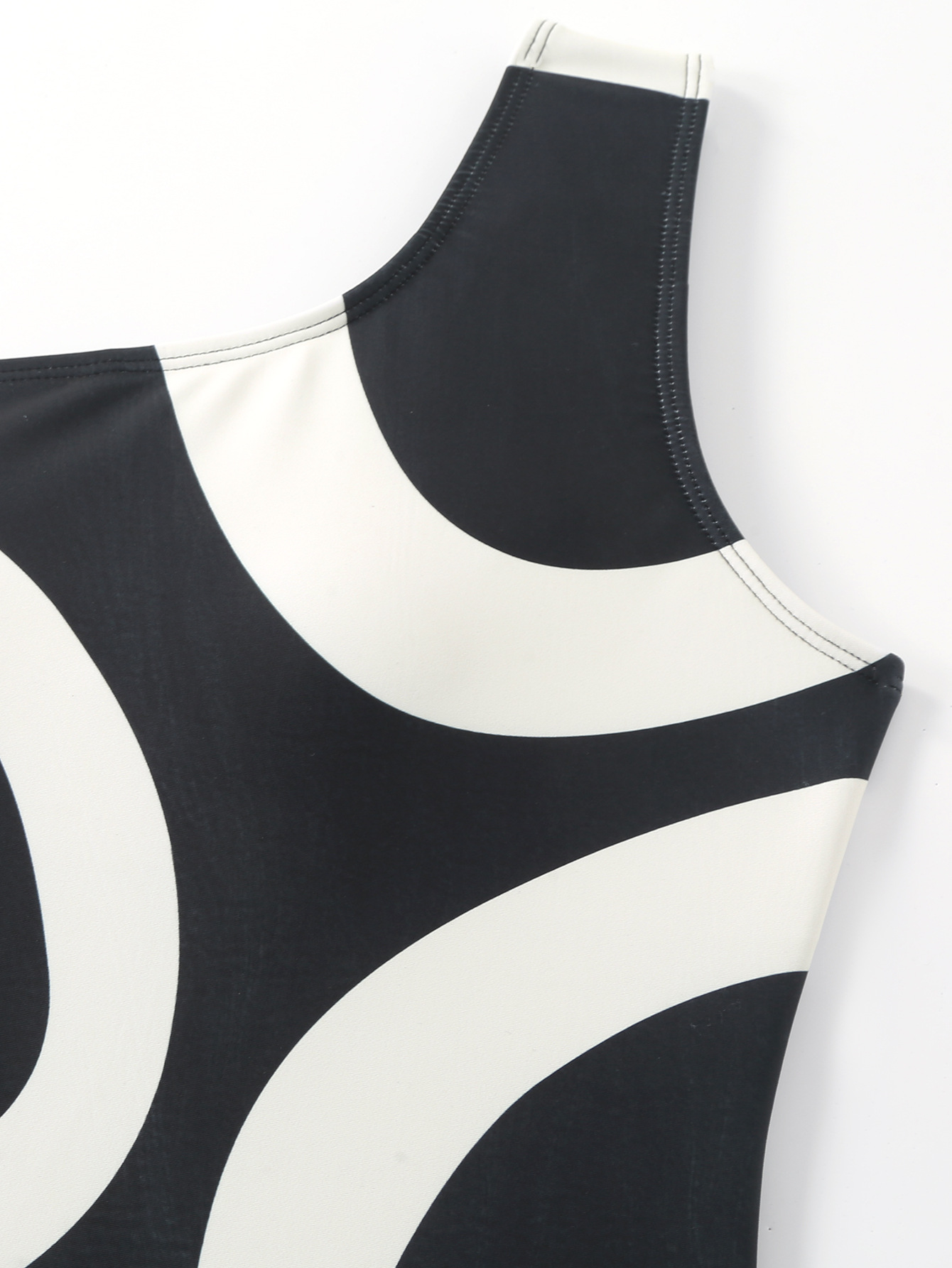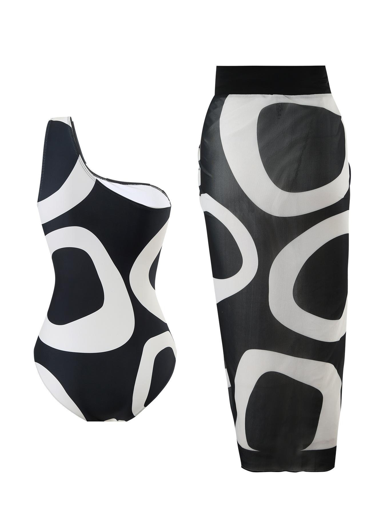 2024 새로운 유럽과 미국의 국경 원피스 어깨 인쇄 높은 허리 흑백 컬러 블록 플러스 랩 스커트 휴일 수영복 2 피스 세트스토어 가기