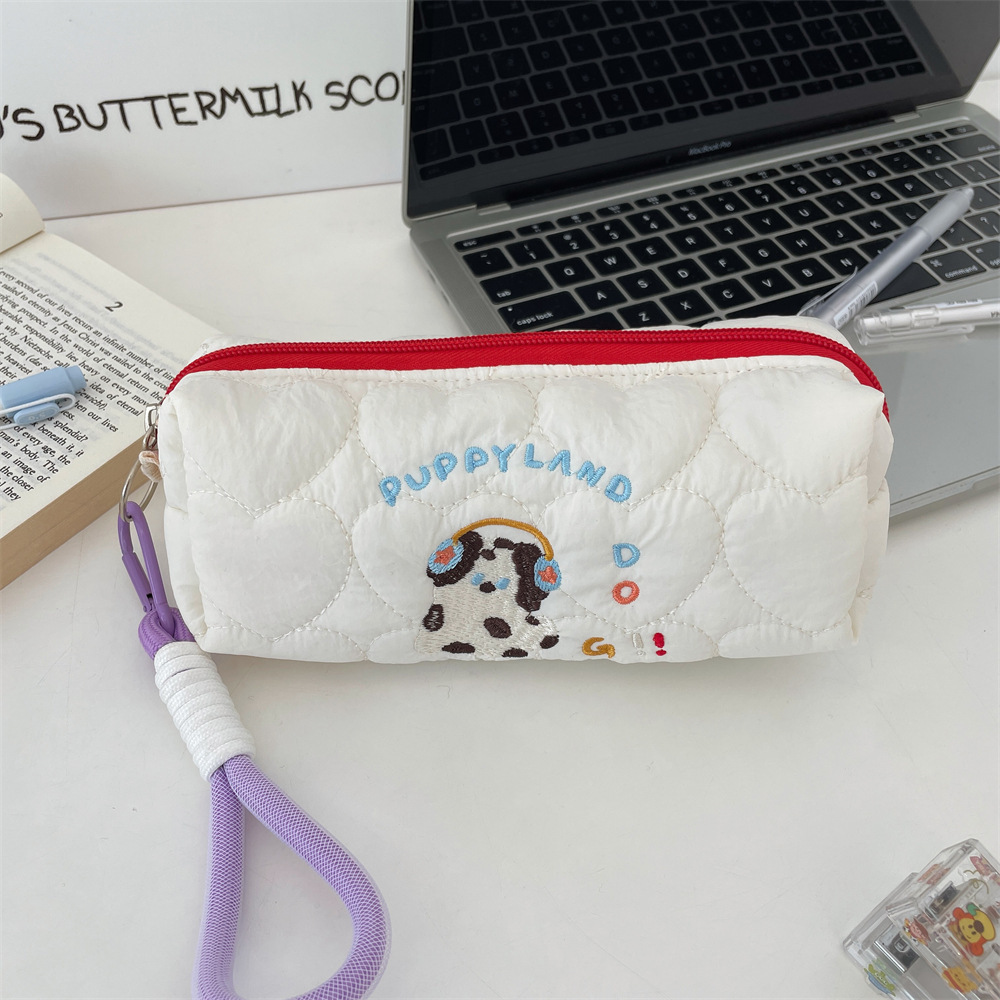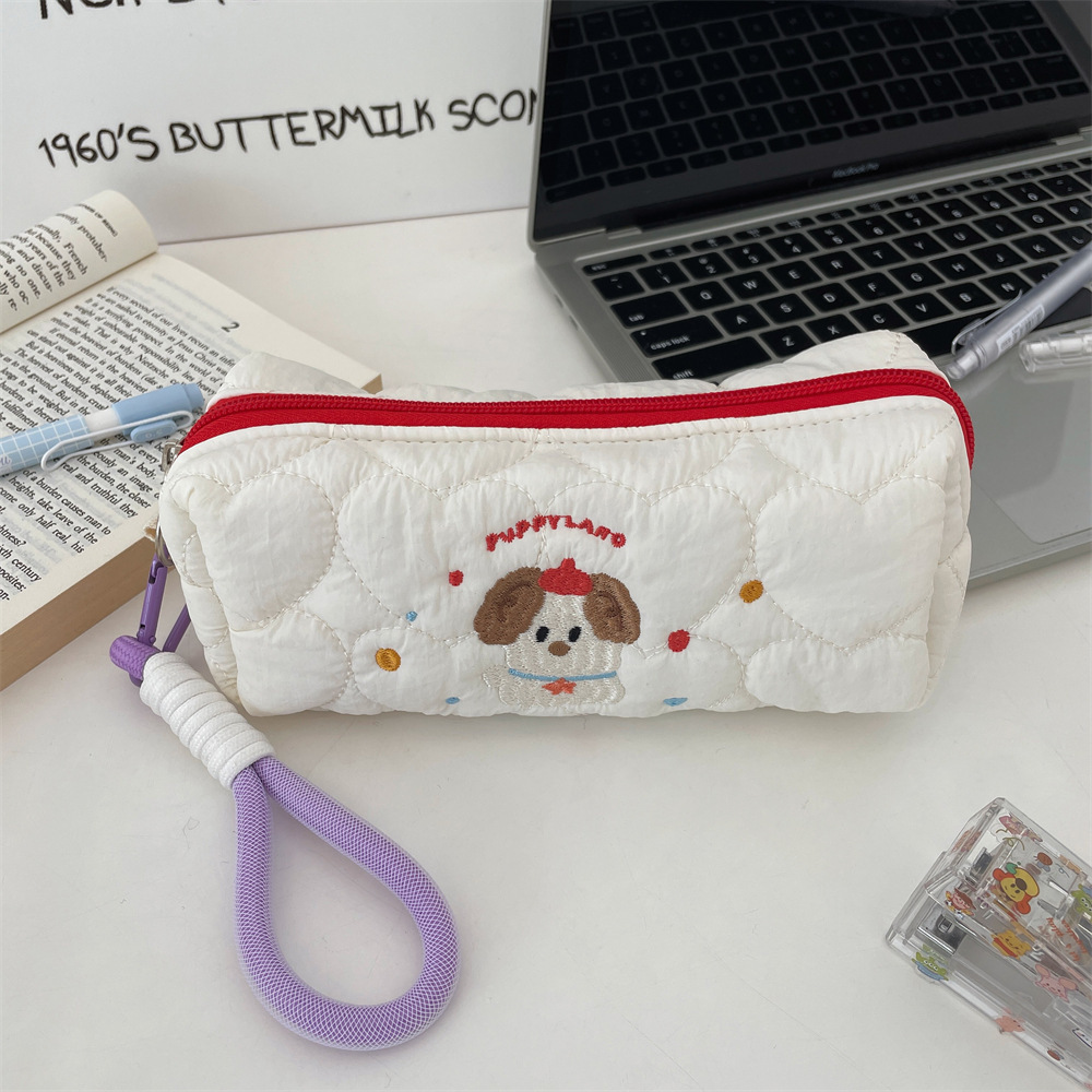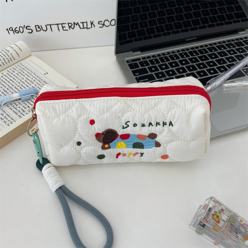 49211 새로운 대용량 학생 연필 케이스 휴대용 강아지 자수 화장품 가방 만화 캐주얼 문구 보관 가방