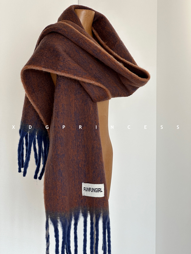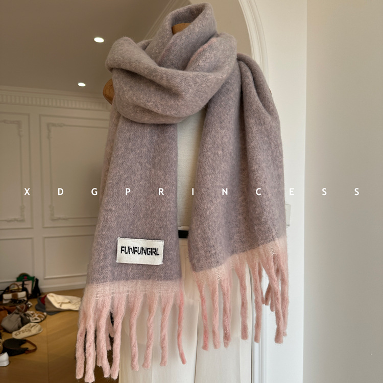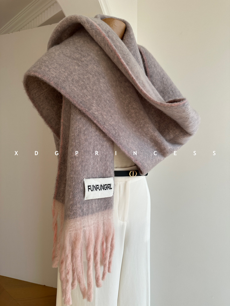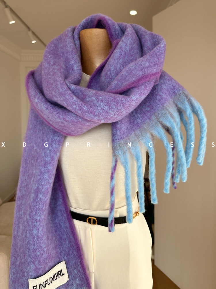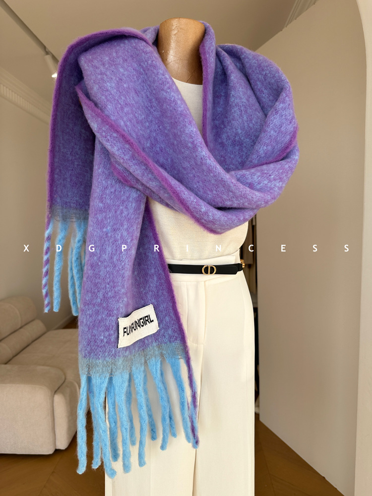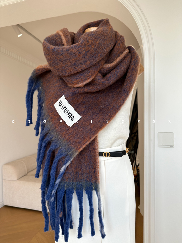 유럽과 미국에 수출 ~ 올해 인기 노크! 여성용 Mauhair 그라디언트 스카프 목도리 따뜻한 두꺼운 술 스카프스토어 가기