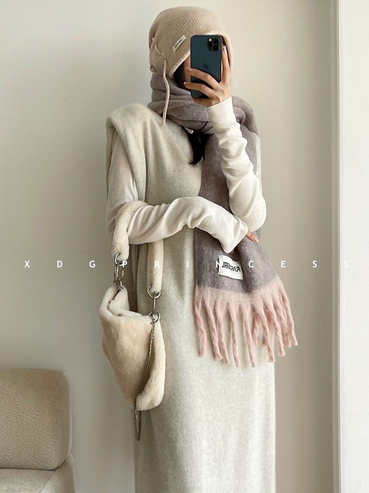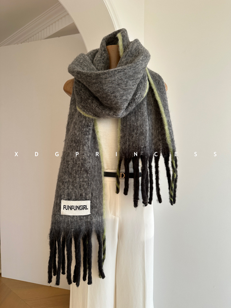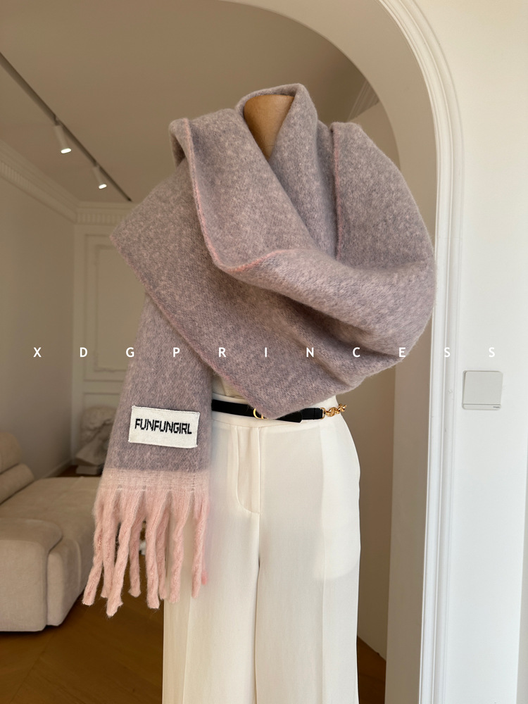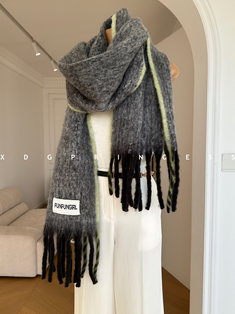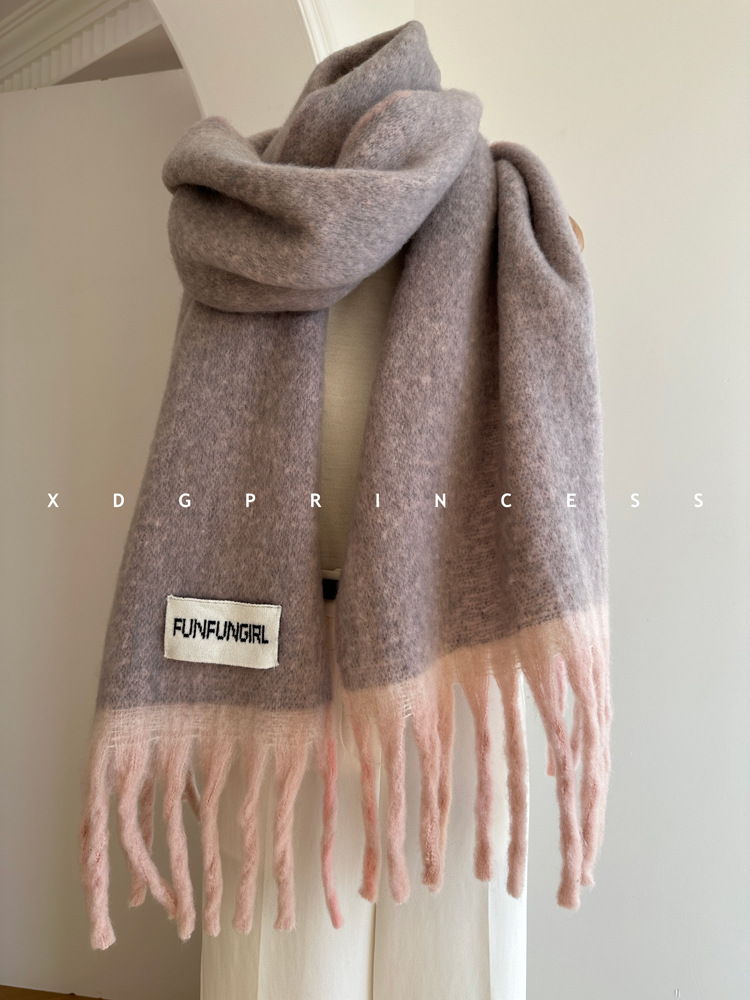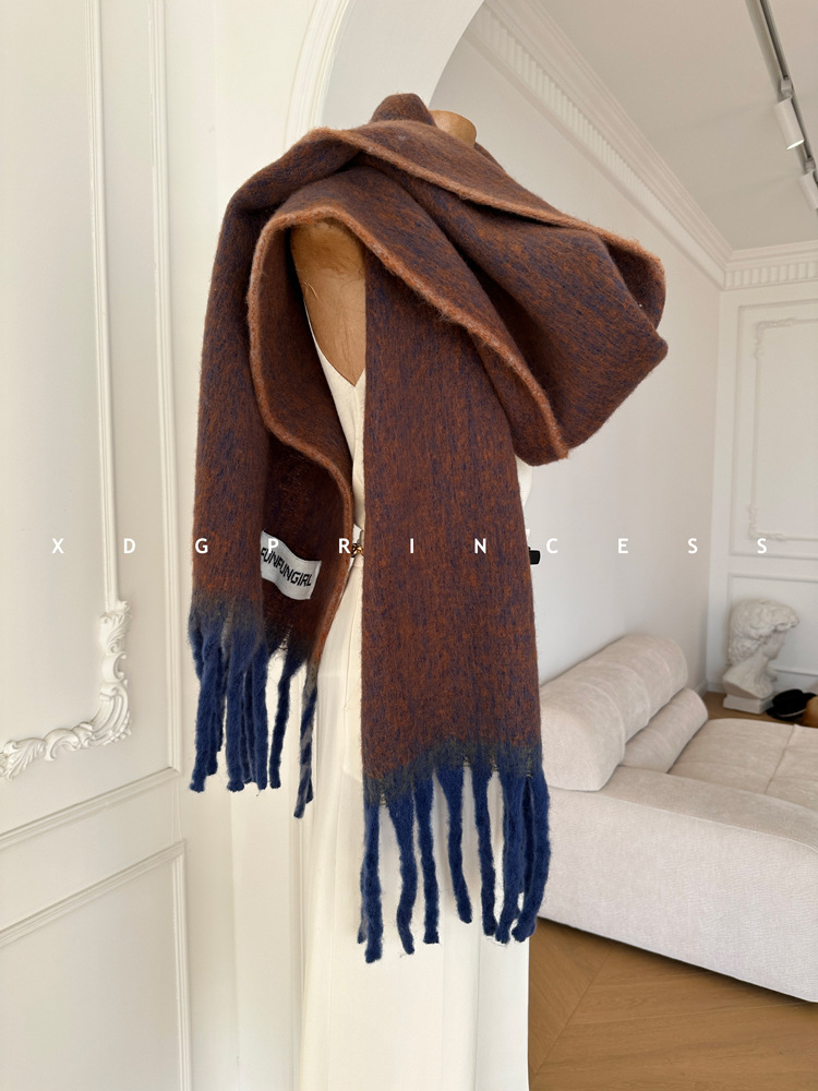 유럽과 미국에 수출 ~ 올해 인기 노크! 여성용 Mauhair 그라디언트 스카프 목도리 따뜻한 두꺼운 술 스카프스토어 가기