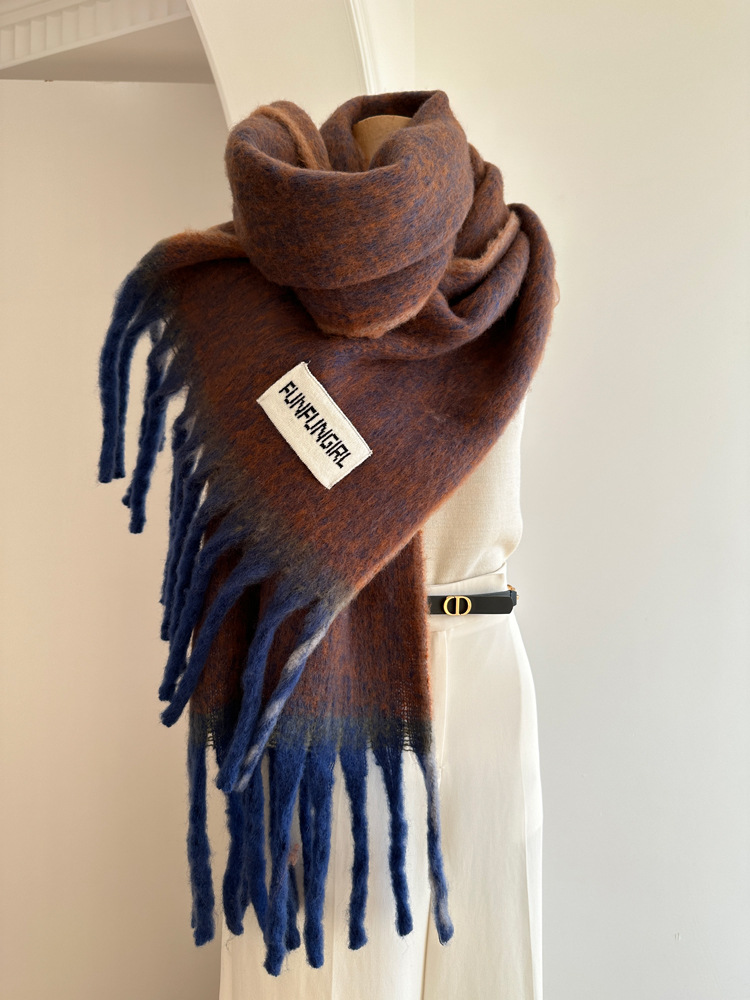 유럽과 미국에 수출 ~ 올해 인기 노크! 여성용 Mauhair 그라디언트 스카프 목도리 따뜻한 두꺼운 술 스카프