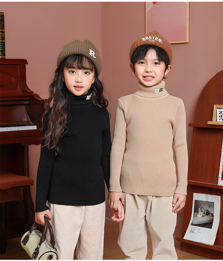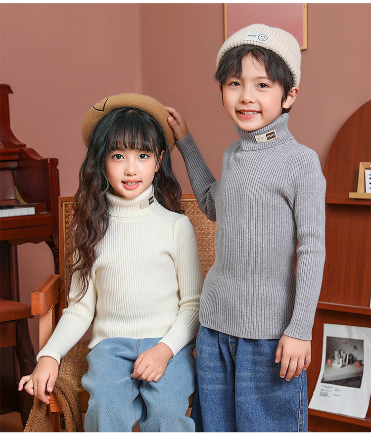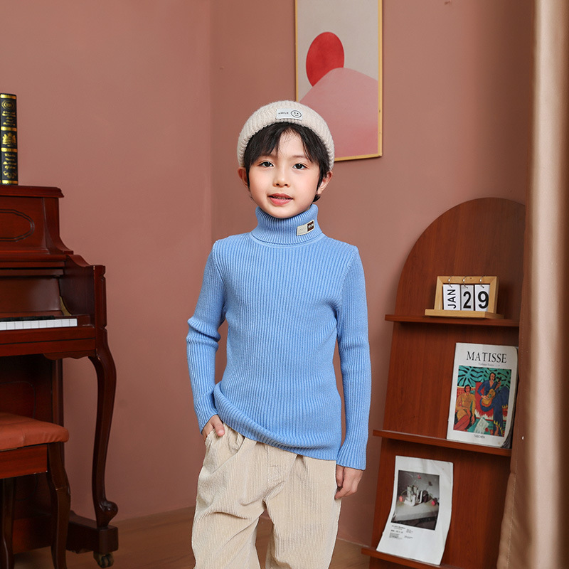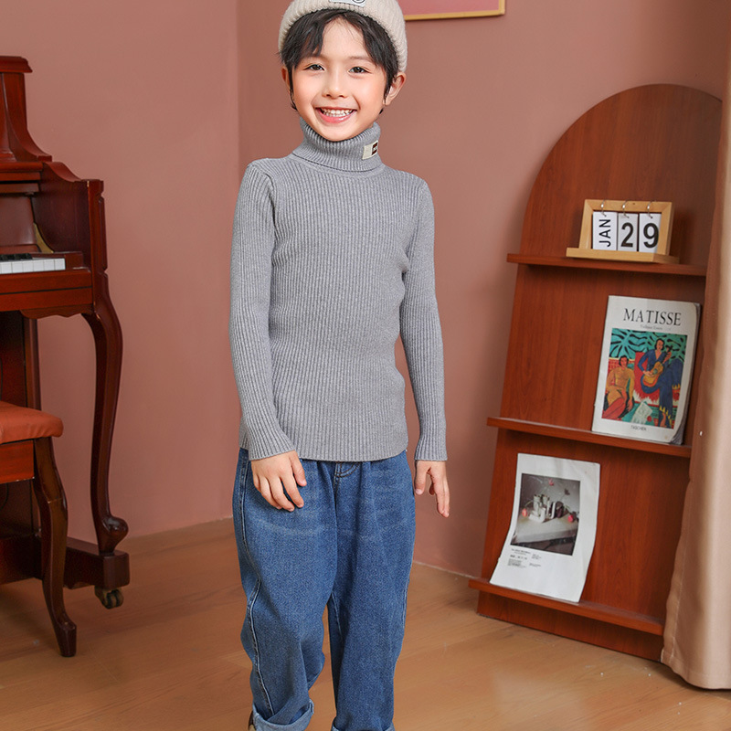 남아용 스웨터, 2025 가을 겨울 신상 아동용 베이스 레이어 스웨터, 여아용 터틀넥 스타일리쉬 스웨터, 대외 무역 도매