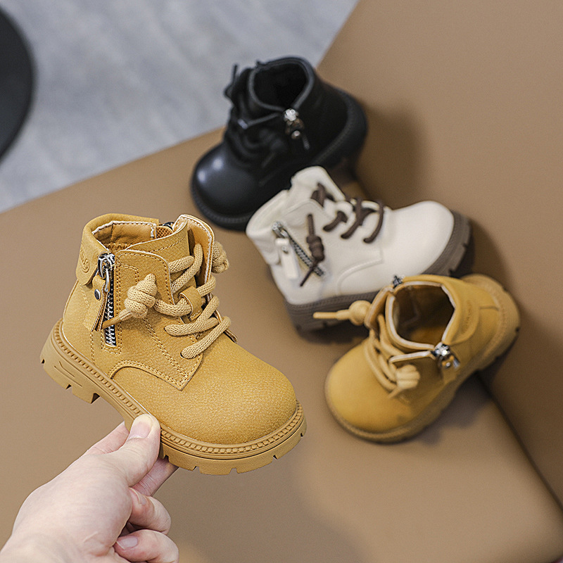 가을과 겨울 알파벳 어린이 마틴 부츠 레트로 클래식 소녀 부츠 어린이 편안한 부드러운 하단 지퍼 가죽 부츠